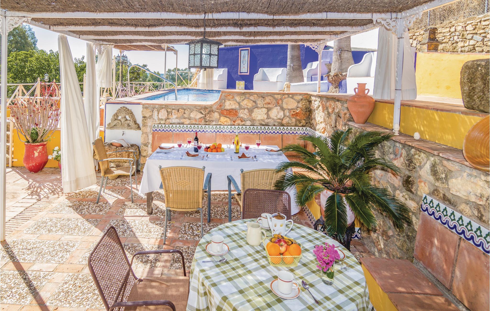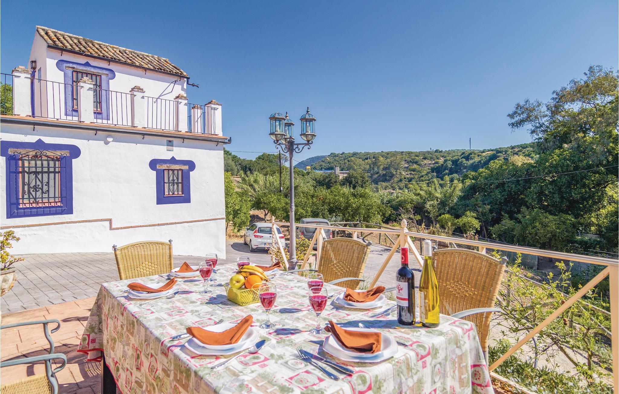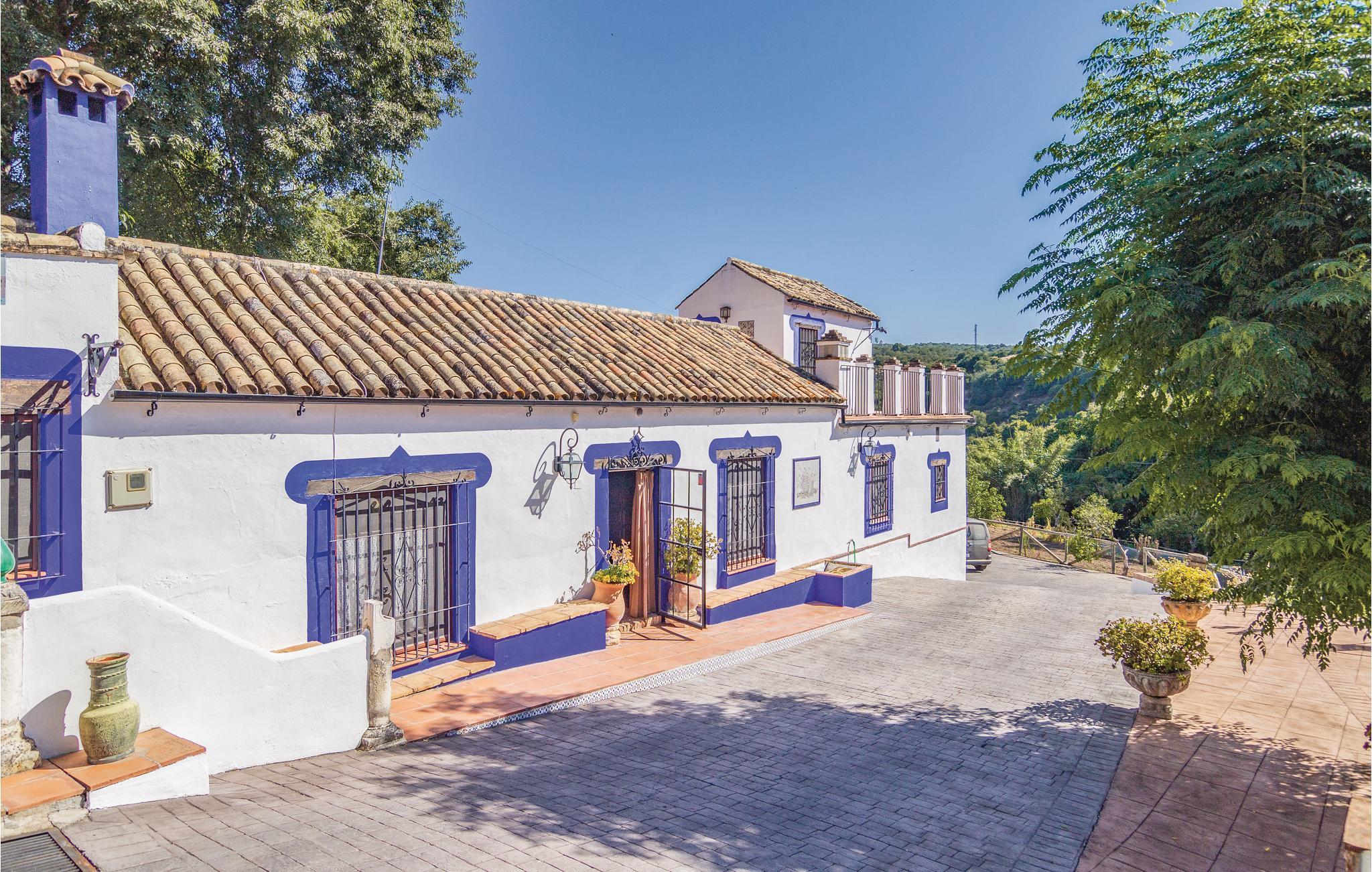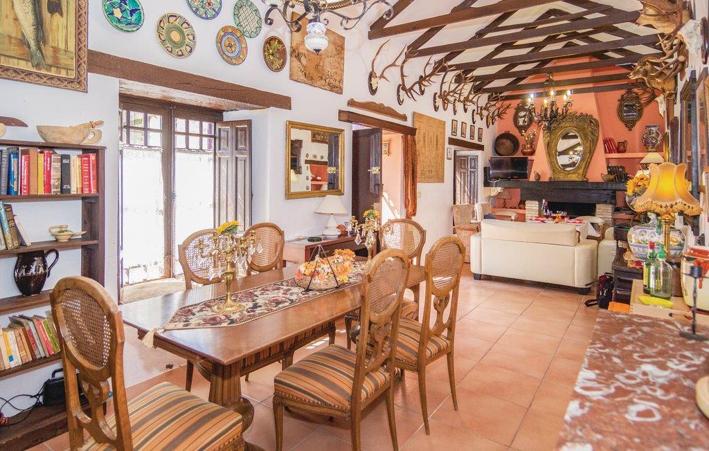 Fra dette store feriehus’ store terrasse kan I nyde udsigten til det fantastiske landskab. Området ligger kun to kilometer fra naturparken Hornachuelos med dets rige fugleliv. Dem der har lyst til at fiske finder gode pladser i den nærtliggende flod Bembezar. Lige ved siden af poolen er der en overdækket terrasse med sivtag, hvor I kan nyde de lune dage i de hyggelige havemøbler og tilberede jeres måltider ved den mobile grill. Straks når I træder ind i dette hus, føler I den specielle og hyggelige atmosfære. Her er en lys stue med kamin, et dejligt bibliotek som begge er indrettet med nænsomt restaurerede møbler. Her er flere muligheder for fritidsaktiviteter I kan kaste jer ud i: vandre, sejle kano, og tage på ture gennem naturparken i jeep.