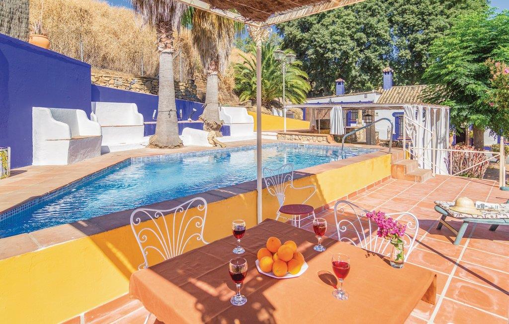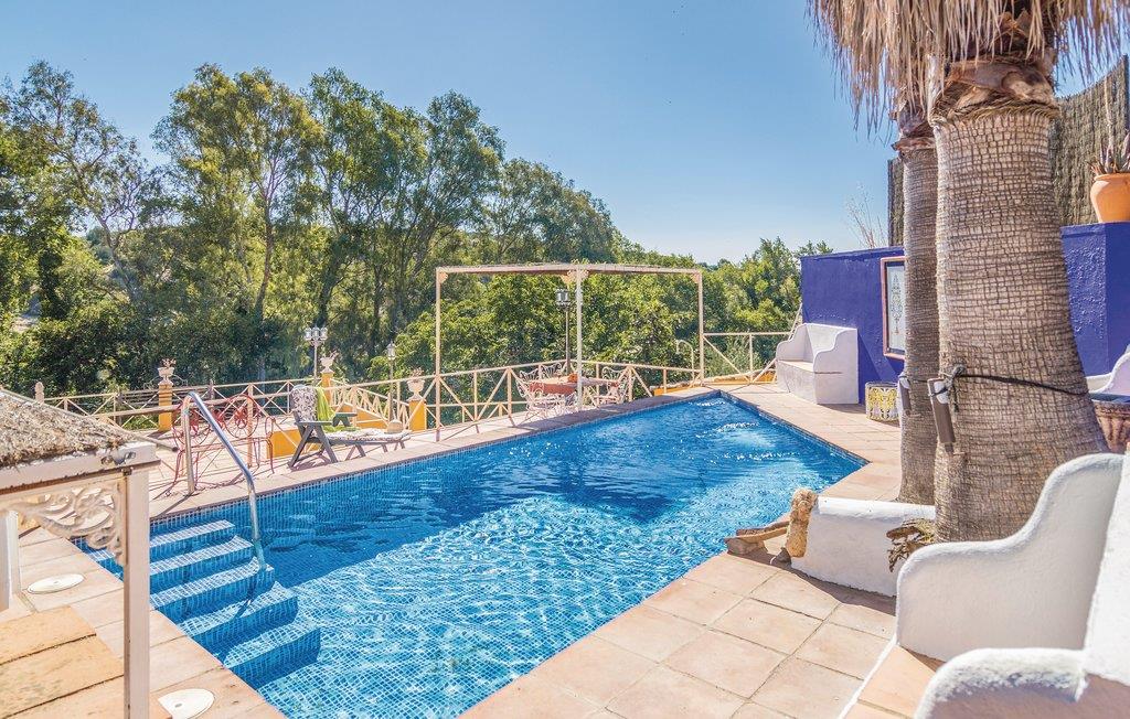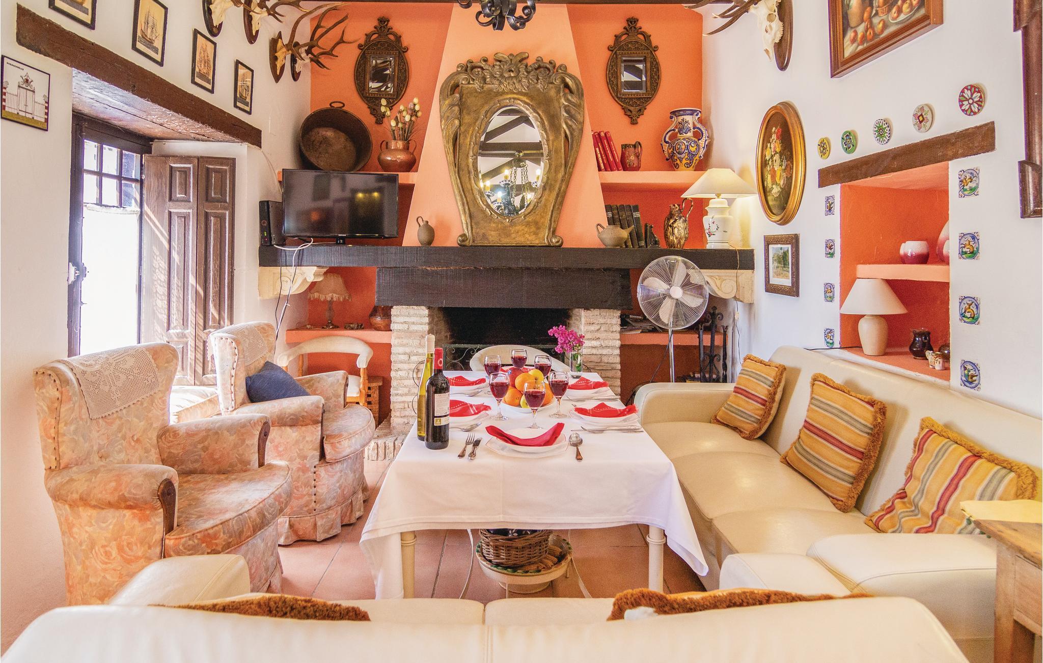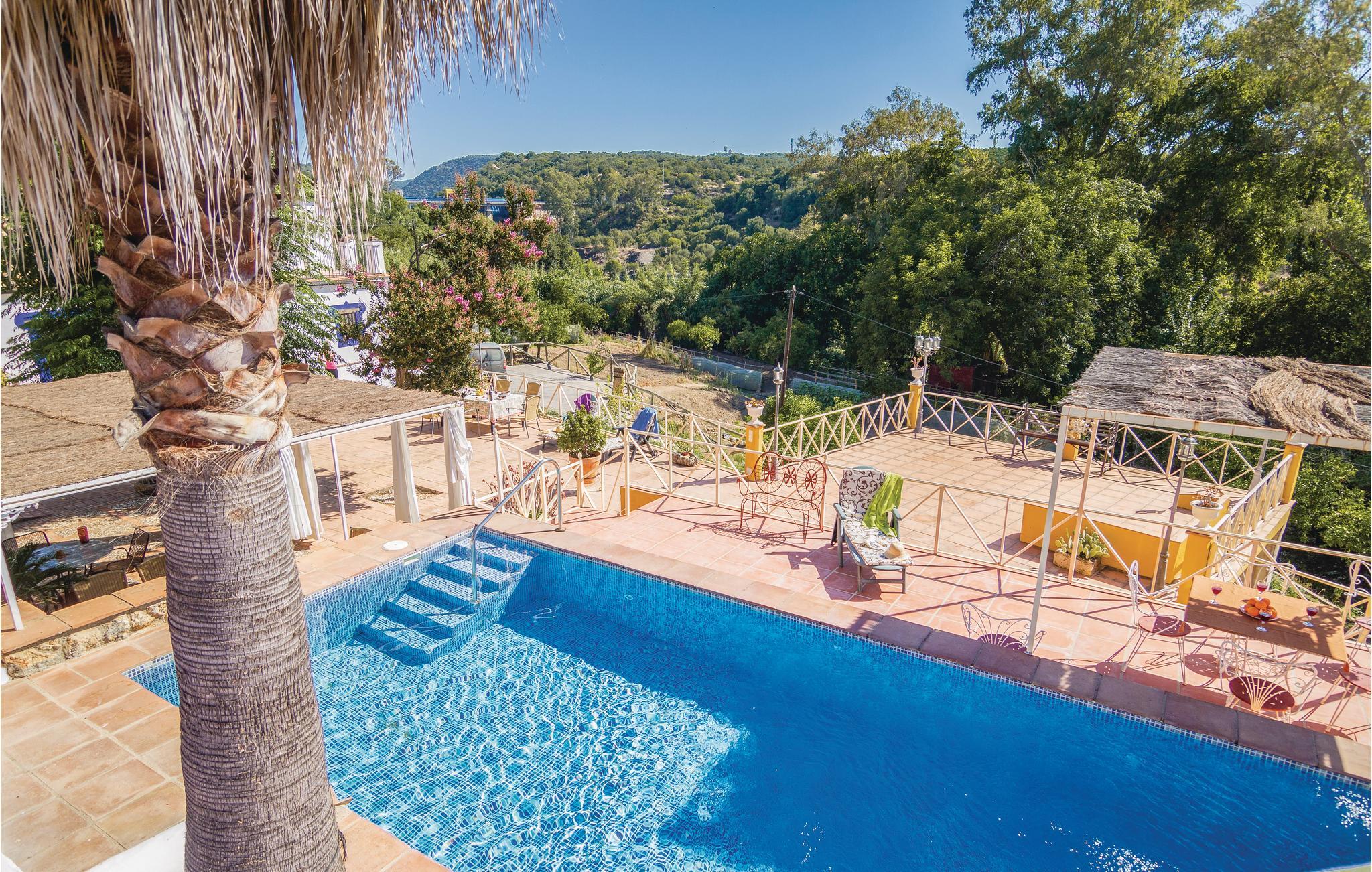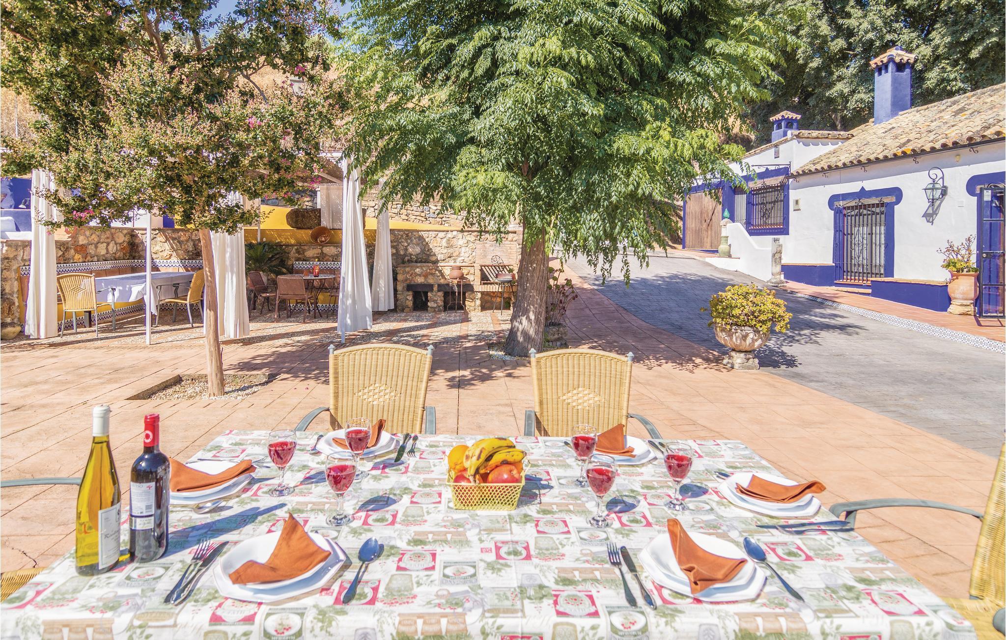 Fra dette store feriehus’ store terrasse kan I nyde udsigten til det fantastiske landskab. Området ligger kun to kilometer fra naturparken Hornachuelos med dets rige fugleliv. Dem der har lyst til at fiske finder gode pladser i den nærtliggende flod Bembezar. Lige ved siden af poolen er der en overdækket terrasse med sivtag, hvor I kan nyde de lune dage i de hyggelige havemøbler og tilberede jeres måltider ved den mobile grill. Straks når I træder ind i dette hus, føler I den specielle og hyggelige atmosfære. Her er en lys stue med kamin, et dejligt bibliotek som begge er indrettet med nænsomt restaurerede møbler. Her er flere muligheder for fritidsaktiviteter I kan kaste jer ud i: vandre, sejle kano, og tage på ture gennem naturparken i jeep.