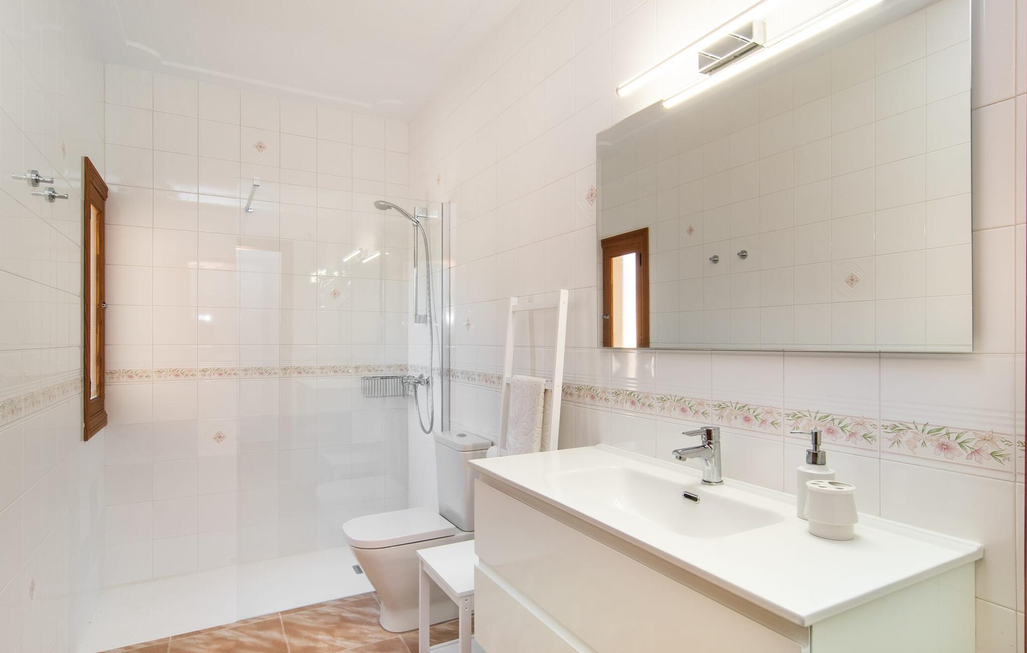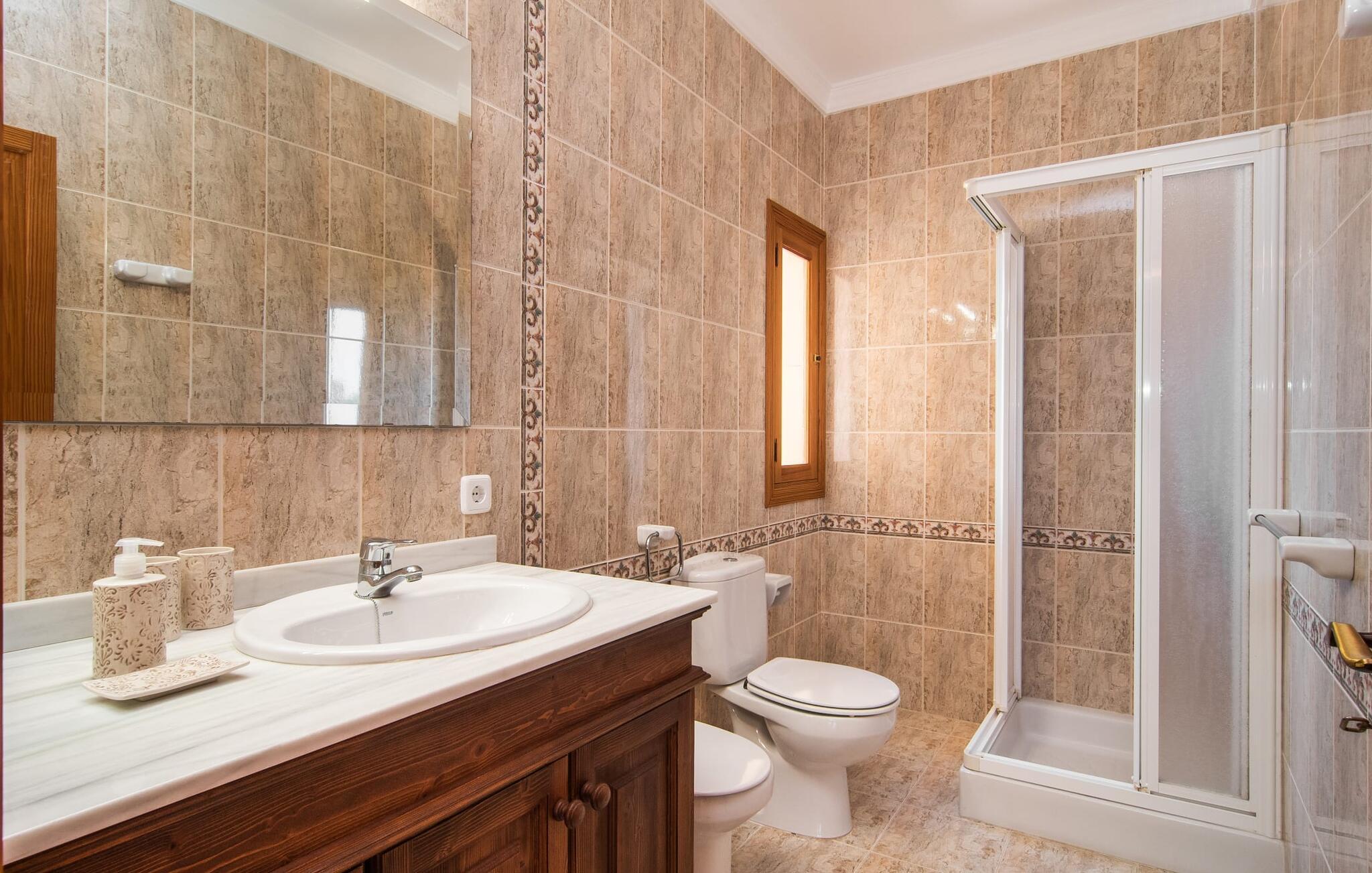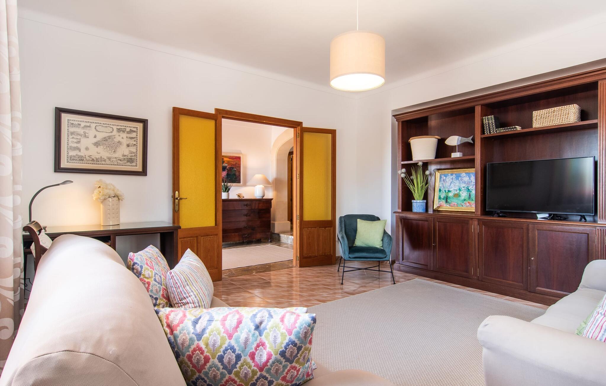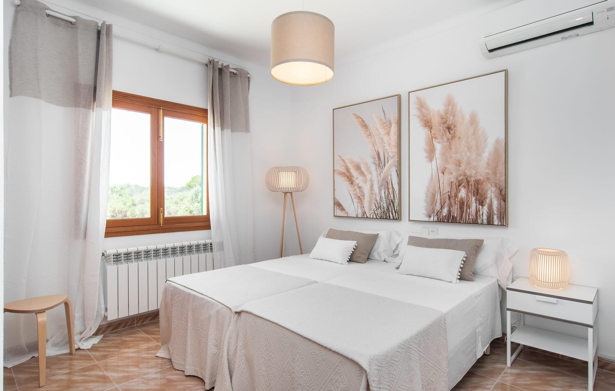 Hvis I værdsætter stort set uberørt og mangfoldig natur, men samtidig ikke vil gå glip af en badeferie, så er den familievenlige bondegård "Hort de Can Rafalet" lige noget for jer. På ejendommen omgivet af middelhavsflora vil I opleve absolut fred. Grønt så langt øjet rækker, med de imponerende saltmarker og megastranden Es Trenc ikke langt væk. Ferieejendommen byder på masser af udendørs plads, herunder en smuk mosaikbeklædt pool med tilhørende solterrasse. Her generer I ingen naboer, og I vil være fuldstændig uovervåget. Nyd aftenen på terrassen i skyggen af Toldo med dens rummelige spiseplads. Uanset om I er tidligt op eller sent op – den runde, delvist overdækkede veranda foran huset med traditionelle gyngestole inviterer jer til fuldt ud at nyde det hyggelige og indbydende feriehus på det sydlige Mallorca og lade blikket vandre. I kan også finde denne afslapning inde i den majestætiske feriegård. Kombinationen af mallorcansk landhusstil med moderne indretningsdetaljer kan betegnes som yderst vellykket. Et rummeligt indgangsparti med middelhavskarakter inviterer jer til at gå på opdagelse i huset. I stueplan finder I den hyggelige tv-stue, det dejligt store køkken-alrum med hyggelig spiseplads og et af de klimatiserede afslapningsrum. Et trendy badeværelse med brusekabine fuldender denne etage. Attraktivt boligtilbehør i landhusstil sætter også dygtige accenter på øverste etage. Det vidner de øvrige tre soveværelser også om, hvoraf to har direkte udgang til solbeskinnede altaner med fortryllende udsigt. To ekstra komfortable badeværelser (med bruser eller badekar) er en del af de forkælende grundfaciliteter i dette smukt beliggende feriehus. Den indvendige indretning af det rummelige feriehus er ideel til flere konstellationer med op til otte rejsende - altså to familier eller flere vennepar. Alle er velkomne på Hort de Can Rafalet! Den indbydende poolgård "Hort de Can Rafalet" imponerer med sin landlige ro mellem oliventræer og en historisk vindmølle, kombineret med den mest moderne komfort. Ejendommen har en førsteklasses beliggenhed i det sydlige Mallorca mellem den lille by Ses Salines og kystbyen Colònia de Sant Jordi. Stedets tiltrækningskraft ligger ikke kun i naturlige vidundere som saltmarkerne, men også i dets nærhed til drømmestranden Es Trenc. Dette er kun 10 minutter væk i bil. Aircondition er tilgængeligt i denne ejendom, men dets brug er begrænset til kl. 21.00 til 09.00. Ellers afregnes gebyret kontant på stedet.