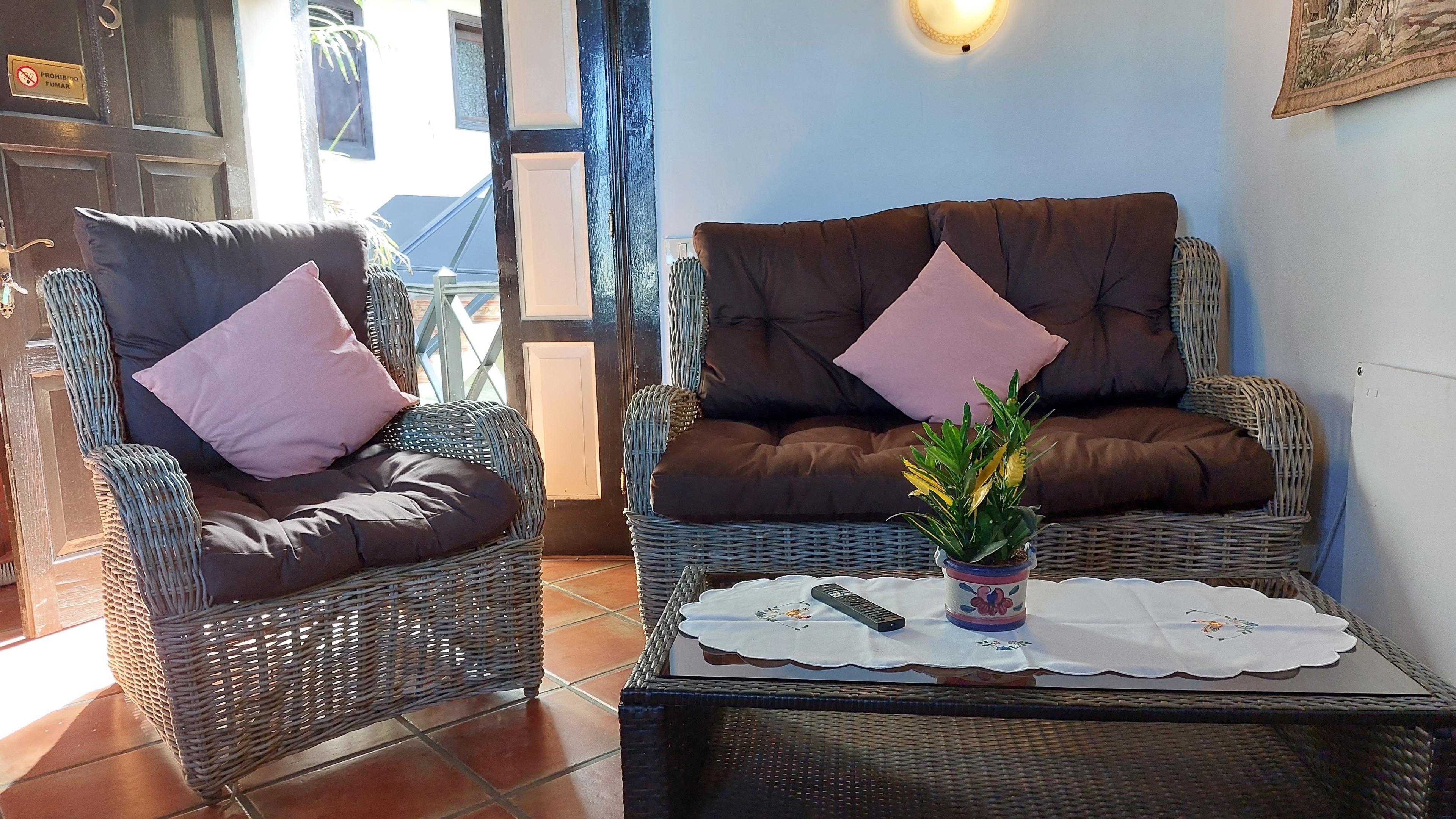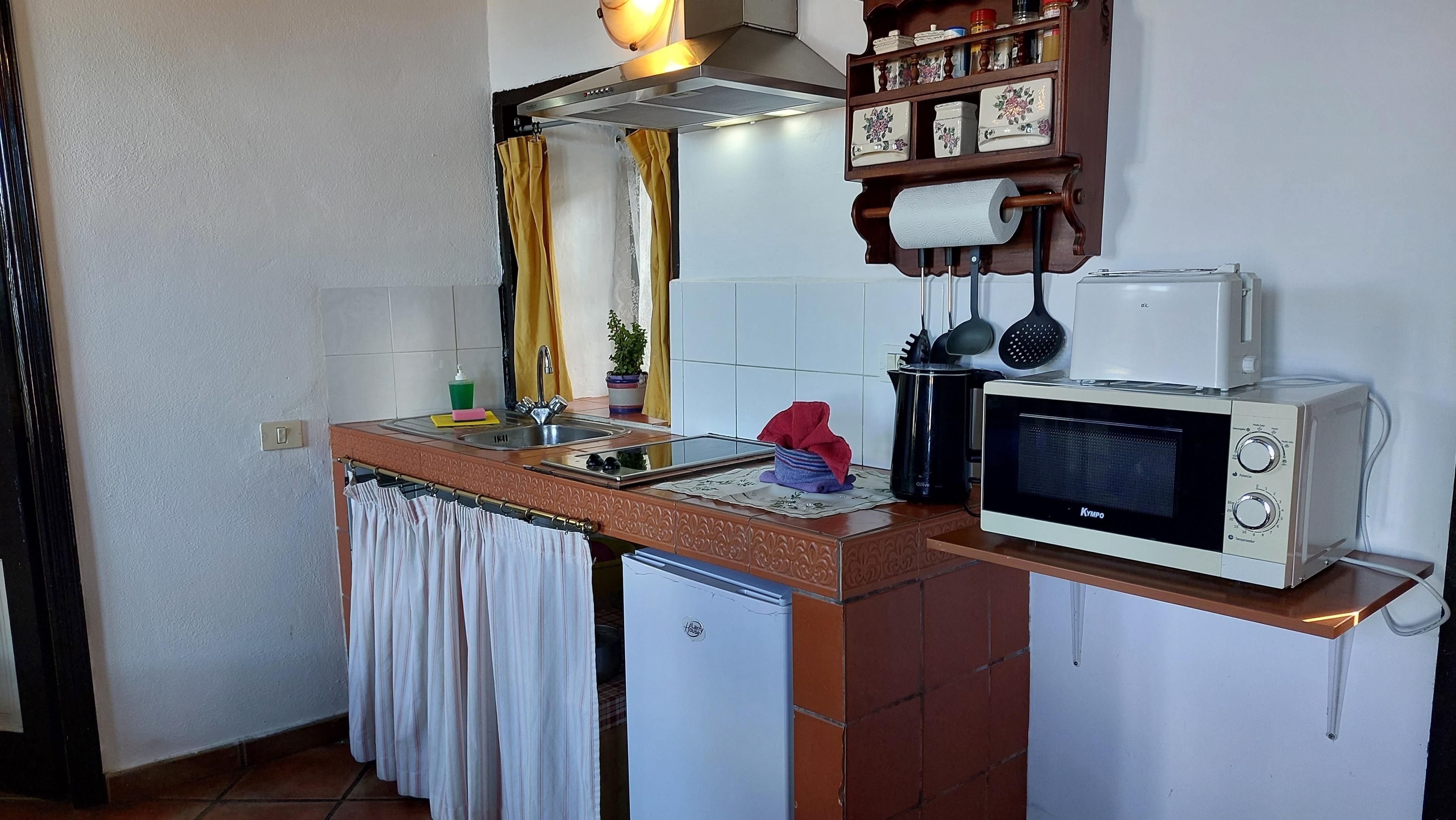 Diese im englischen Stil eingerichtete Ferienwohnung mit Meerblick liegt im ersten Stockwerk zur Landstraße (Dreifachverglasung). Es verfügt über ein Schlafzimmer, einen Wohnbereich mit Kochnische, Essecke, Schreibtisch und Sitzecke und ein Bad mit Dusche. Der Flachbildfernseher verfügt über Satellitenempfang mit ca. 450 internationalen Sendern- darunter alle frei empfangbaren deutschen Kanäle - sowie durch Umschalten auf der Fernbedienung über DVB-T-Empfang mit den gängigen spanischen Fernsehsendern. Zudem kann auf Anfrage kostenlos Netflix bereitgestellt werden. Unser Haus verfügt über Internetanschluss per Glasfaser und in allen Unterkünften sowie auf der Dachterrasse steht sehr gut funktionierendes W-LAN zur kostenlosen Verfügung.