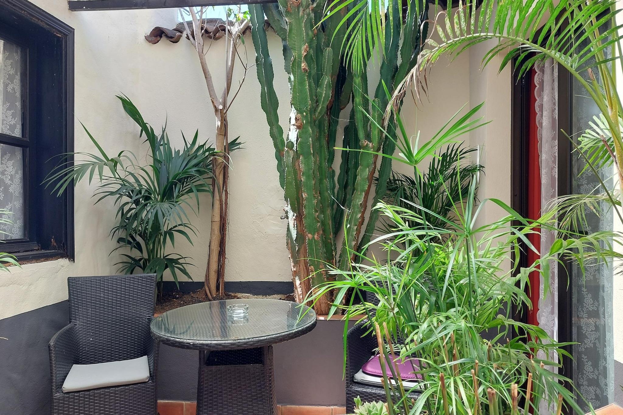 Dette charmerende, fritliggende sommerhus (ca. 50 m²) er et fremragende valg for en lille familie, der komfortabelt kan rumme kun to voksne uden børn. Hele planløsningen er placeret i stueetagen for nemheds skyld. Den centrale stue/spisestue er hyggelig og udstyret med et tv og en pejs, hvilket skaber en varm atmosfære. Den betjenes af et åbent køkken med mikrobølgeovn og køleskab med fryser, der indeholder essentielle apparater til selvforplejning under dit ophold. Sovearrangementerne er fleksible og praktiske til en familieopsætning. Der er to separate soveværelser: et soveværelse indeholder en lille dobbeltseng, og det andet soveværelse er møbleret med en køjeseng. Det største badeværelse har bruser, håndvask og toilet. For ekstra bekvemmelighed, især når man bruger poolområdet, er der et dedikeret poolhus med et ekstra toilet og et bruser. Ejendommen udmærker sig ved udendørs faciliteter og tilbyder gæsterne et sandt privat tilflugtssted. Den har en privat terrasse med havemøbler, en grill og en overdækket vinterhave/veranda, perfekt til nydelse året rundt. Højdepunktet er den private swimmingpool, der sikrer eksklusiv afslapning. Et udendørs køkken er også tilgængeligt til spisning og underholdning under åben himmel. Der er parkering på stedet. Sommerhuset ligger på Camino de Las Lajas, nær Icod de los Vinos – El Amparo på Tenerife, Spanien, og tilbyder rolige omgivelser til en ferie.