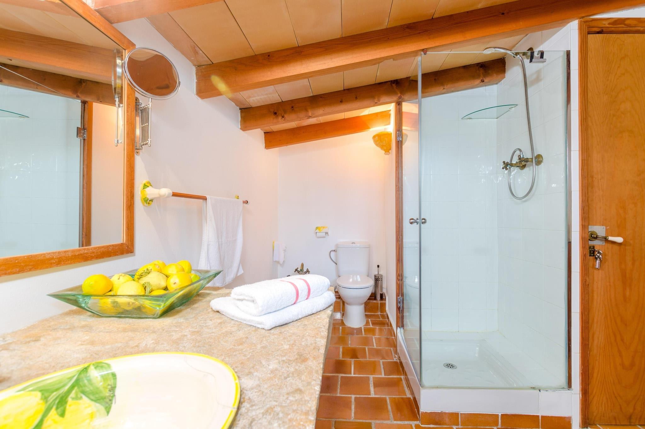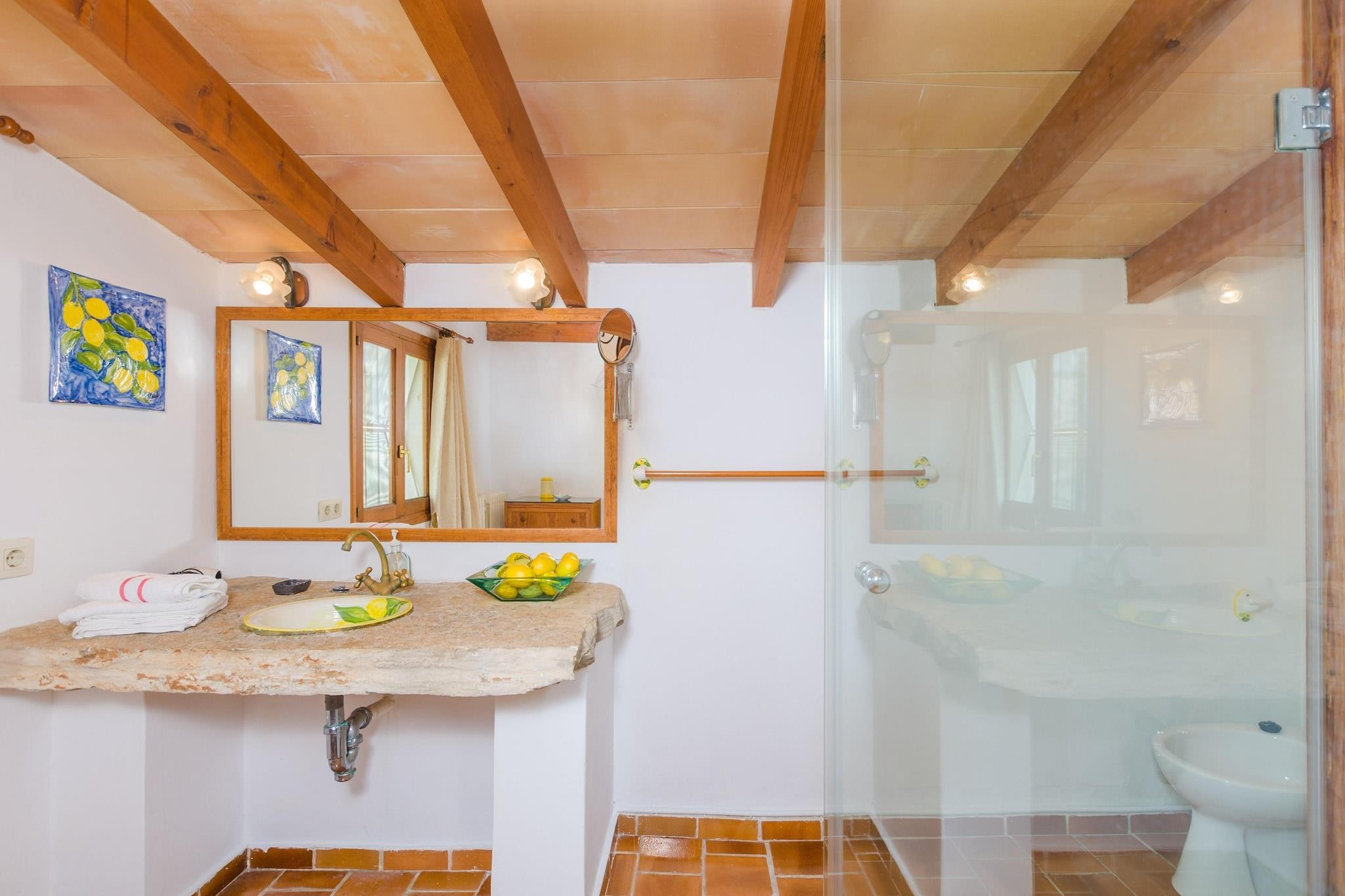 De buitenkant van dit pand is indrukwekkend. De echte ster is naast een majestueus bouwwerk het privé zoutbad van 7 x 3 m en 1 tot 1,7 m diep, waar u na het zonnebaden heerlijk kunt afkoelen. Vervolgens nodigt het terras u uit om heerlijke barbecues te bereiden en de middag door te brengen met kletsen en genieten van het uitzicht. Het huis beschikt over 2 verdiepingen. Vanaf het terras heeft u toegang tot een prachtige, met glas omgeven woon-eetkamer, perfect om tijdens het eten of ontspannen het prachtige uitzicht te bewonderen. Vervolgens komt u in de keuken, traditioneel van stijl en uitgerust met een gasfornuis, die uitkomt op een andere woonkamer, waar u satelliettelevisie kunt kijken of naar muziek kunt luisteren. Deze kamer is voorzien van airconditioning en open haard. De wasruimte beschikt over een wasmachine, strijkijzer en strijkplank. Er is een badkamer met ligbad op deze verdieping en een andere met douche op de bovenverdieping, waar zich ook de 3 slaapkamers met kledingkast bevinden. Twee bieden een tweepersoonsbed en de derde een eenpersoonsbed. Een dubbele biedt airconditioning. Er zijn 11 radiatoren in huis. Er zijn 2 kinderbedjes en 2 kinderstoelen. Het huis draait op zonne-energie. De villa ligt op 4,5 km van Inca, een klein stadje met alles wat u nodig heeft, zoals bars, restaurants, supermarkten, allerlei soorten winkels, enz. Elke donderdagochtend wordt hun traditionele markt gehouden. Omdat ze vrij centraal op het eiland liggen, hebben ze gemakkelijke en snelle toegang in elke richting. Het dichtstbijzijnde strand, Puerto de Alcúdia, ligt op 21,7 km afstand of ongeveer 25-30 minuten rijden. De WIFI heeft een downloadlimiet. Voor eventuele extra kosten kunt u contact opnemen met de adverteerder. Wij accepteren geen huisdieren. Het vieren van evenementen is niet toegestaan. Er is buiten parkeergelegenheid voor 5 auto's. Afstanden Strand: 21,7 km - Puerto de Alcúdia Luchthaven: 41 km - Son Sant Joan Golfbaan: 19,7 km - Pollença Stad: 4,5 km - Inca Treinstation: 4,7 km - Inca Bushalte: 4,7 km - Inca Veerboot: 25,5 km - Puerto de Alcúdia Ziekenhuis: 4,9 km - Inca Toeristenvergunning: ETV/966Bij de ingang dient u de Ecotasa (toeristenbelasting van de Balearen) contant te betalen. Het bedrag varieert tussen EURO 0,55 / per nacht per persoon in het laagseizoen en EURO 2,2 / per nacht per persoon in het hoogseizoen. Vanaf de negende dag wordt het met de helft verminderd. Personen onder de 16 jaar uitgesloten.
