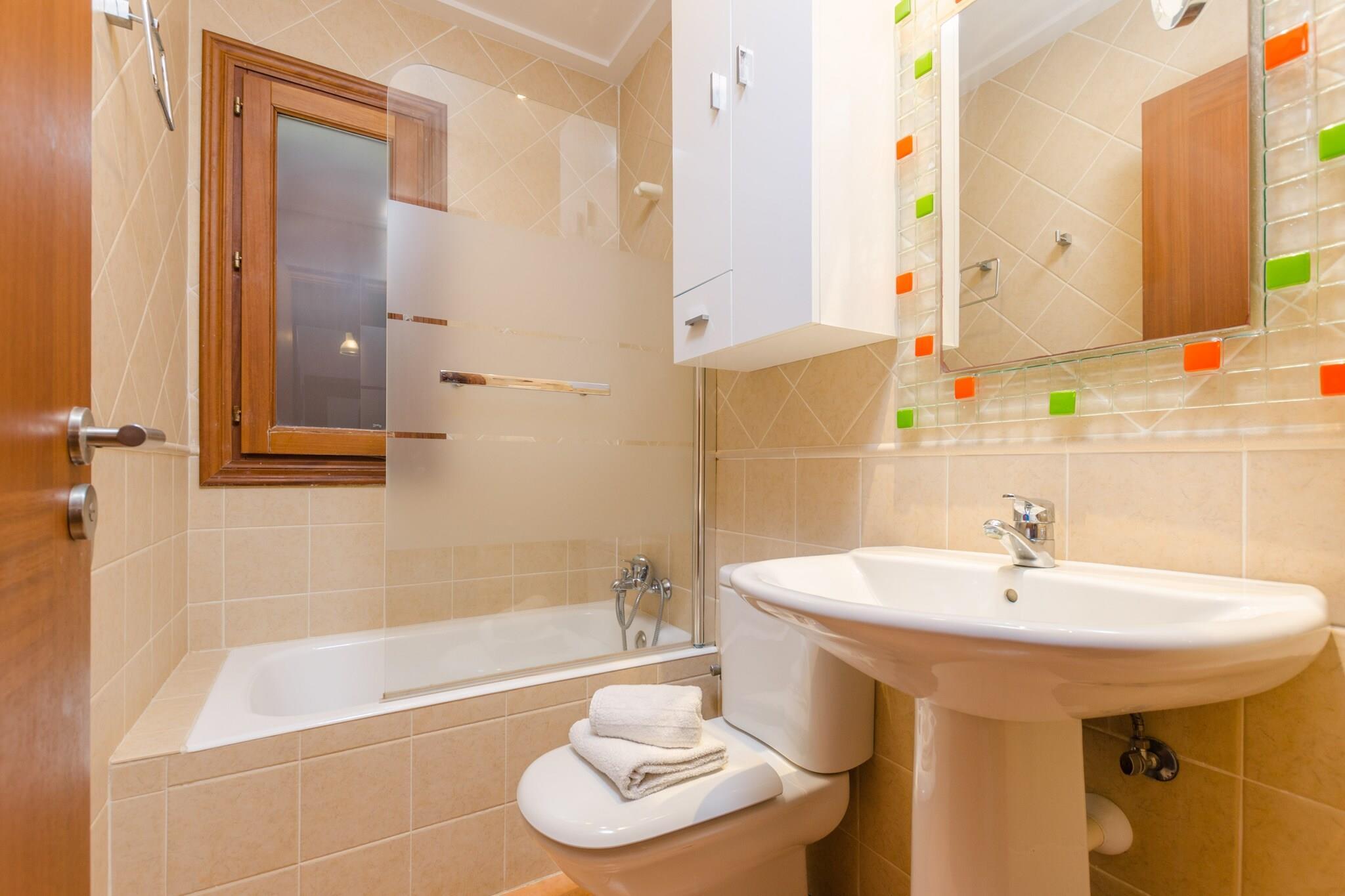 Lejligheden, indbydende og familieorienteret, har fire soveværelser designet til at rumme familier eller grupper komfortabelt. I stueetagen byder det ene soveværelse på en dobbeltseng og et tilstødende badeværelse med badekar. Ovenpå vil gæsterne finde endnu et badeværelse og tre ekstra soveværelser: et med dobbeltseng og eget badeværelse, og to med to enkeltsenge. Alle værelser er udstyret med garderobeskabe og aircondition, hvilket sikrer et behageligt miljø. En barneseng og højstol er også tilgængelige for familier med spædbørn, hvilket tilføjer ejendommens familievenlige appel. Beliggende kun 3 km fra Inca, en charmerende landsby kendt for sine butikker, supermarkeder og pulserende torsdagsmarked, er ejendommen ideelt placeret til at udforske lokale attraktioner. Gæsterne kan besøge historiske steder, herunder tre kirker fra det 13. århundrede og San Bartolomé-klosteret. Den naturskønne Santa Magdalena eremitage byder på en fantastisk udsigt og er også i nærheden. For strandentusiaster er Puerto de Alcúdia og Puerto de Pollença cirka 25 km væk, hvilket gør dem let tilgængelige for en dag med sol og afslapning. Offentlige transportmuligheder, såsom en togstation 4,5 km væk og et busstoppested 3,2 km fra ejendommen, giver bekvemme rejseforbindelser. Ejendommens ydre er fuldt indhegnet og byder på en rummelig have med en velholdt græsplæne, træer og planter. En terrasse er vært for en dejlig klorpool (7 x 4 meter) med varierende dybder, perfekt til afkøling. Gæsterne kan slappe af på en af de 10 liggestole i læ af parasoller, mens de nyder en god bog. Som reaktion på Coronavirus (COVID-19) er yderligere sikkerheds- og sanitetsforanstaltninger i kraft på denne ejendom.
