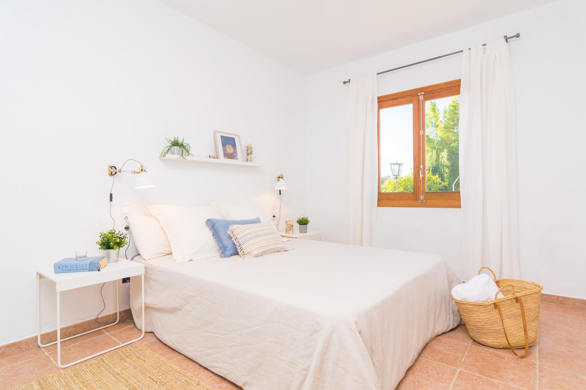 Dette fantastiske landsted nær Inca er perfekt til et fredeligt tilflugtssted. Dens frodige have omgiver en privat 10 x 5 m klorpool (1,2-2,5 m dyb) med 8 liggestole til at slikke den mallorcanske sol. Køl af under den udvendige bruser, og nyd derefter måltider i det airconditionerede køkken/spisestue ved poolen med gaskomfur, grill og stort spisebord. Du finder også en grill, brændeovn og et komplet badeværelse med badekar udenfor. Den indhegnede ejendom tilbyder total privatliv. Den anden bygning huser boligareal og soveværelser, alle med AC. Slap af på de komfortable sofaer med satellit-tv eller i læsekrogen. To brændeovne holder dig hyggelig i køligere måneder. En lang gang med et 5 meter langt klædeskab fører til 4 soveværelser - tre med dobbeltsenge, et med to enkeltsenge, plus plads til en barneseng og høj stol. Der er to badeværelser indeni, et med badekar og et med bruser. Vaskerummet er fuldt udstyret med vaskemaskine, tørretumbler, strygejern og bord. Kun 3 km fra Inca finder du butikker, restauranter, et ugentligt marked og natteliv. Port d'Alcúdia-stranden ligger omkring 30 km væk.