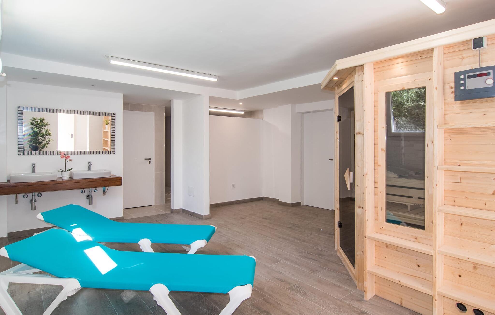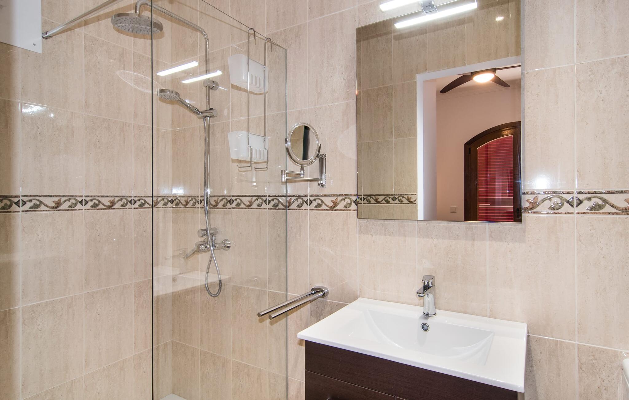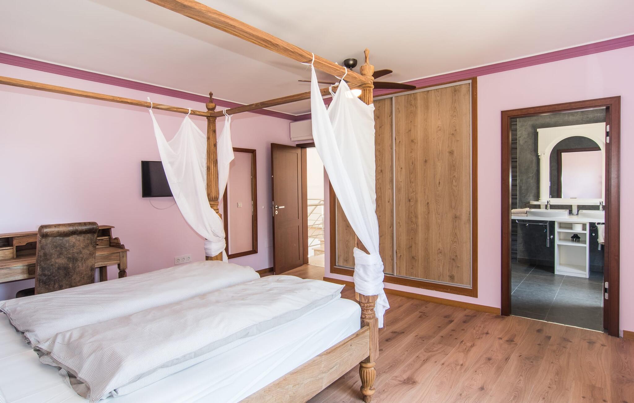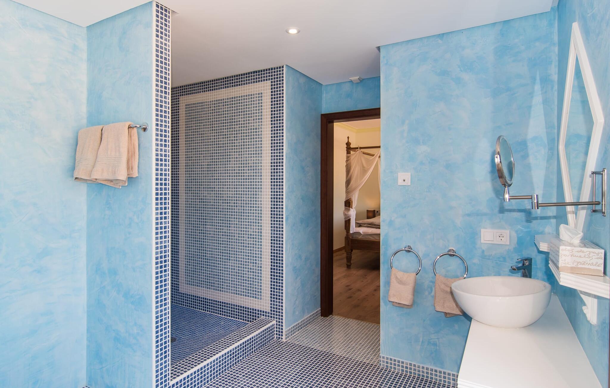 Velkommen til jeres udsøgte feriehus, Villa "Inka" - beliggende på det sydlige Mallorca i den lille kommune Porreres. Denne sublime, okkerfarvede juvel rejser sig over 28.000 m² af næsten uberørt natur, som var den hugget i sten. Den rummelige ejendom med en parklignende have byder på plads nok til store familier og rejsegrupper. En stærk træbestand, frodige palmer og store grønne græsplæner pryder ejendommen - Moder Natur var meget generøs her. At kigge ind i den tilsyneladende uendelige afstand tillader jeres tanker at vandre, og I glemmer alt, jeg mener alt, omkring jer - tro modtoet: fri hverdag, ferie på! I krydser indgangen til villaen via en landevej typisk for Mallorca og parkerer på grusparkeringspladsen, som har ti parkeringspladser. Nu er det tid til at komme ind! Når I er ankommet, giver den overdækkede terrasse med en enestående udsigt over poolen skygge til jeres daglige samvær og grill - og der er endda en pizzaovn i udekøkkenet! Få skridt fra den smukke villa tager jer direkte til den azurblå pool med panoramaudsigt, som allerede venter jer under den mallorcanske sol. Omkring poolen inviterer komfortable liggestole og en udendørs dagseng af høj kvalitet jer til at tage en eftermiddagslur eller læse jeres yndlingsbog. Majestætisk boligareal på utrolige 600 m². De store vinduer, nogle med smukke røde skodder, tjener som privatliv og solafskærmning og dekorerer den detaljerede udvendige facade. Den harmonisk koordinerede farvepalet fra sand til røde toner løber gennem villaens elegante interiør. På øverste etage er der fem lyse og klimatiserede soveoaser, hver med en dobbeltseng. Elegante stoffer omslutter jeres himmelske soveområde og garanterer søde drømme og afslappende søvn. Udover tv, loftsventilatorer og luksuriøse badeværelser kan I nyde komfort i topklasse. Det sjette soveværelse med en luksuriøs dobbeltseng (1,40 x 1,90 m) og et tilstødende badeværelse er i stueetagen. Hvert soveværelse har nok opbevaringsplads til jeres ejendele, og I kan trygt opbevare jeres værdigenstande i pengeskabet. Den storslåede og førsteklasses stue-spisestue udgør hjertet i drømmevillaen. Det er her I mødes og har sjove stunder som en stor gruppe eller familie. Det rustikke chikke i det luksuriøse lædersofa- og lænestollandskab af høj kvalitet er bevis på perfekt smag med en garanteret behagelig atmosfære. Det kolde-varme klimaanlæg garanterer en perfekt rumtemperatur. Det åbne luksuskøkken med kogeø byder på scene til show cooking. Alle kan frit vælge deres plads på de elegante barstole eller ved det lange spisebord. Villaen "Inka" har endnu flere ekstraudstyr i vente til dig: Det absolutte højdepunkt er det separate, moderne billardrum. Elsker I lidt mere action? Hvert spil ved bordfodboldbordet gør jer i godt humør og har en masse sjov. Hvis I kan lide at holde jer i form med fitnessudstyr, kan I gøre det i fitnessrummet. Om tirsdagen kan I køre til det ugentlige marked i den rolige by Porreres via den nærliggende landevej, som let kan høres afhængig af vindforholdene. I kan finde alt her: solmodnet frugt og grønt, god vin, men også husholdningsartikler og tøj. Oplev markedets travlhed i de små gader og nyd de lokales varme gæstfrihed på de mange restauranter og caféer. Turistattraktioner, der er værd at se, omfatter sognekirken Senyora de Cosolació, bygget i 1600-tallet, og Santuari di Monti-Sion-klosteret, omkring 4 km væk. I kan nå klosteret til fods eller i bil. Der kan I få en uforglemmelig udsigt over øen. Og vi har også noget at byde på til alle dem, der elsker havet – nemlig en anbefaling til en forlænget strandtur. I vil hurtigt finde lettelse: mange smukke strande kan nås på cirka 10 minutter. 20 minutter i bil. Den fantastiske villa "Inka" med pool er beliggende i den sydlige del af Mallorca - i den rolige kommune Porreres. Ejendommen strækker sig over hele 28.000 m² med panoramaudsigt over det idylliske landskab. Landevejen fører jer direkte til det ugentlige marked i Porreres, supermarkeder er i umiddelbar nærhed og de smukkeste strande på denne populære ø kan nås på cirka 10 minutter. 20 minutter i bil.