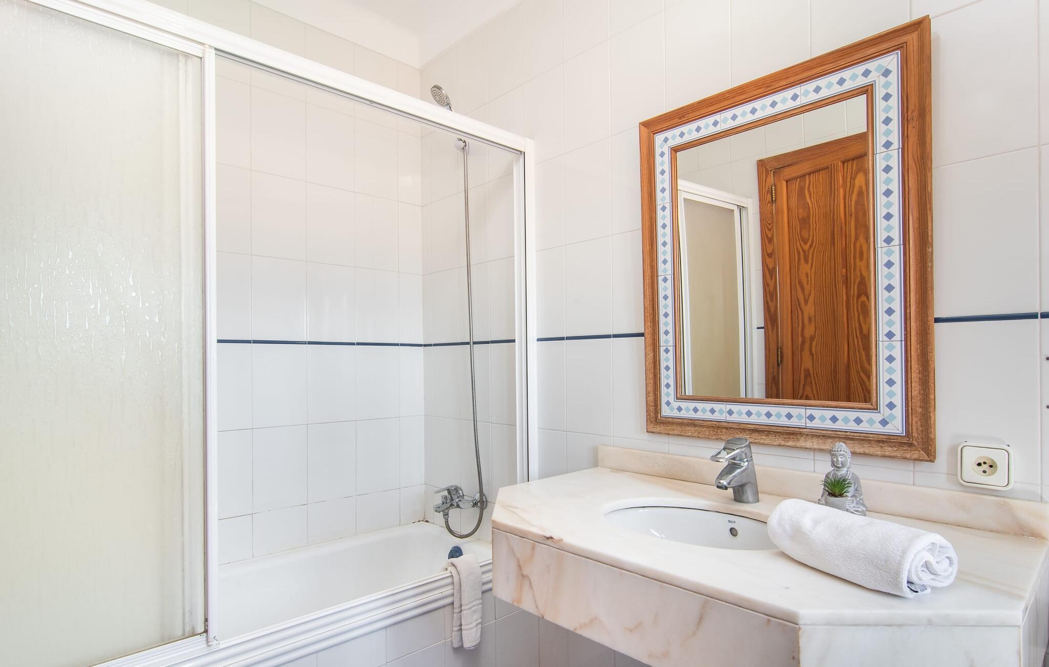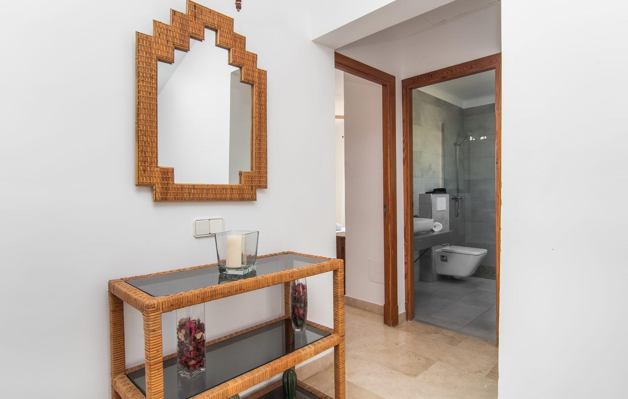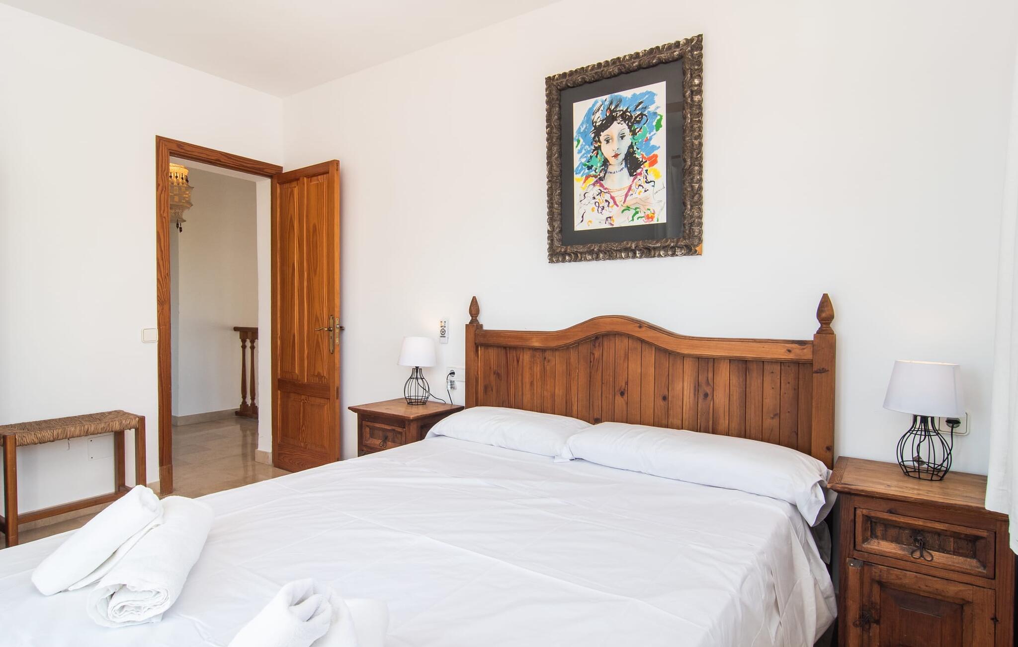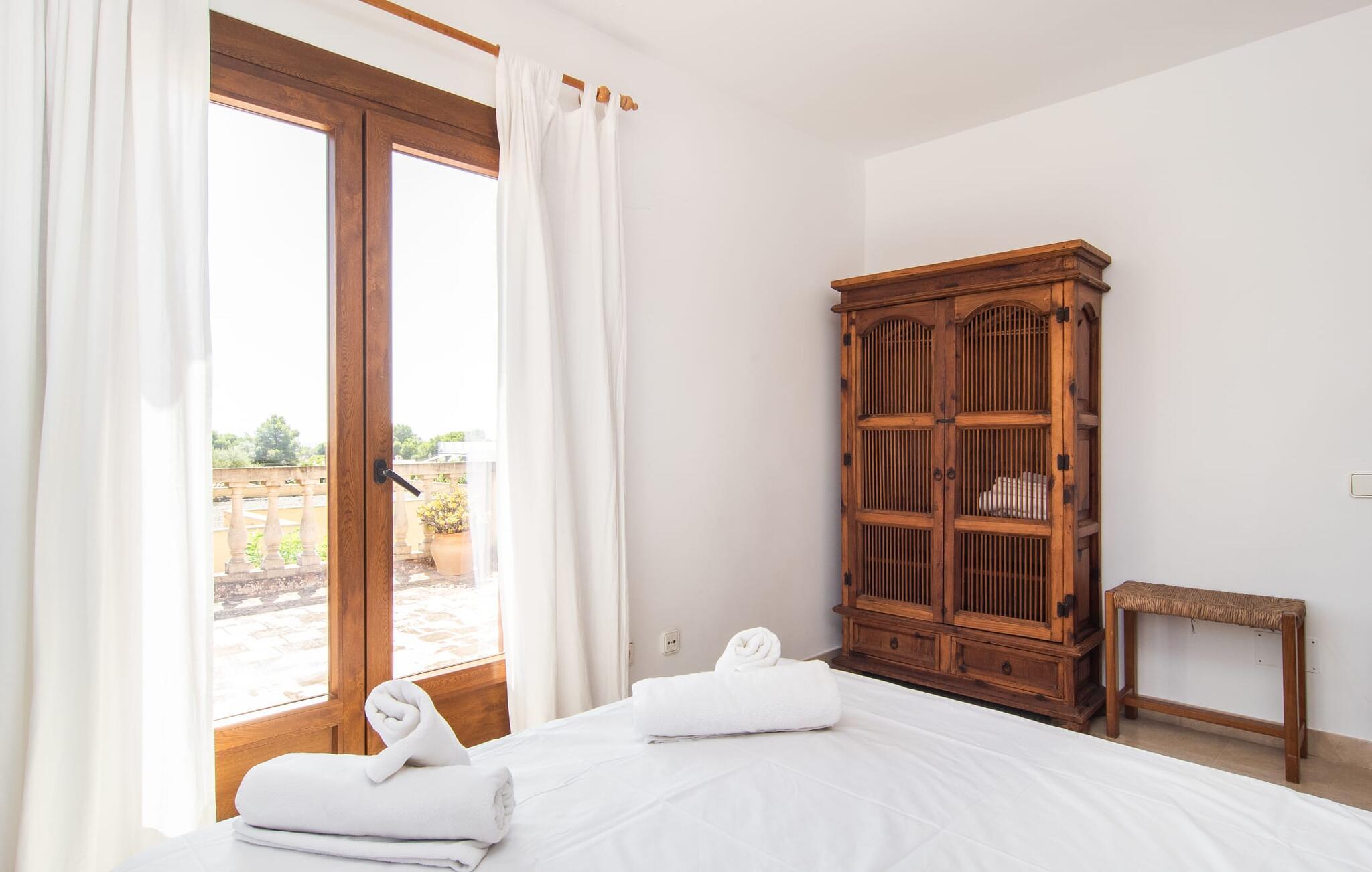 Den moderne villa "Isabel" ligger på en velholdt ejendom omgivet af hække nær Mallorcas sydkyst. Herfra kan I nemt nå de smukke sandstrande i Sa Rápita på cykel, som I kan parkere sikkert på stedet eller leje på stedet. Udover veludviklede cykelstier ved havet ligger villaen på en anvist cykelrute, så I kan kombinere jeres badeferie med afslappende cykelture i de smukke omgivelser. Bag huset er der en skøn pool med liggestole og parasoller. En overdækket terrasse med udendørs spiseplads er perfekt til grill og udendørs spisning. På øverste etage er der to altanterrasser med smuk udsigt over poolen og de omkringliggende villaer. Indenfor løber den lyse stue med pejs og udgang til poolterrassen ud i spiseplads og køkken. På dette niveau er der et soveværelse med dobbeltseng og et separat badeværelse. En trappe i indgangspartiet fører til øverste etage. Her finder I afslappende søvn i et af de tre dobbeltværelser. En af dem har eget badeværelse. To af dem har adgang til egen altanterrasse. Der er også et andet separat badeværelse ovenpå. Hele huset er udstyret med radiatorer, hvilket gør villaen til en behagelig mulighed selv uden for højsæsonen på Mallorca. Villaen ligger i den rolige havneby Sa Rápita på Mallorcas sydkyst. Der er et lille supermarked i landsbyen; For større indkøb ligger Campos 15 minutters kørsel derfra. Den lange naturlige strand Sa Rápita kan nås i bil på 6 minutter, men også nemt på cykel på 8 minutter.