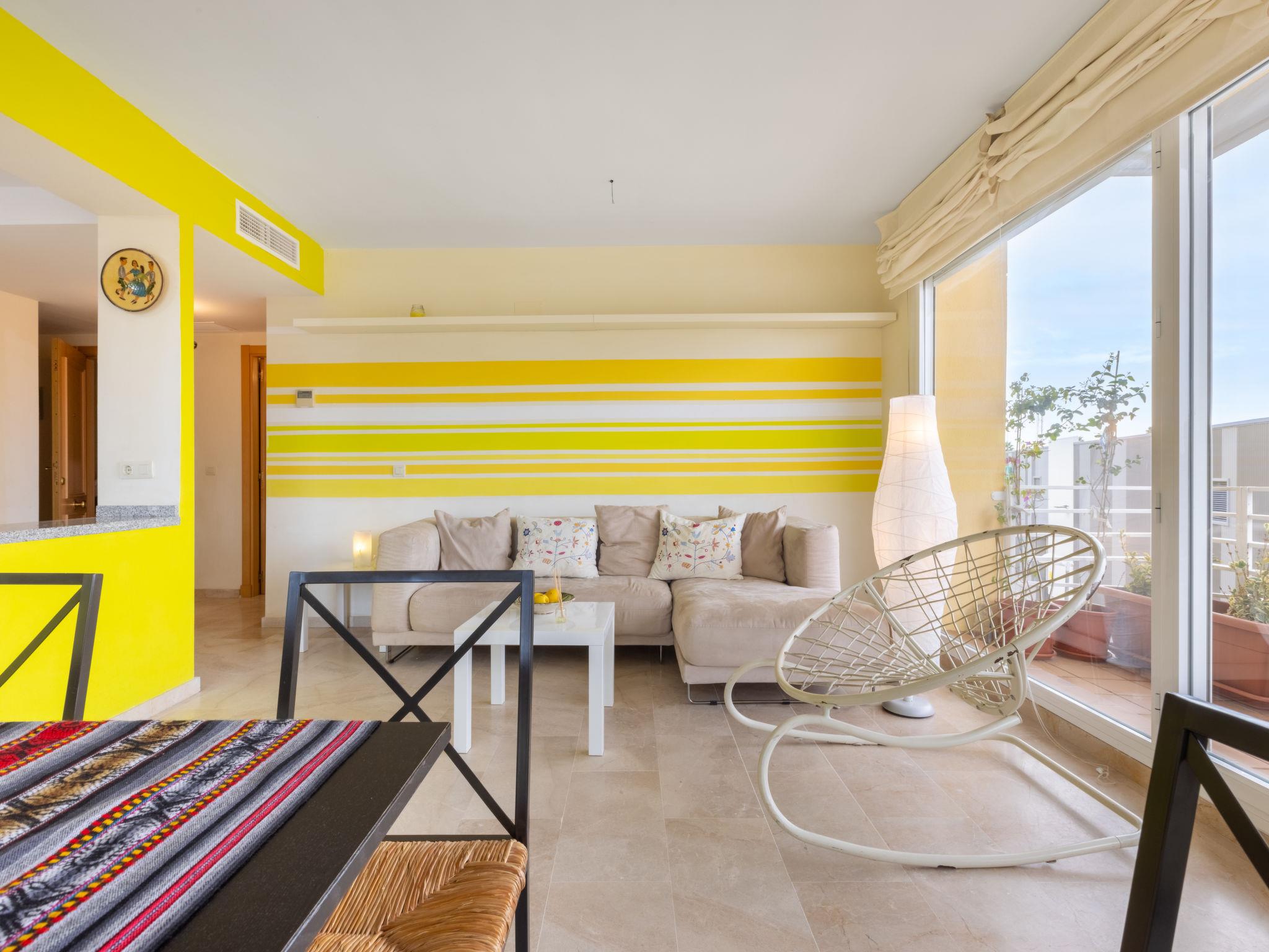 Apartment block. In a quiet, sunny position, 500 m from the sea, 300 m from the beach. For shared use: swimming pool (3 x 6 m, depth 140 - 190 cm, seasonal availability: 15.Jun. - 15.Sep.). In the house: lift. Public parking on the road. Supermarket 10 m, restaurant, bar, café 100 m, bus stop 1.3 km, railway station 40 km, sandy beach "Playa del Camino de Santana" 500 m. Sports harbour 1.2 km, marina 1.2 km, golf course (18 hole) 18 km, walking paths from the house, cycle lane 400 m. Hiking paths: Ruta del Cameleón 400 m.