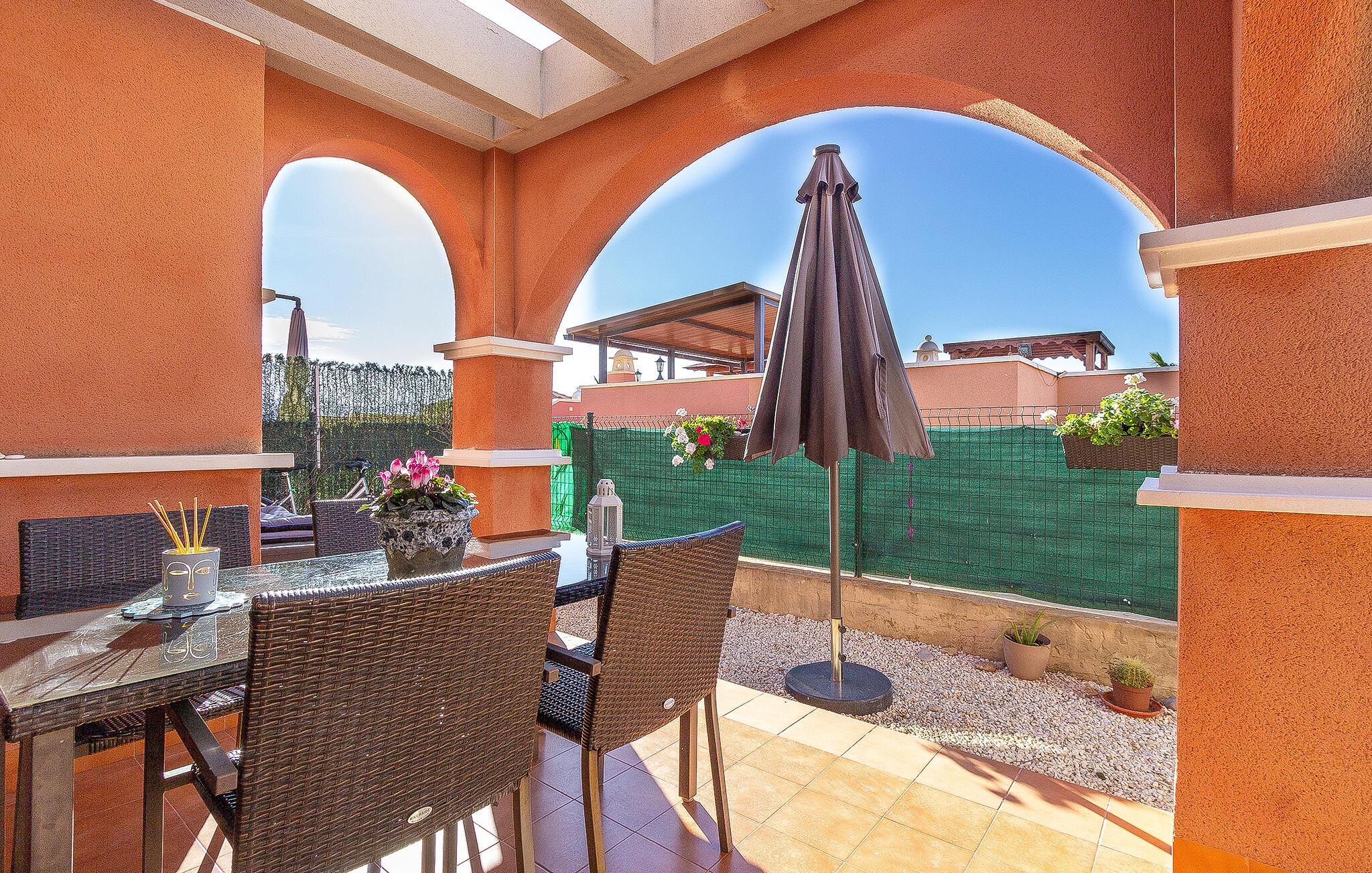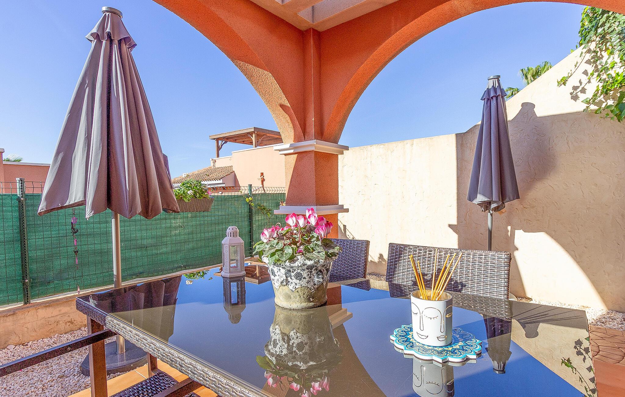 Velkommen til denne indbydende ferielejlighed, hvor en afslappende ferie venter. Her kan I tilbringe afslappende timer på sofaen og nyde jeres måltider, enten i den lyse stue eller på en af ??dine terrasser. Spis morgenmad på tagterrassen med udsigt over havet og tag derefter en dukkert i den smukke pool. Hvis I foretrækker havet, er stranden kun en kort gåtur væk.