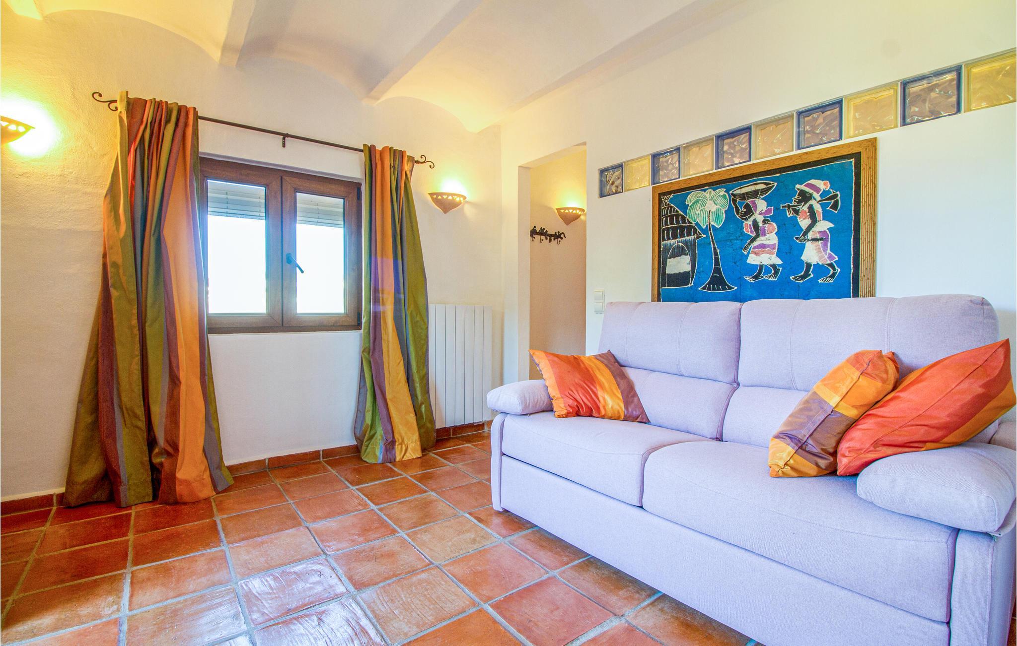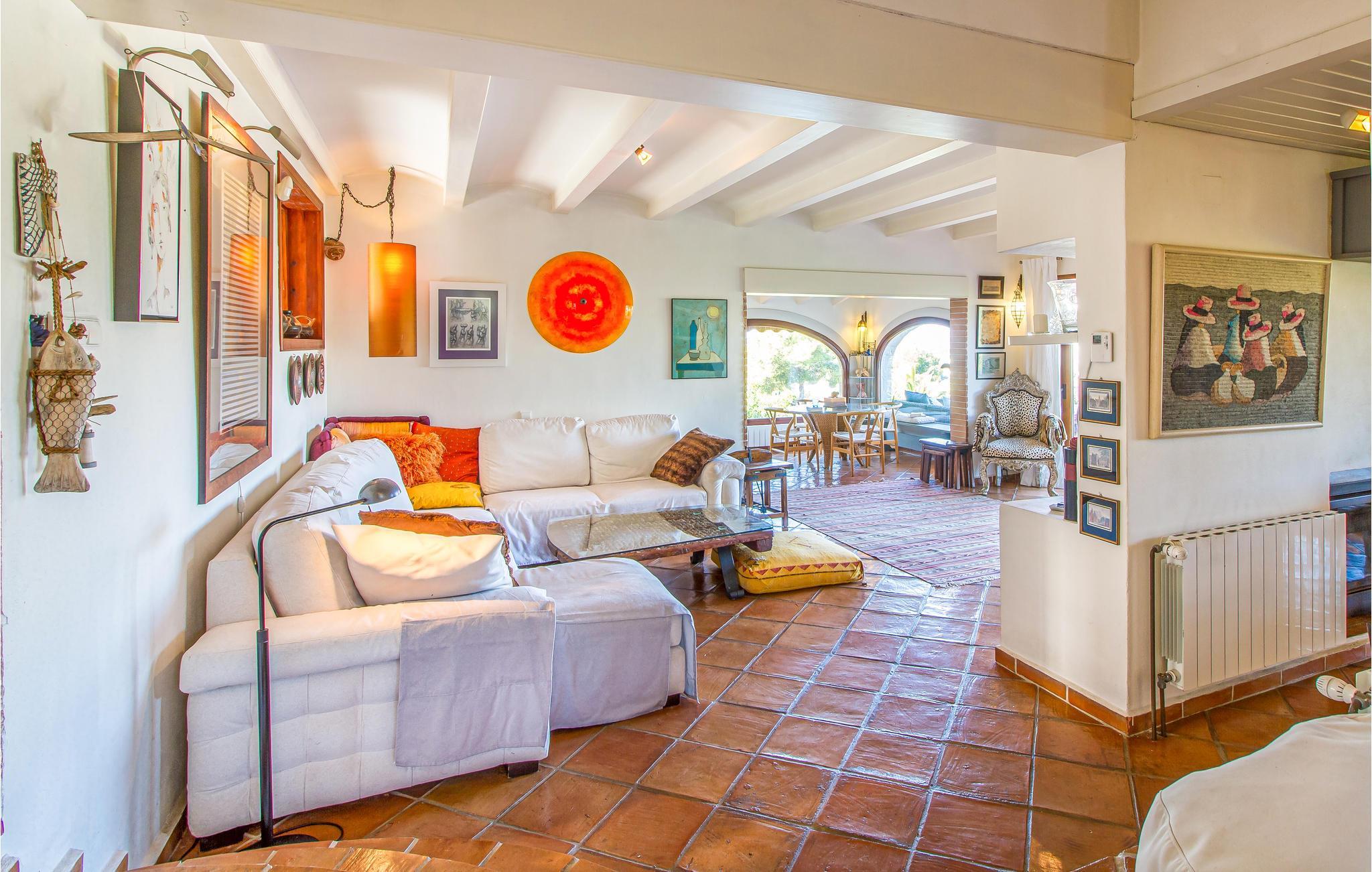 Denne fantastiske og elegante ferievilla i Ibiza-stil ligger i Javea - et af de absolut bedste områder på Middelhavskysten på grund af det fremragende klima og dens demografiske, smukke placering mellem havet og bjergene. Javea tilbyder sine besøgende uendelige muligheder for fritidsaktiviteter, gode vandreture i naturparken i Montgó, hvor du kan finde mange udsigtspunkter på de betagende klipper, og bugter samt den brede strandpromenade "Playa del Arenal", der med sin marina og store udvalg af restauranter og fiskerihavn sikrer, at du ikke kommer til at gå i seng på tom mave. Tværtimod! Fra huset har du også en smuk udsigt over de smukke, bjergrige omgivelser. De forskellige terrasser giver dig muligheden for at nyde solen eller slappe af i skyggen. Tilbring kvalitetstid i den friske luft med din yndlingsbog eller tag en grillaften med din familie og dine 2 firbenede venner, der er velkommen i dette hus, hvor I nyder den lune sommeraften. Ved indgangen til den private og lukkede ejendom kan du få adgang til det smukke poolområde via trappen og den rummelige stue ind i huset. Her kan hele familien få en frisk dukkert og uendeligt mange timers sjov. På samme etage finder du et toilet, køkkenet, soveværelset med omklædningsrum og badeværelse. I stueetagen, som er direkte tilgængelig fra haven, er de to soveværelser og badeværelset.