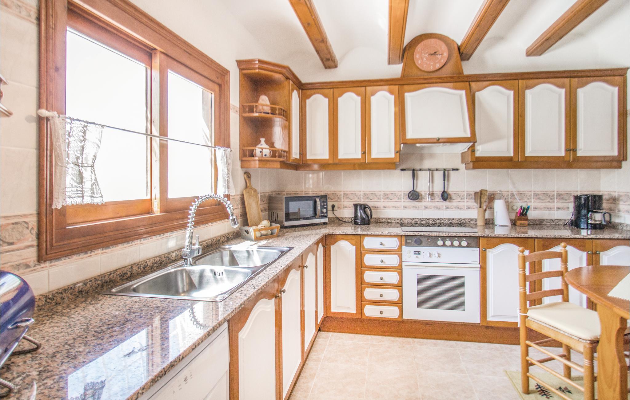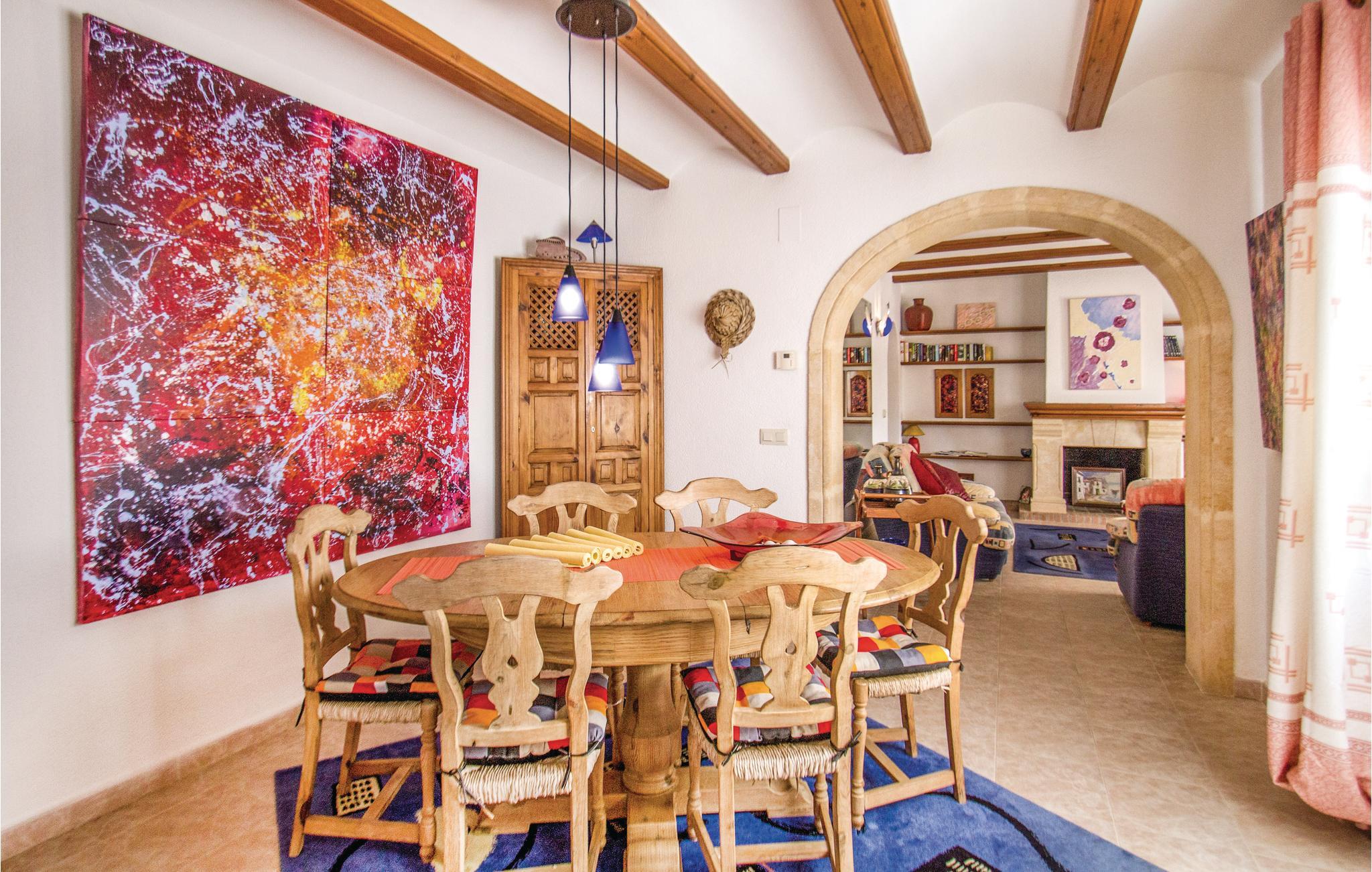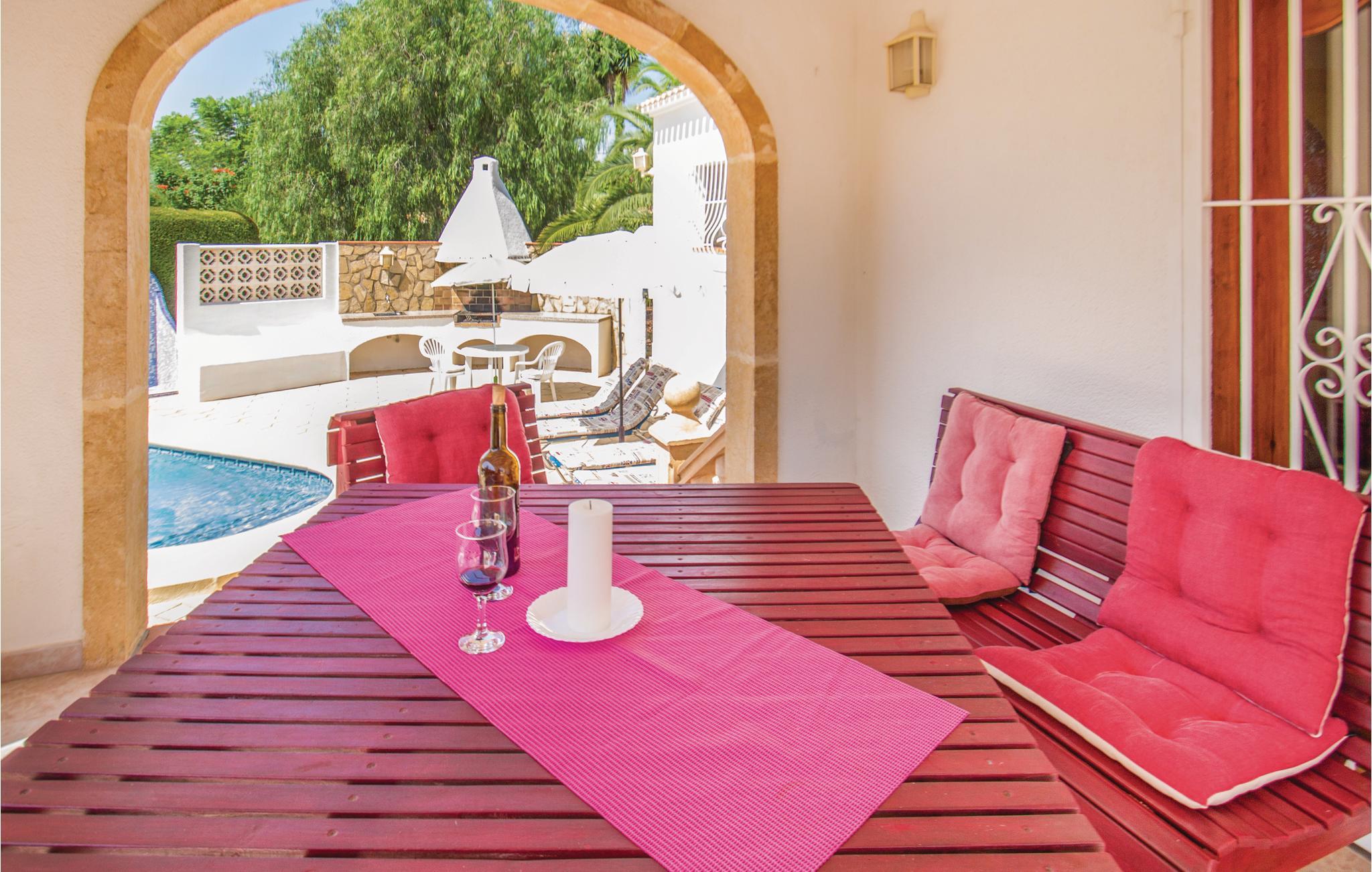 Dette vidunderlige hus ligger i absolut rolige omgivelser og omgivet af en hæk, der gør stedet helt ugenert. Swimmingpoolen er omgivet af en velholdt græsplæne og støder op til et herligt udendørs køkken i den ene ende. Her kan I virkelig slappe af og nyde ferien, samtidig med at I snupper jer en forfriskende dukkert i det våde element. Fra opholdsstuen har I direkte adgang til terrassen, som både byder på solrige og skyggefulde siddepladser. Indretningen i huset er meget smagfuld og udstyret med alle de former for komfort, I drømmer om til ferien. Da huset er udstyret med gulvvarme, egner det sig også særdeles godt til ferie i de køligere måneder. I den lille havneby Javea finder I mange butikker og restauranter, og I kan nemt gå til byen, og lade bilen stå. Med sit afvekslende landskab, kysten, det smukke opland og vidunderligt milde klima er Javea et meget fristende feriemål.