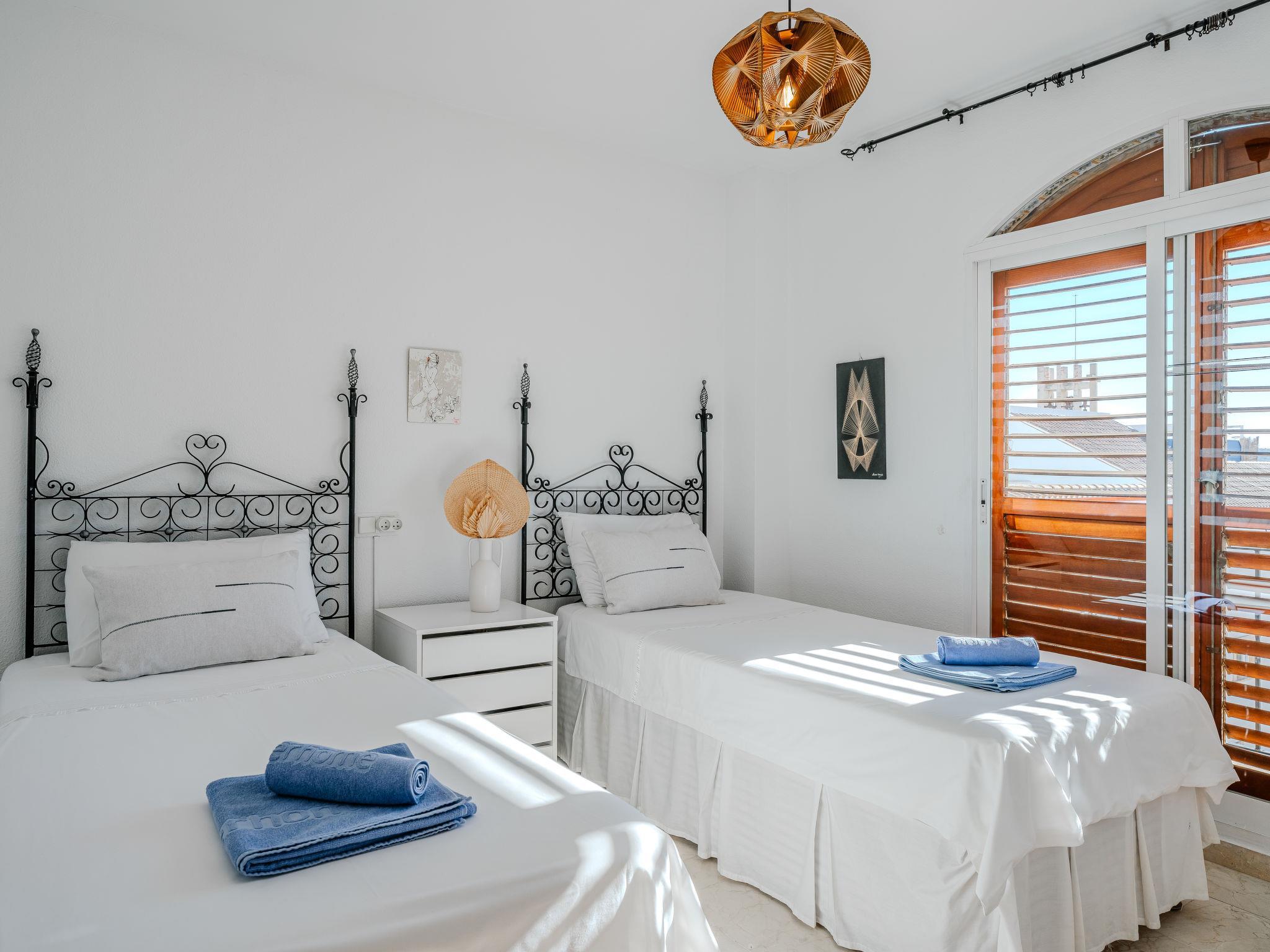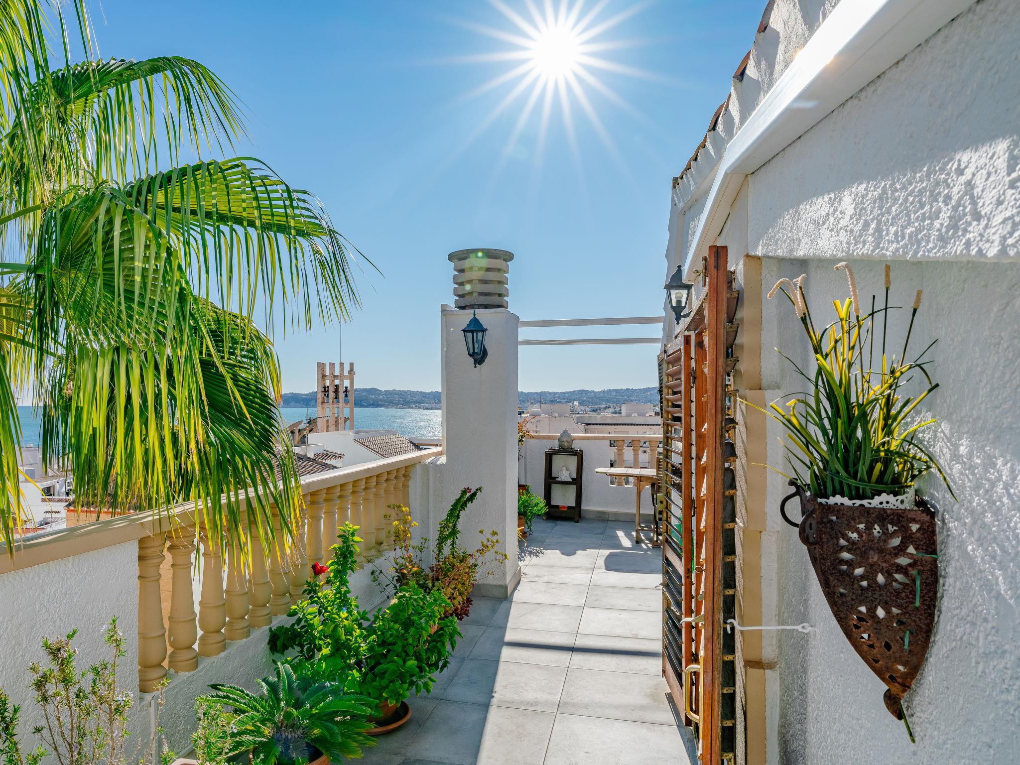 "Xabia Port Plus", 4-room maisonette 120 m2 on 2 levels. Living/dining room with satellite TV, air conditioning, fan and forced-air heating. Exit to the terrace. 1 room with 1 french bed (140 cm, length 200 cm), fan. 1 room with 2 beds (90 cm, length 200 cm), fan. Kitchen (oven, dishwasher, 3 ceramic glass hob hotplates, toaster, kettle, microwave, freezer, electric coffee machine, Capsules for coffee machine (Dolce Gusto) extra). Shower/WC. Upper floor: 1 room with 1 french bed (160 cm, length 200 cm), bath/bidet/WC, air conditioning and forced-air heating. Exit to the terrace. 2 large terraces. Terrace furniture. Marvellous view of the sea, the swimming pool and the garden. Facilities: washing machine, dryer, iron, hair dryer. Internet (WiFi, free). VT-496854-A // Reg. Nr.: ESFCTU0000030710003855790000000000000000000VT496854A3