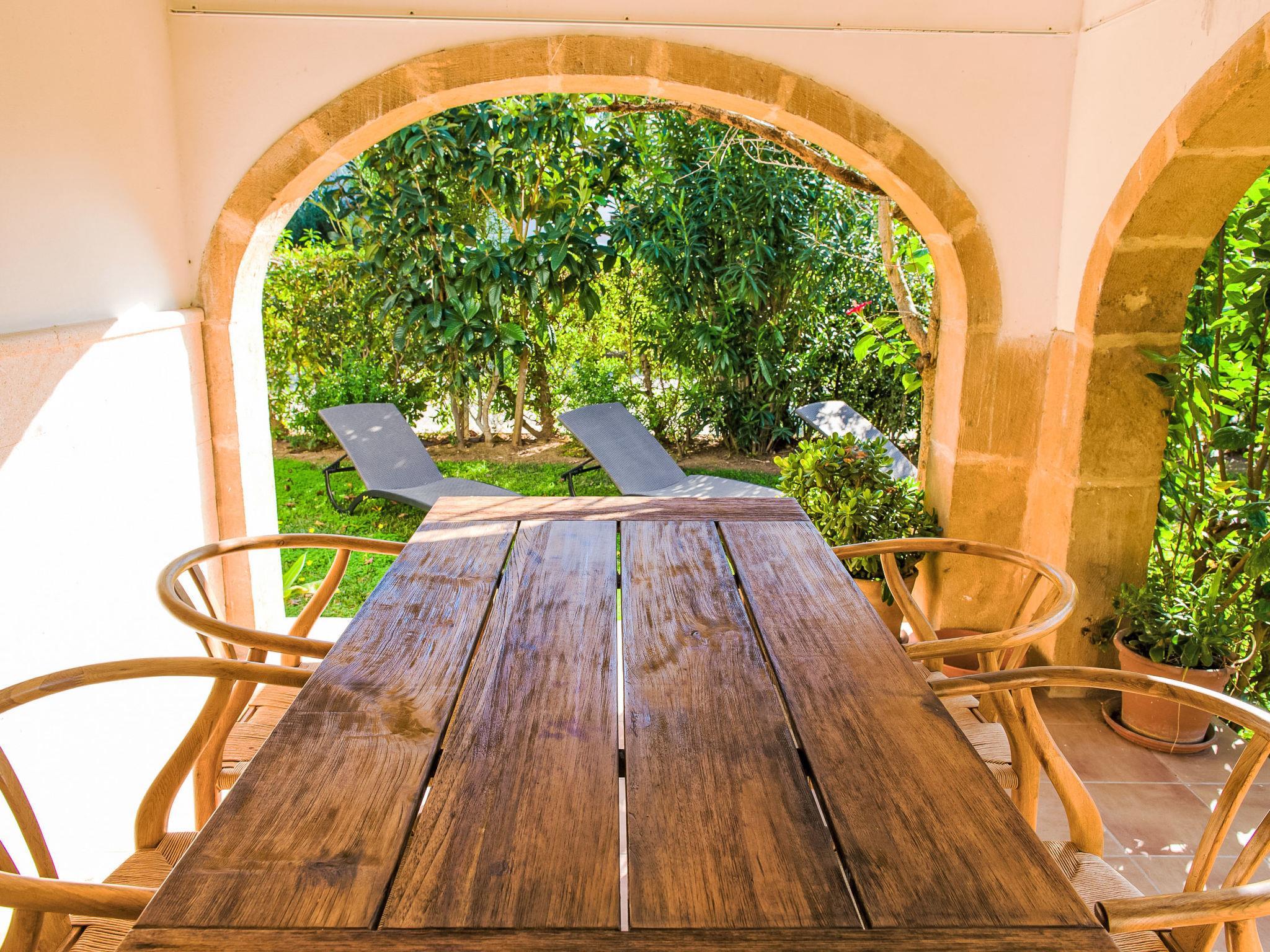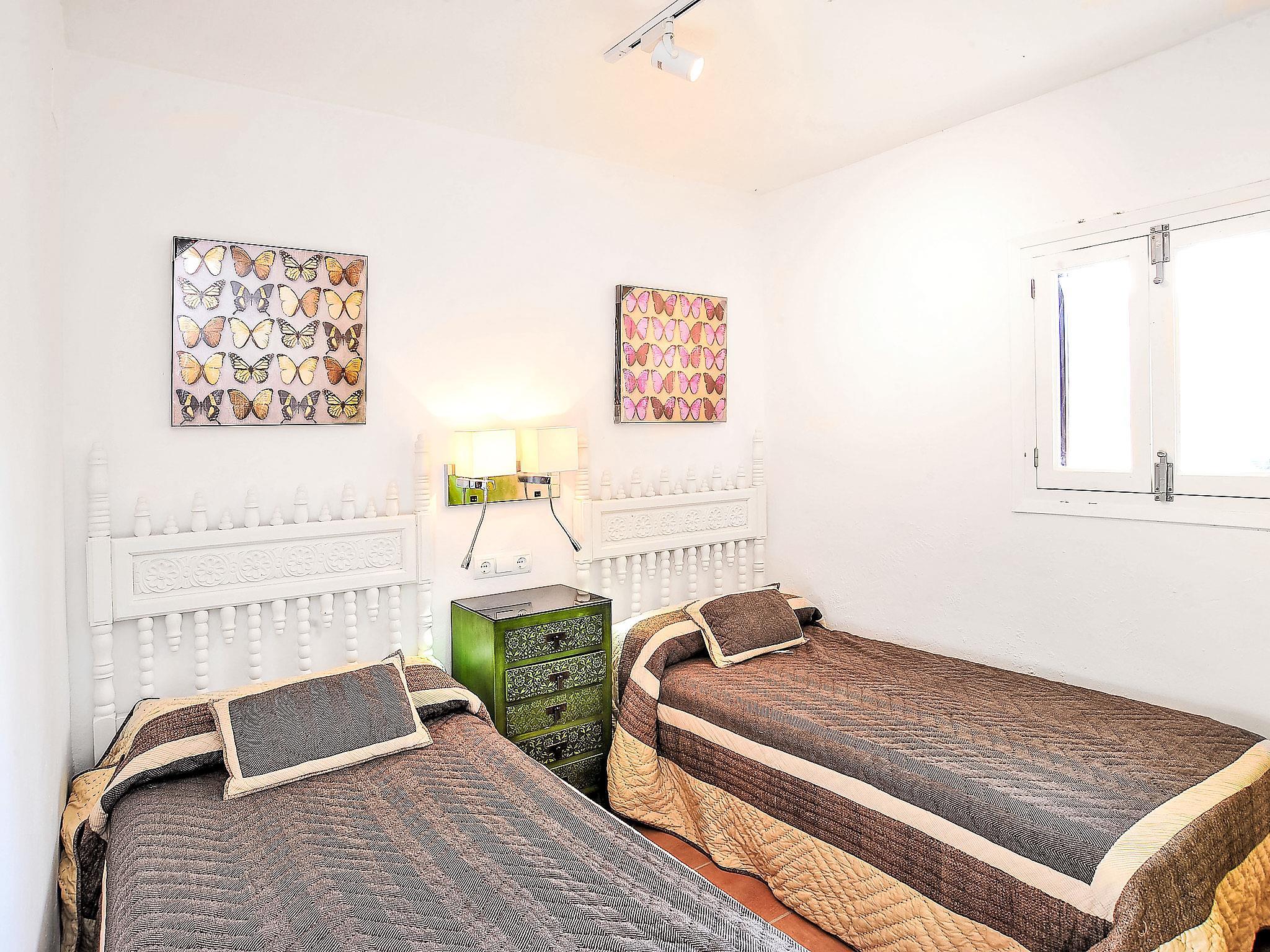 3-room terraced house 70 m2. Fully renovated in 2014, comfortable furnishings: living/dining room with digital TV and air conditioning. Exit to the garden. 1 room with 1 french bed and air conditioning. 1 room with 2 beds and air conditioning. Kitchen (oven, 3 ceramic glass hob hotplates, microwave, freezer, electric coffee machine). Shower/WC. No heating option. Terrace furniture, barbecue, deck chairs (3). Facilities: washing machine. Parking (1 car). Please note: maximum 1 pet/ dog allowed. TV only ES. AT-440252-A // Reg. Nr.: ESFCTU00000307100023980300000000000000000AT-440252-A9