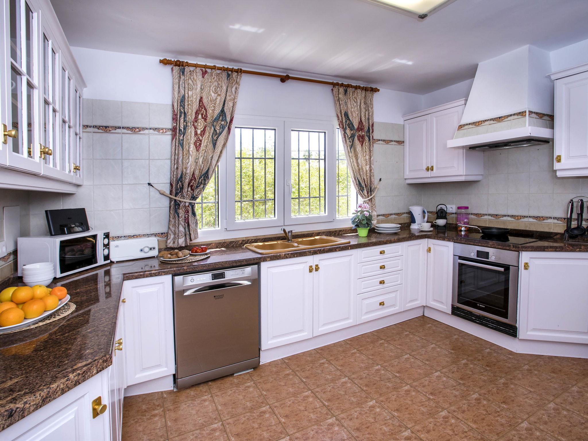 Very large, cosy villa "La Esquina", 2 storeys. In the district of La Lluca, in the resort 7 km from the centre of Javea - El Arenal, in a quiet, sunny position, 7 km from the sea, 7 km from the beach. Private: terraced garden with lawn and trees, swimming pool angular (10 x 5 m, depth 80 - 210 cm, seasonal availability: 01.Jan. - 31.Dec.) with internal staircase. Outdoor shower, garden furniture, barbecue, parking (for 2 cars). Supermarket 3.5 km, restaurant 1 km, bus stop "Estacion de autobuses Javea" 6 km, sandy beach "El Arenal" 7 km. Sports harbour 7 km, marina 7 km, golf course (9 hole) 1 km, surf school 7 km. The owner does not accept any youth groups.