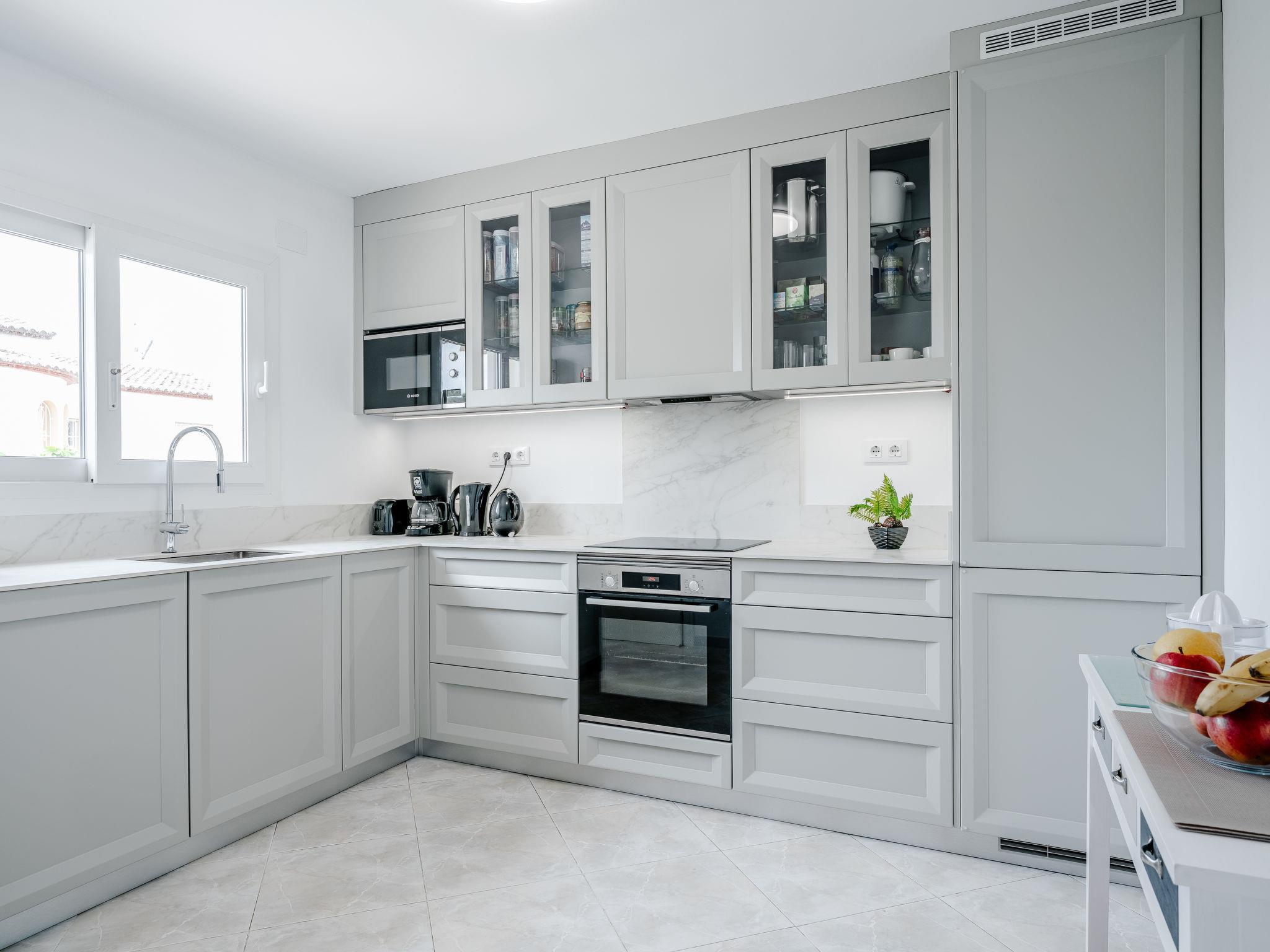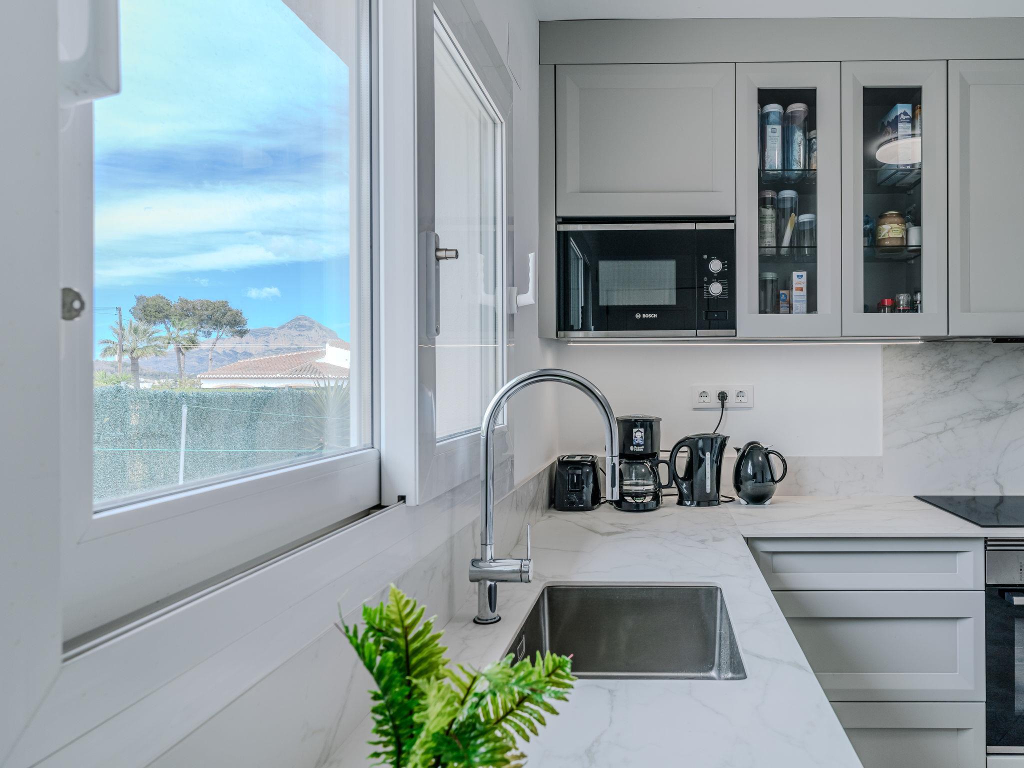 "Aurora Boreal", 4-room villa 150 m2. Spacious and bright, very comfortable and stylish furnishings: living/dining room with satellite TV, air conditioning and forced-air heating. Exit to the terrace. 1 room with 1 french bed (180 cm, length 200 cm), shower/bidet/WC, air conditioning and forced-air heating. Exit to the balcony. 1 room with 1 french bed (160 cm, length 200 cm), air conditioning, fan and forced-air heating. 1 room with 2 beds (90 cm, length 200 cm), air conditioning, fan and forced-air heating. Large kitchen (oven, dishwasher, 3 induction hot plates, toaster, kettle, microwave, freezer, electric coffee machine). Shower/WC. Large terrace. Terrace furniture, barbecue, deck chairs (6), covered balcony, sitting area. Very beautiful view of the sea, the valley and the garden. Facilities: washing machine, iron, hair dryer. Internet (WiFi, free). Parking, garage. Please note: non-smoking house. VT-492878-A // Reg. Nr.: ESFCTU000003071000219492000000000000000000VT-492878A2
