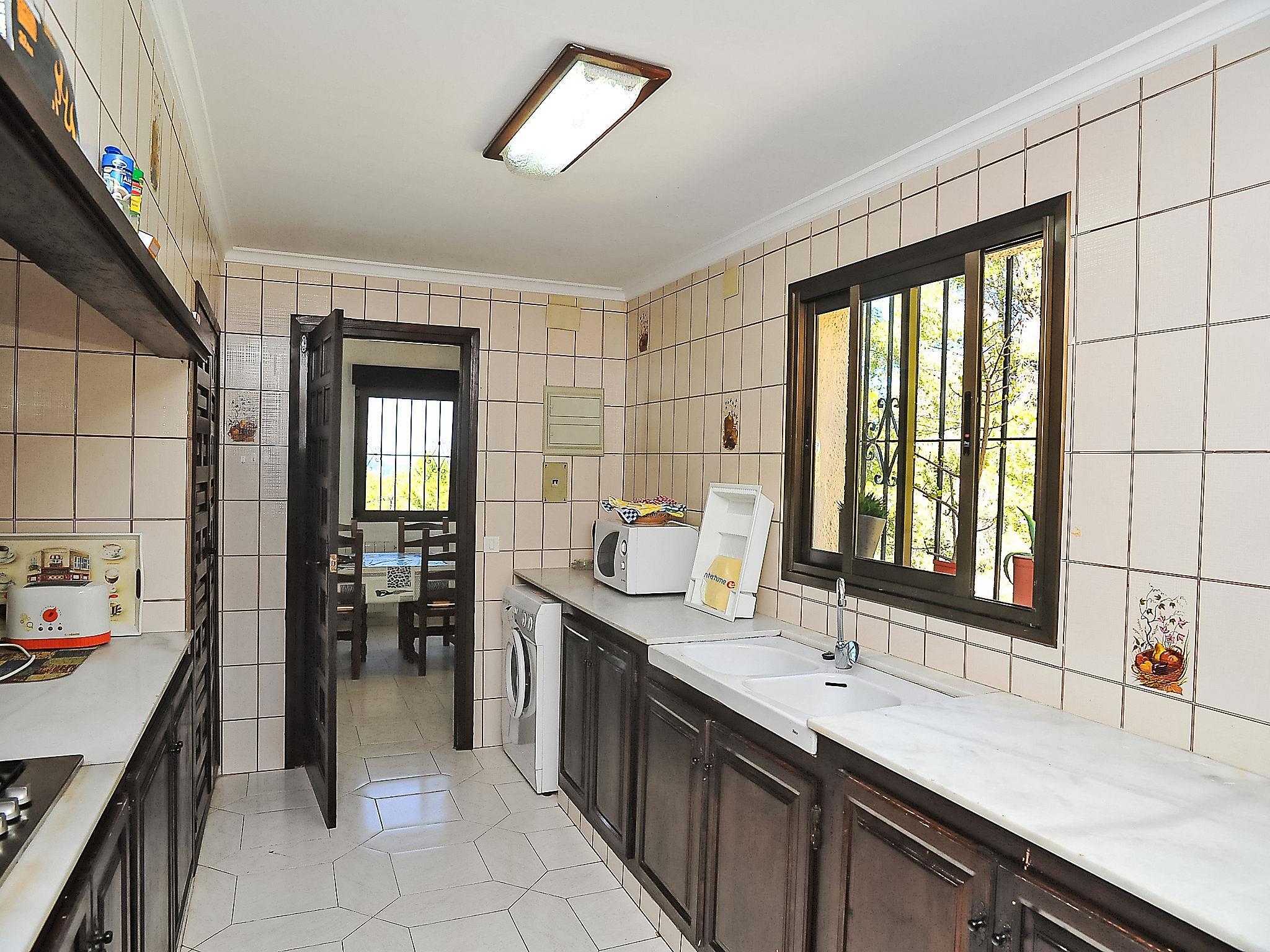 House "Tosalans", 2 storeys. In the district of Adsubia, on a slope, 4 km from the sea. Private: garden 1'100 m2 (fenced) with lawn and wildlife garden, swimming pool (5 x 10 m, seasonal availability: 01.Jan. - 31.Dec.) with internal staircase. In the house: roof terrace, central heating system. Shop 3.3 km, restaurant 3.3 km, bar 3.3 km, bus stop "Mas y Mas carretera del Pla" 2.2 km, sandy beach "Arenal" 4 km. Groups of teenagers on request only.
