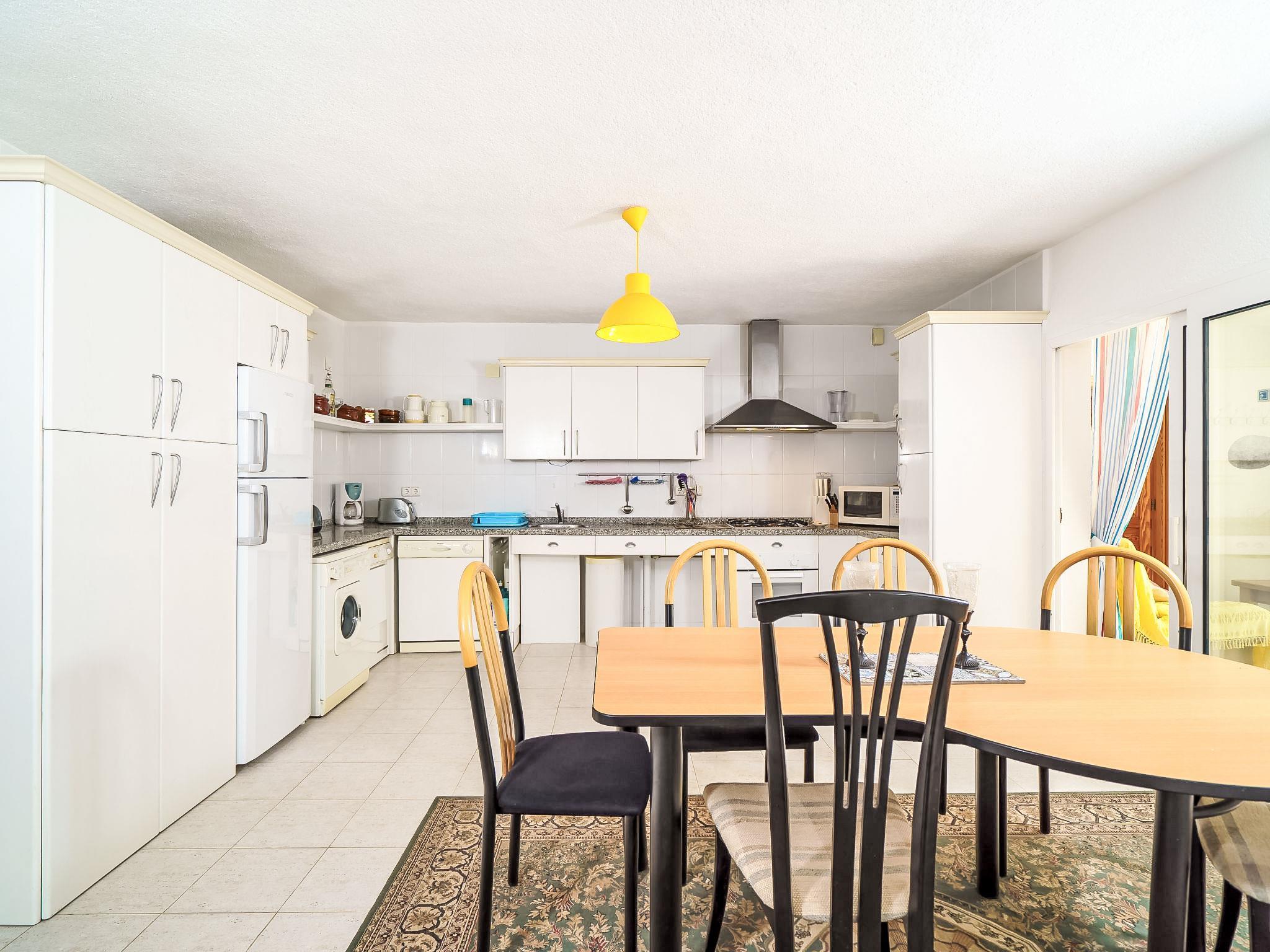 6-room house 160 m2, on the lower ground floor. Simple and practical furnishings: living room with satellite TV (flat screen), DVD and air conditioning. Living room. Exit to the garden. 1 double bedroom with fan. 2 rooms, each room with 1 french bed (180 cm, length 200 cm), air conditioning and fan. 1 room with 2 beds (90 cm, length 190 cm), fan. Large kitchen (dishwasher, microwave, freezer, electric coffee machine) with dining table. 2 showers/WC. Large terrace. Terrace furniture, barbecue, deck chairs (8). Facilities: washing machine, children's high chair, baby cot for up to 2 year olds, hair dryer. Internet (WiFi, free). Parking (fenced 2 cars) at the house. Please note: TV only EN, ES. The accomodation is on the lower part of the house. AT459696A // Reg. Nr.: ESFCTU0000030710004408650000000000000000000AT459696A9