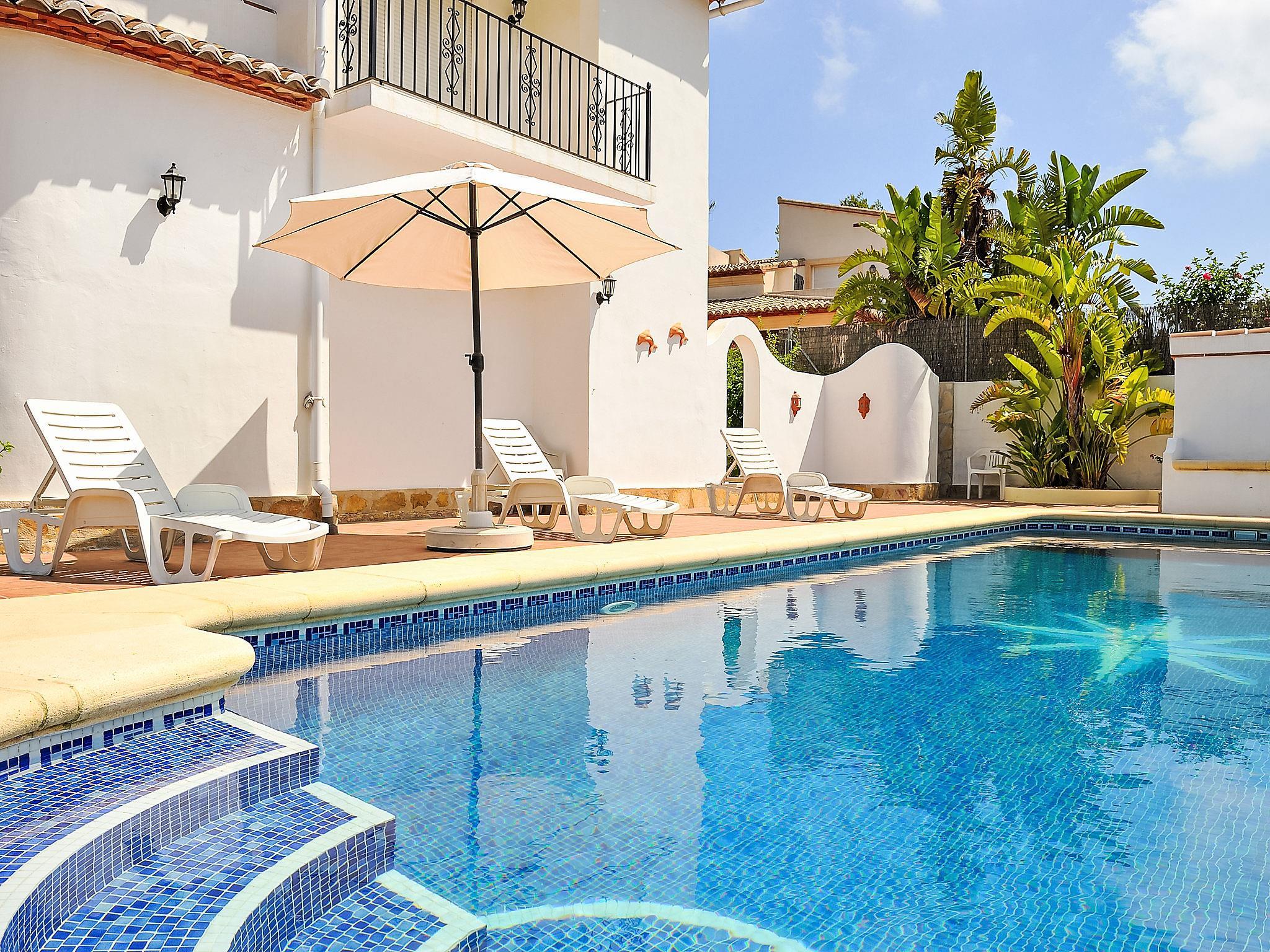 House "Reposo". In the district of Pinosol, 2.5 km from the sea. Private: garden 1'000 m2 (fenced) with wildlife garden and trees, swimming pool (4 x 9 m, seasonal availability: 01.Jan. - 31.Dec.) with internal staircase. Outdoor shower. In the house: central heating system. Shop 2.5 km, restaurant 600 m, bus stop "Mas y Mas carretera del Pla" 1.7 km, sandy beach "Arenal" 2.5 km. The owner does not accept any youth groups.