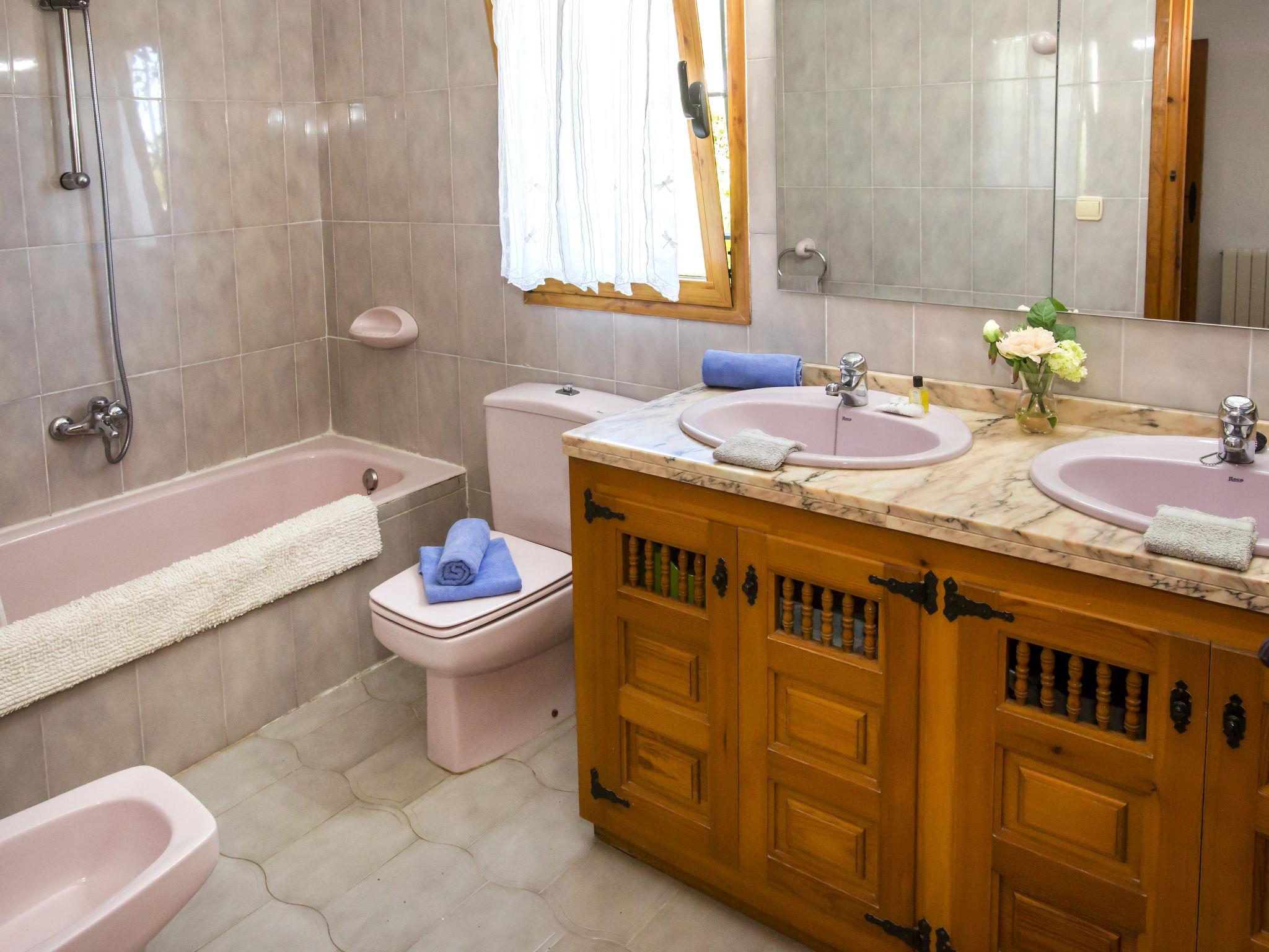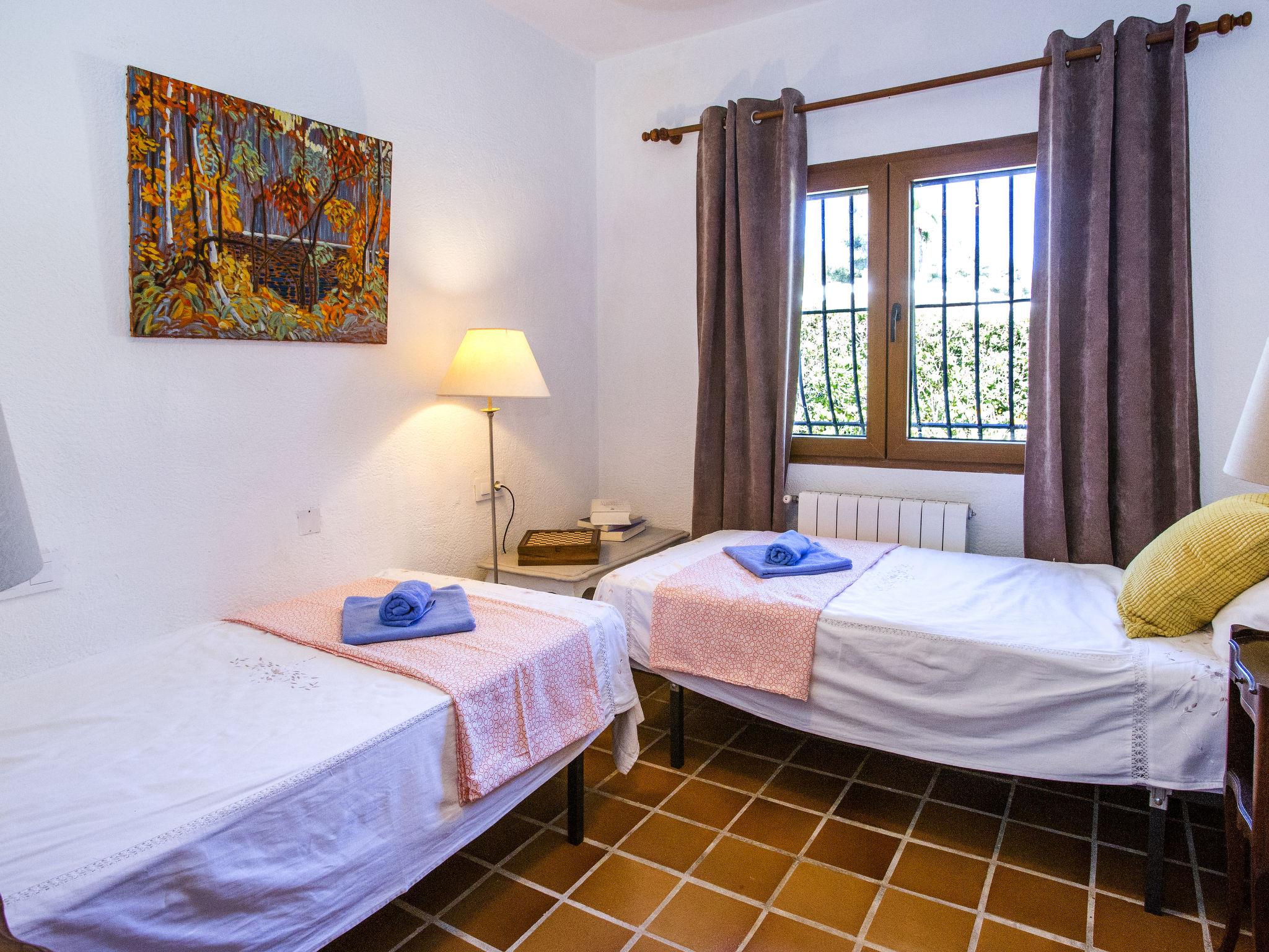 Very large, beautiful, comfortable house "Mirlo Canta". El Tosalet, in a quiet, sunny position, 3.5 km from the sea, 3.5 km from the beach. Private: with lawn and wildlife garden, natural garden, beautiful garden to relax, swimming pool (8 x 4 m, depth 80 - 210 cm, seasonal availability: 01.Jan. - 31.Dec.). Outdoor shower, patio, pergola, garden furniture, parking on the premises. Shop 1.8 km, supermarket 1.8 km, restaurant 1.8 km, bus stop "Toscamar" 1.8 km, sandy beach "El Arenal" 3.5 km, shingle beach "La Granadella" 6 km. Golf course (9 hole) 8 km, surf school 3.5 km, sailing school 3.5 km, tennis 3.5 km. The owner does not accept any youth groups.