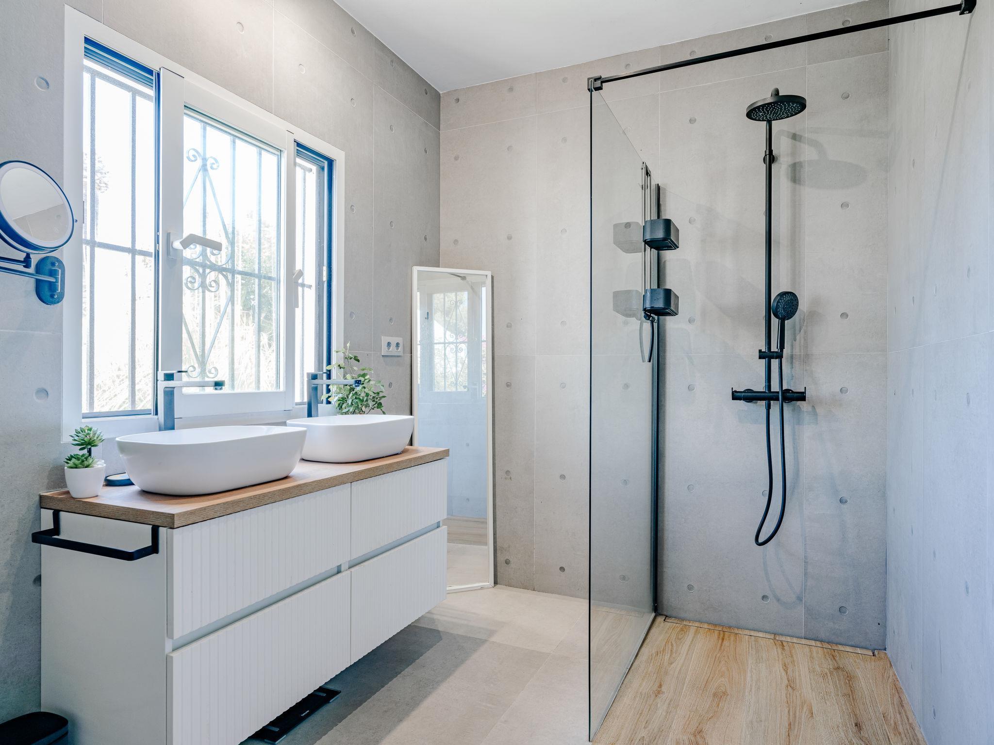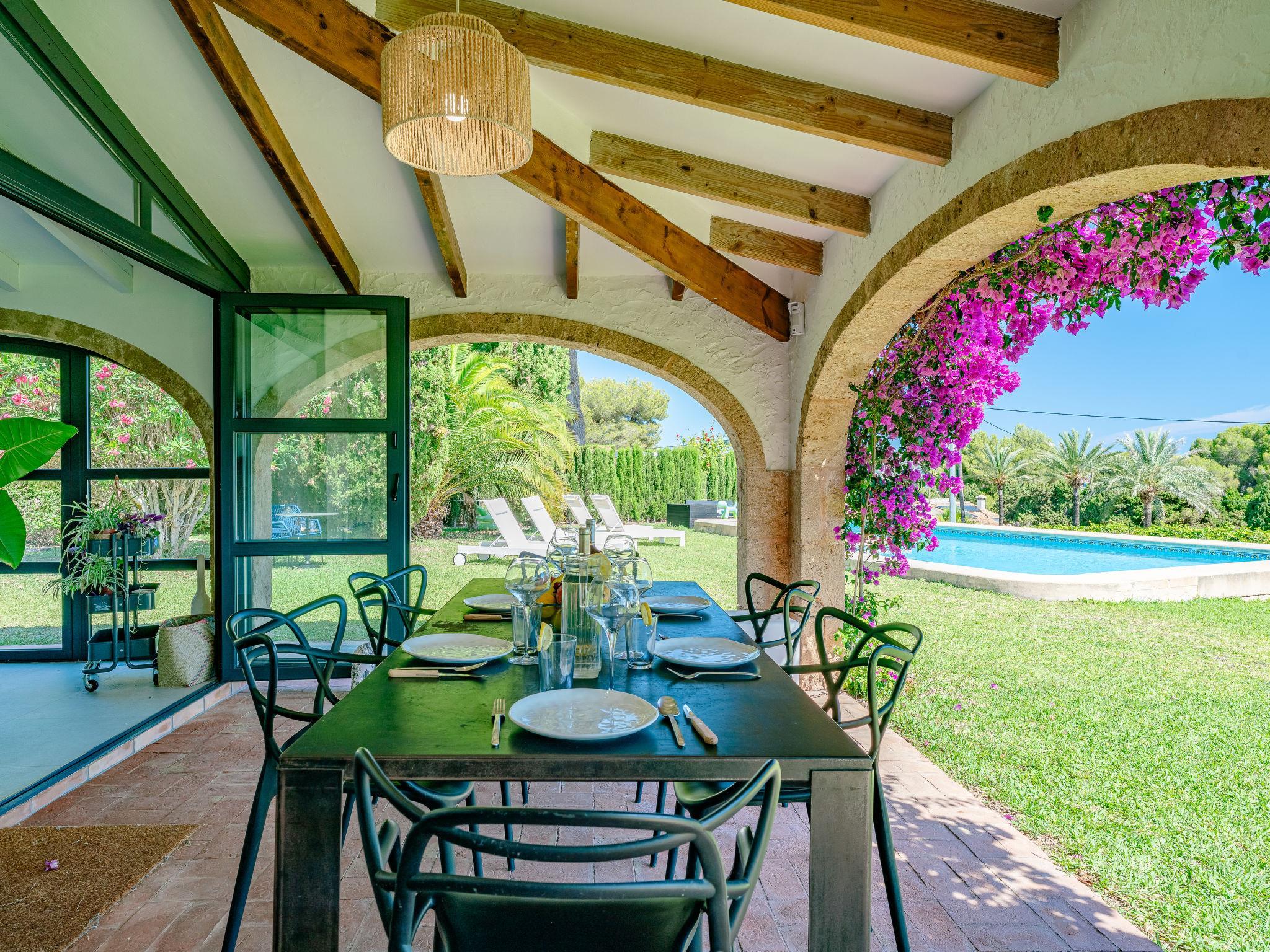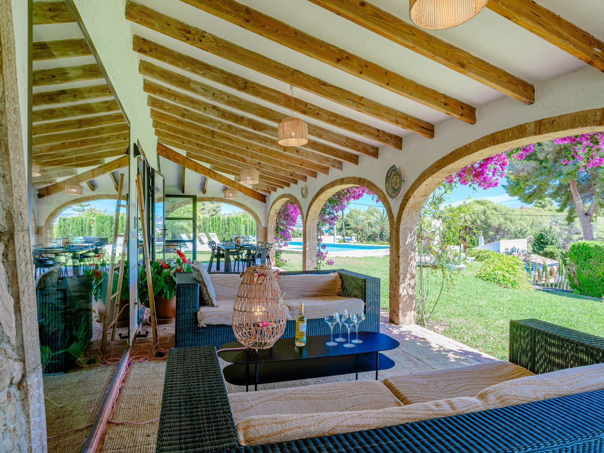 "Villa Javea Beauty", 6-room villa 220 m2. Spacious and bright, very comfortable and stylish furnishings: living/dining room with digital TV. Exit to the patio, to the swimming pool. Living room with digital TV. 1 room with 2 beds (90 cm, length 200 cm), shower/WC, double hand-basin and fan. Exit pergola, to the patio, to the swimming pool. 1 room with 1 french bed (140 cm, length 190 cm), shower/WC and fan. Large, open kitchen (oven, dishwasher, 3 induction hot plates, toaster, kettle, microwave, freezer, electric coffee machine). Shower/WC. No heating option. Upper floor: (exterior staircase), 1 room with 1 french bed (160 cm, length 190 cm), shower/WC and fan. 1 room with 2 beds (90 cm, length 200 cm), shower/WC and fan. Large terrace. Terrace furniture, deck chairs (4), covered balcony, sitting area. Marvellous view of the sea, the mountains and the valley. Facilities: washing machine, iron, children's high chair, baby cot, hair dryer. Internet (WiFi, free). Parking. Please note: non-smoking house. VT-512939-A // Reg. Nr.: ESFCTU00000307100096462000000000000000000VT-512939-A4