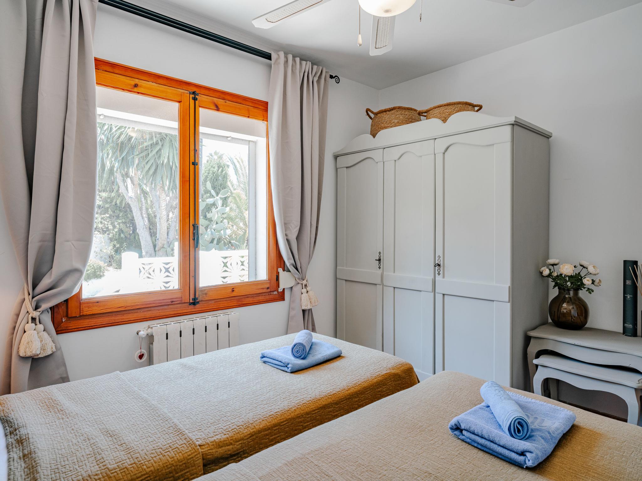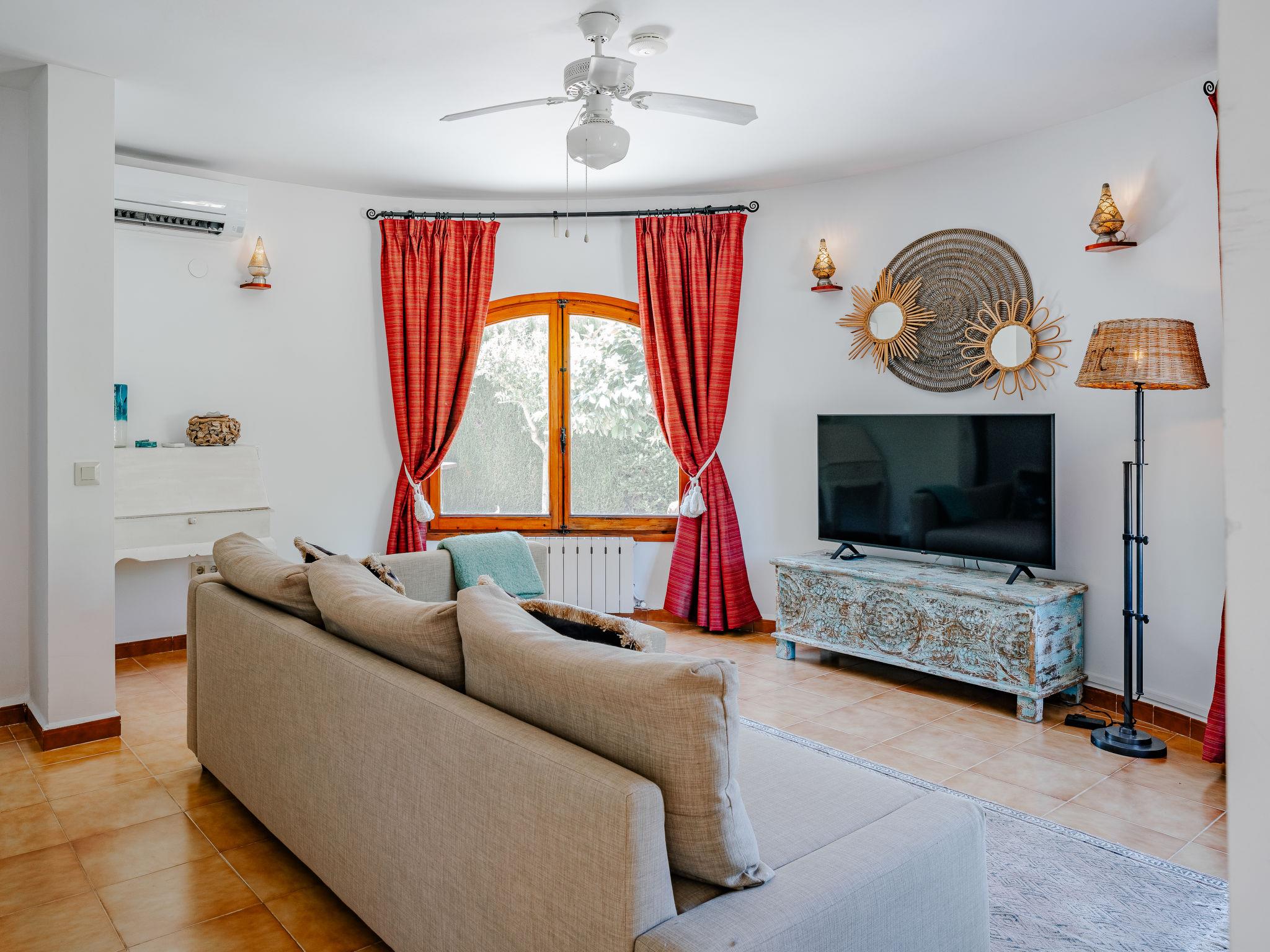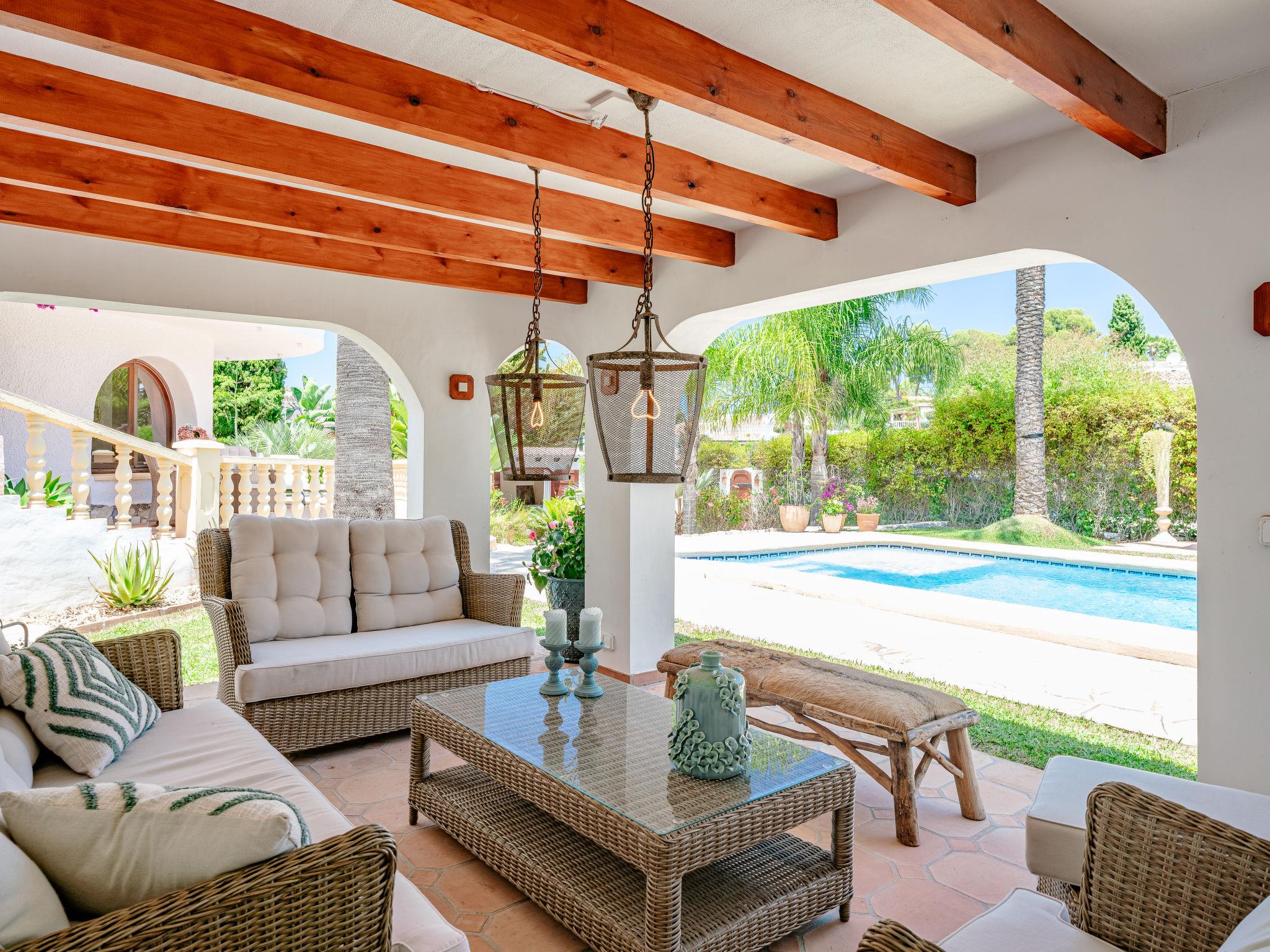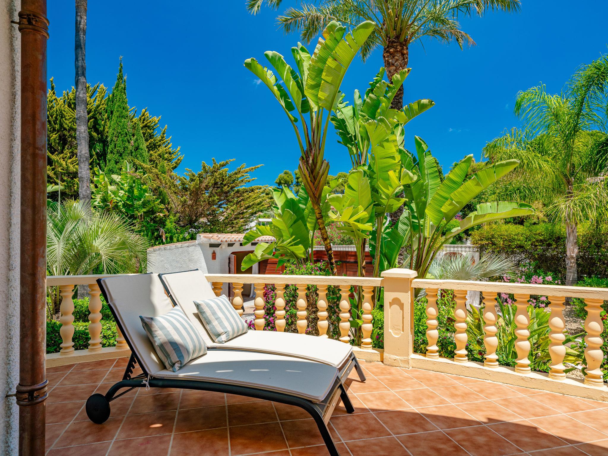Very beautiful, luxurious villa "Charme", 2 storeys, renovated. In the district of Entre Pinos, in a quiet, sunny position, 3 km from the sea, 3 km from the beach. Private: large, beautiful, well-kept terraced garden wildlife garden and trees, swimming pool angular (8 x 4 m, depth 110 - 200 cm, seasonal availability: 01.Jan. - 31.Dec.) with internal staircase. Outdoor shower, patio, pergola, garden furniture, barbecue, parking on the premises. Shop 1.5 km, supermarket 1.5 km, restaurant 1.5 km, bar 1.5 km, bus stop "Toscamar" 1.6 km, sandy beach "El Arenal" 3.5 km. Golf course (9 hole) 8 km, surf school 3.5 km, sailing school 3.5 km, tennis 3.5 km. The owner does not accept any youth groups.