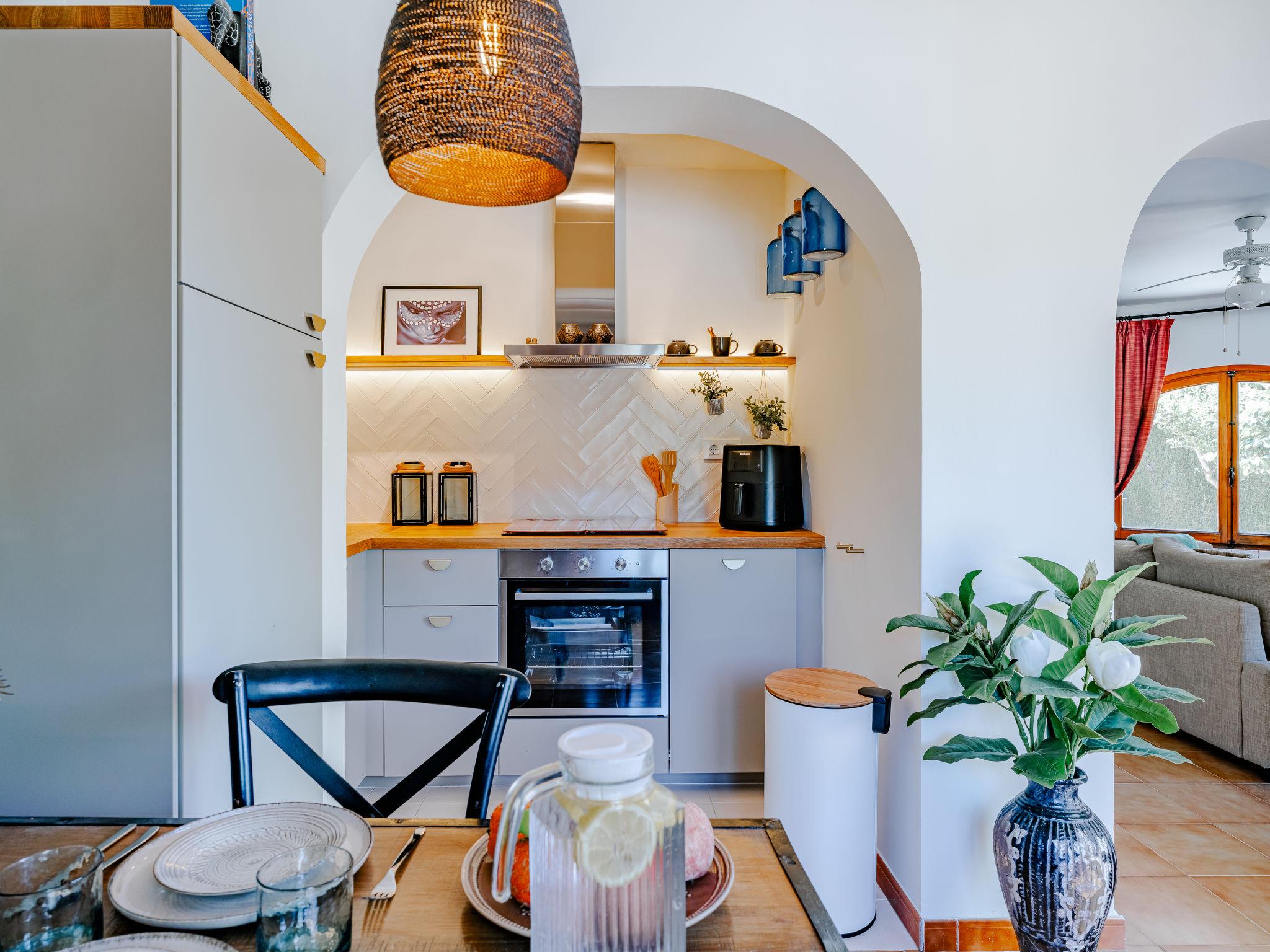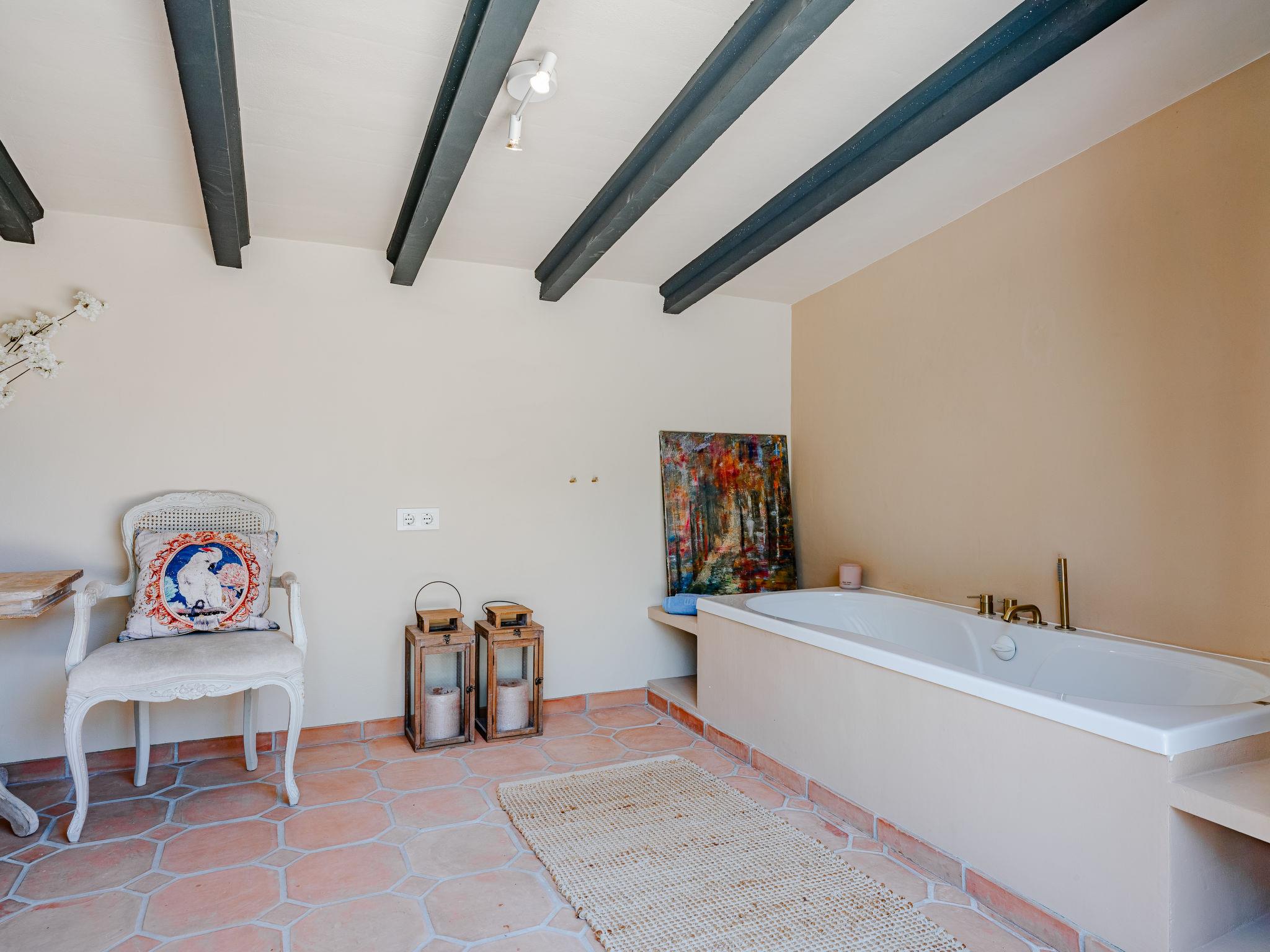 "Villa Charme", 7-room villa 300 m2 on 2 levels. Object suitable for 6 adults + 2 children. Spacious and bright, renovated, very beautiful and stylish furnishings: living/dining room with satellite TV, air conditioning and forced-air heating. Exit to the terrace. 1 room with 1 french bed (180 cm, length 210 cm), shower/WC, air conditioning and forced-air heating. Exit to the terrace. 1 room with 1 double bed (2 x 80 cm, length 200 cm), air conditioning and forced-air heating. 1 room with 1 x 2 bunk beds (80 cm, length 200 cm), fan. Exit to the terrace. Large, open kitchen (oven, dishwasher, 4 induction hot plates, toaster, kettle, microwave, freezer, electric coffee machine). Shower/WC. On the lower ground floor: (exterior staircase) living/dining room with satellite TV, air conditioning and forced-air heating. Exit to the patio, to the swimming pool. 1 room with 1 french bed (160 cm, length 200 cm), shower/WC, air conditioning and forced-air heating. (exterior staircase) lounge with hydro massage bath. Open kitchen (oven, 3 ceramic glass hob hotplates, toaster, freezer, electric coffee machine). Large terrace. Terrace furniture, balcony furniture, barbecue, deck chairs (6), covered balcony, sitting area. Very beautiful view of the mountains and the valley. Facilities: washing machine, dryer, iron, children's high chair, baby cot for up to 2 year olds, hair dryer. Internet (WiFi, free). Parking. 2 small pets/ dogs allowed. VT-467072-A // Reg. Nr.: ESFCTU0000030710003633240000000000000000000VT467072A1
