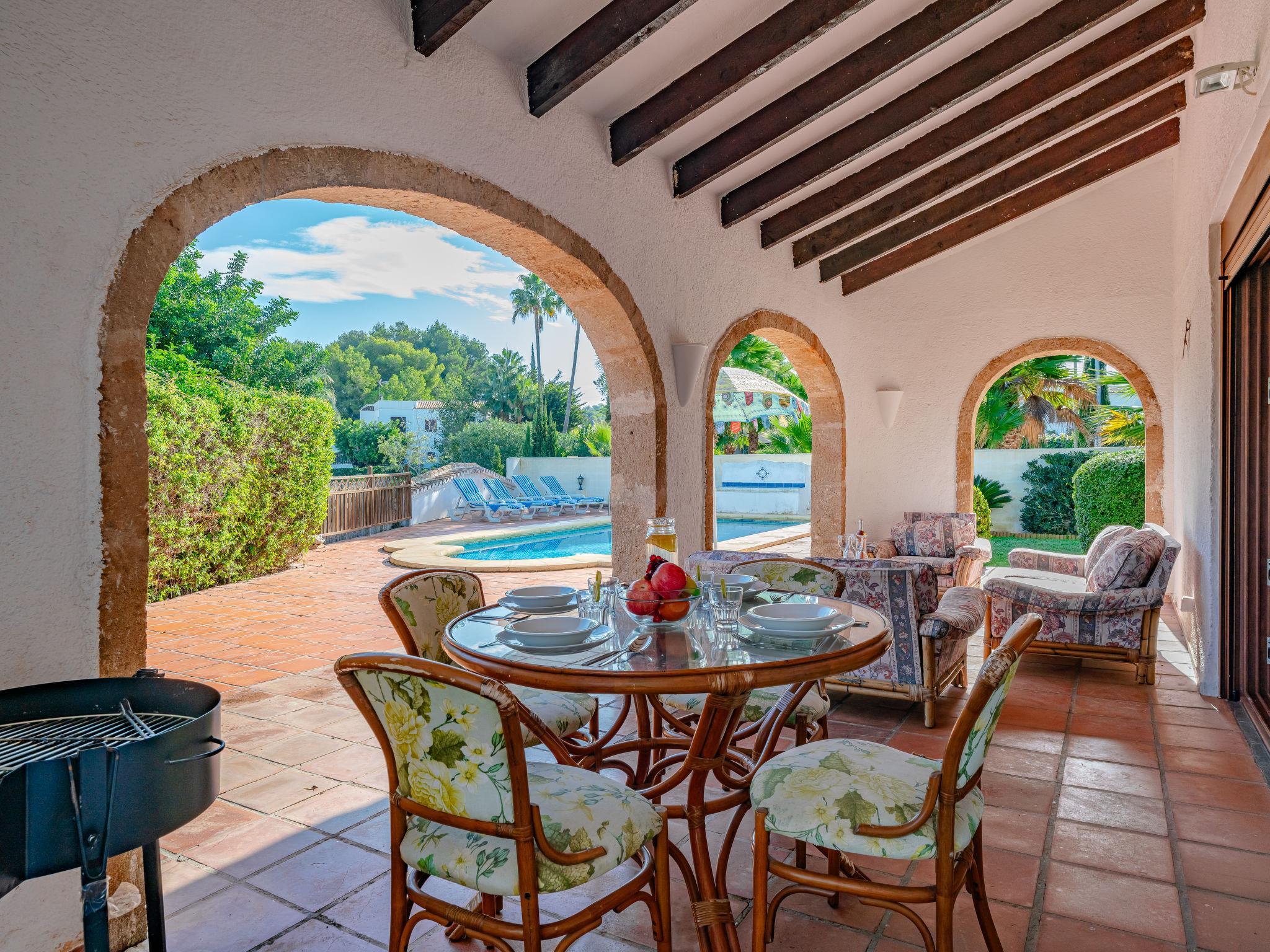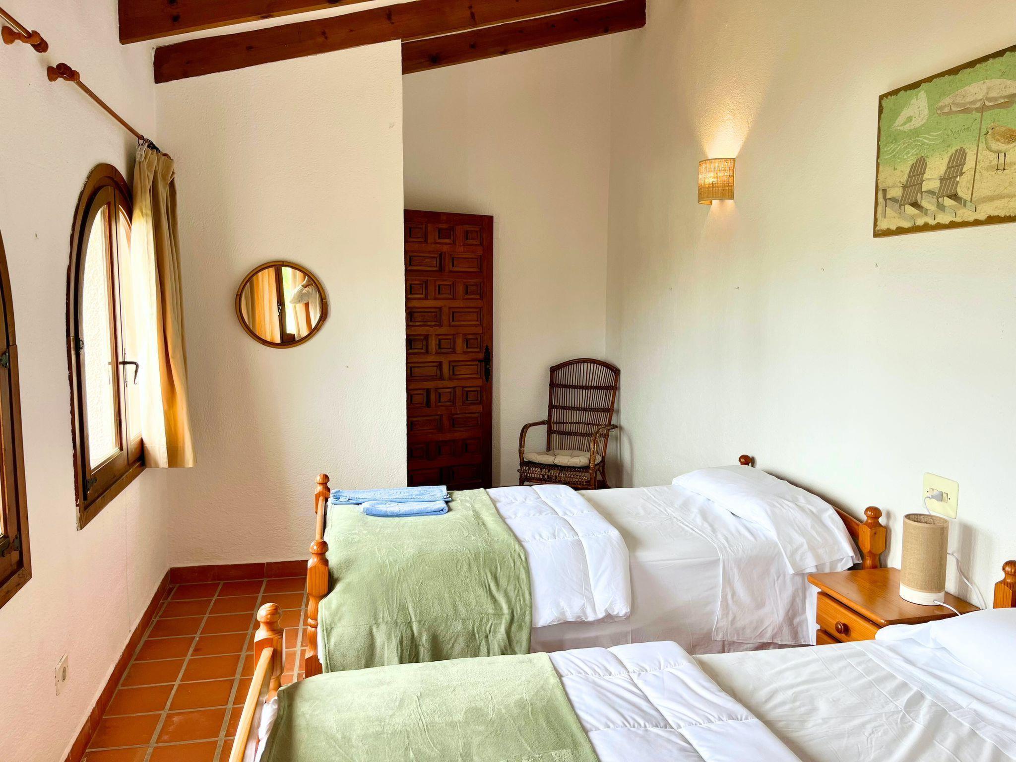 Old, cosy house "Bea", 2 storeys. In the district of Adsubia, in a quiet, sunny position, 1.8 km from the sea, 1.8 km from the beach, located by a road, on a main road. Private: large, beautiful, well-kept garden with lawn and trees, swimming pool angular (8 x 4 m, depth 40 - 210 cm, seasonal availability: 01.Jan. - 31.Dec.) with internal staircase. Outdoor shower, garden furniture, barbecue, roofed, parking on the premises. Shop 1.1 km, supermarket 400 m, bar 1.4 km, café 1.4 km, bus stop 2 km, sandy beach "El Arenal" 1.8 km, rocky beach "Cala Blanca" 2.3 km. Sports harbour 2.2 km, surf school 2.2 km, sailing school 2.2 km, tennis 2.2 km. The owner does not accept any youth groups. Please note: animals in the neighbourhood.