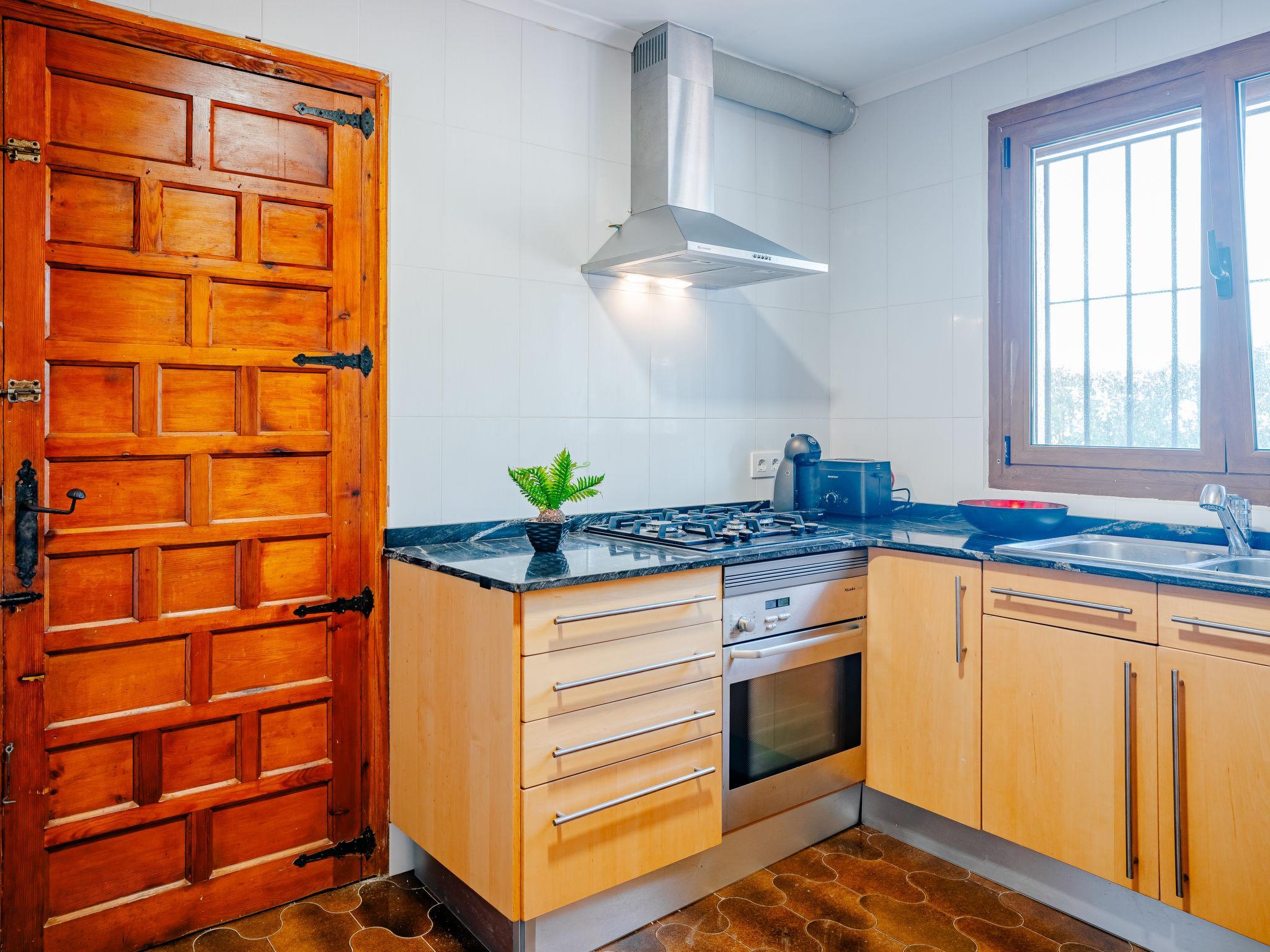 "Casa Bea", 4-room house 120 m2 on 2 levels. Spacious and bright, practical furnishings: living/dining room with digital TV and fan. Exit to the patio, to the swimming pool. 1 room with 1 french bed (140 cm, length 200 cm), fan. 1 room with 2 beds (90 cm, length 200 cm), fan. Kitchen (4 hot plates, oven, dishwasher, toaster, microwave, freezer, electric coffee machine). Bath/WC, shower/WC. No heating option. Upper floor: (spiral staircase), 1 room with 2 beds (90 cm, length 200 cm). Large terrace. Terrace furniture, barbecue, deck chairs (6). Facilities: washing machine, iron, hair dryer. Internet (WiFi, free). Parking. VT-487399-A // Reg. Nr.: ESFCTU00000307100019040100000000000000000VT-487399-A9
