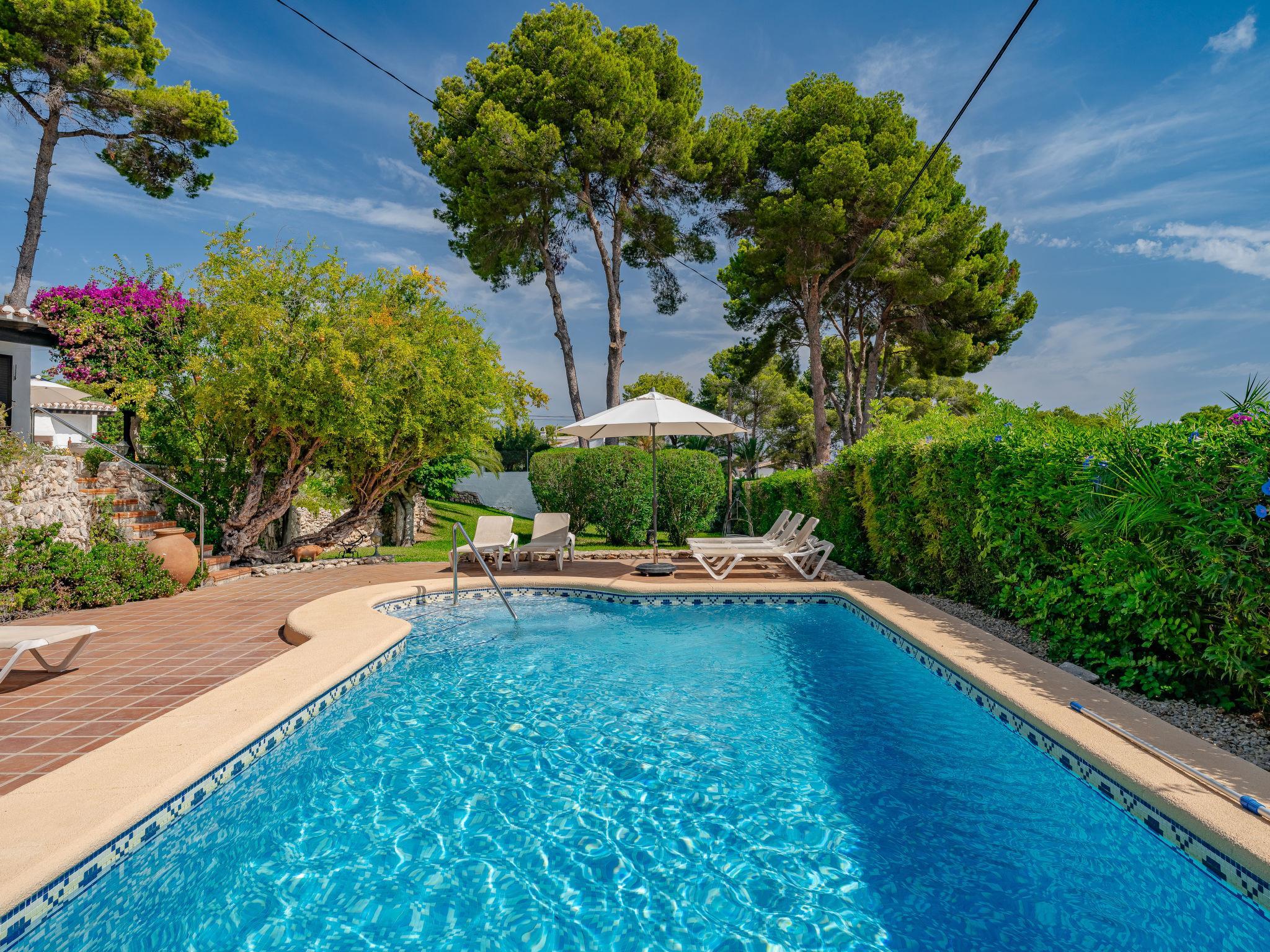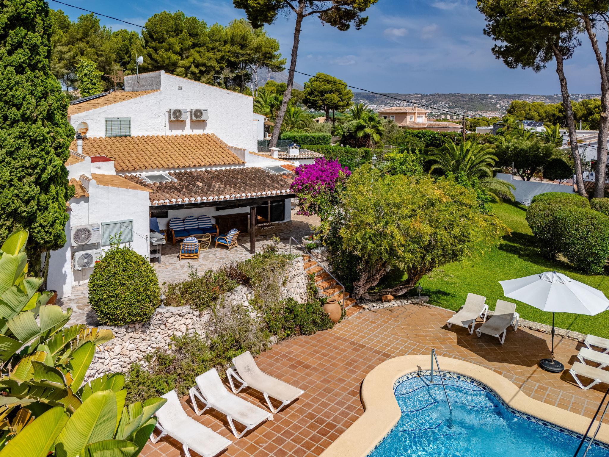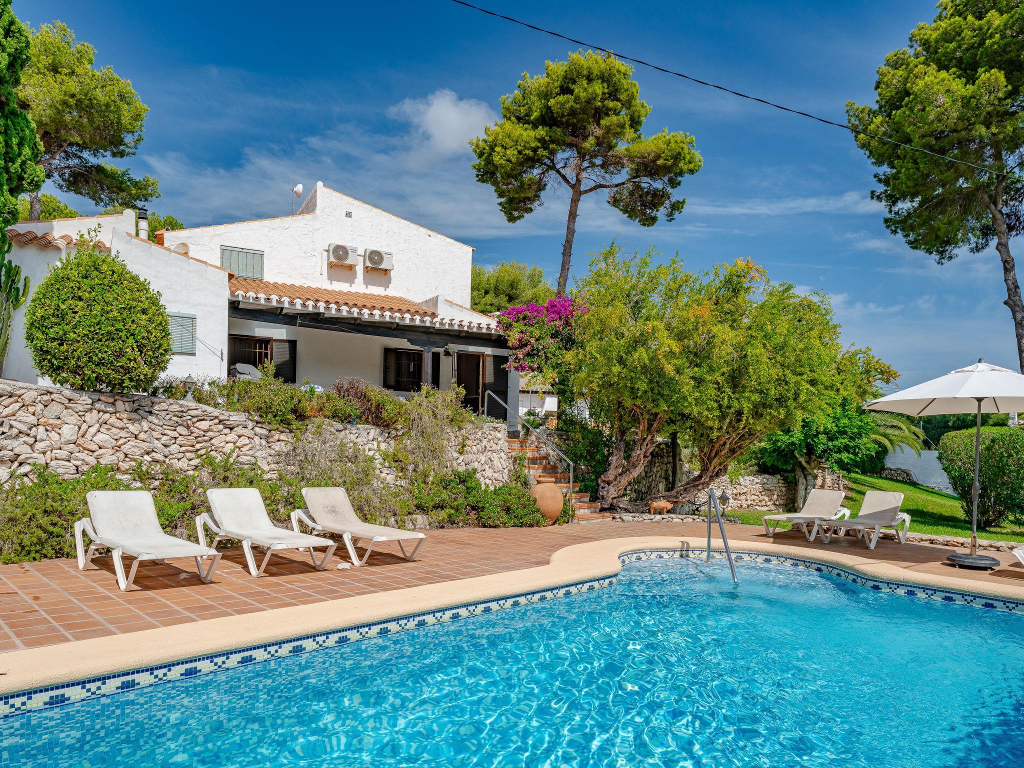 Very large, very beautiful house "Flor de la Neu". In the district of El Tosalet, in the resort 2.1 km from the centre of Arenla Playa Javea, in a quiet, sunny position, 1.9 km from the sea, 1.9 km from the beach. Private: large, beautiful, well-kept terraced garden with lawn and trees, swimming pool angular (8 x 4 m, depth 40 - 170 cm, seasonal availability: 01.Jan. - 31.Dec.) with internal staircase. Outdoor shower, pergola, garden furniture, barbecue, parking on the premises. Supermarket 1 km, restaurant 1.3 km, café 1.3 km, bus stop 1.6 km, sandy beach "El Arenal" 2.1 km, rocky beach "Cala Blanca" 1.9 km. Sports harbour 2.5 km, surf school 2.5 km, tennis 2.2 km. The owner does not accept any youth groups.