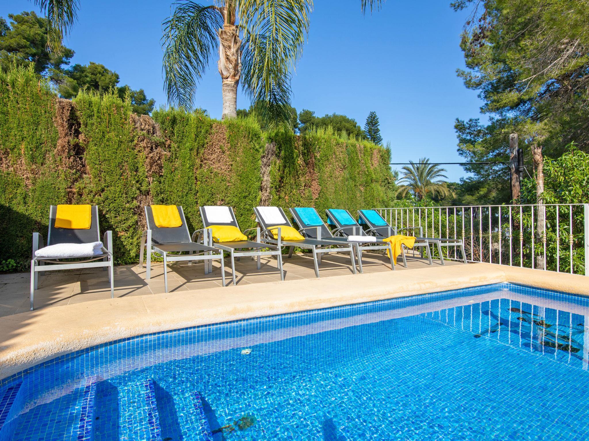 Beautiful villa "Eucaliptus", built in 2001. In the district of Tosalet, 3.8 km from the sea. Private: garden 780 m2 (fenced) with wildlife garden and flowers, swimming pool (4 x 8 m, seasonal availability: 01.Jan. - 31.Dec.) with internal staircase. Outdoor shower. In the house: air conditioning. Stepped path to the house. Public parking on the road. Shop 3.8 km, supermarket 2 km, bus stop 4 km, sandy beach "Arenal" 3.8 km. The owner does not accept any youth groups. Neighbourhood highly sensitive to noise. Quietness and good behaviour expected.