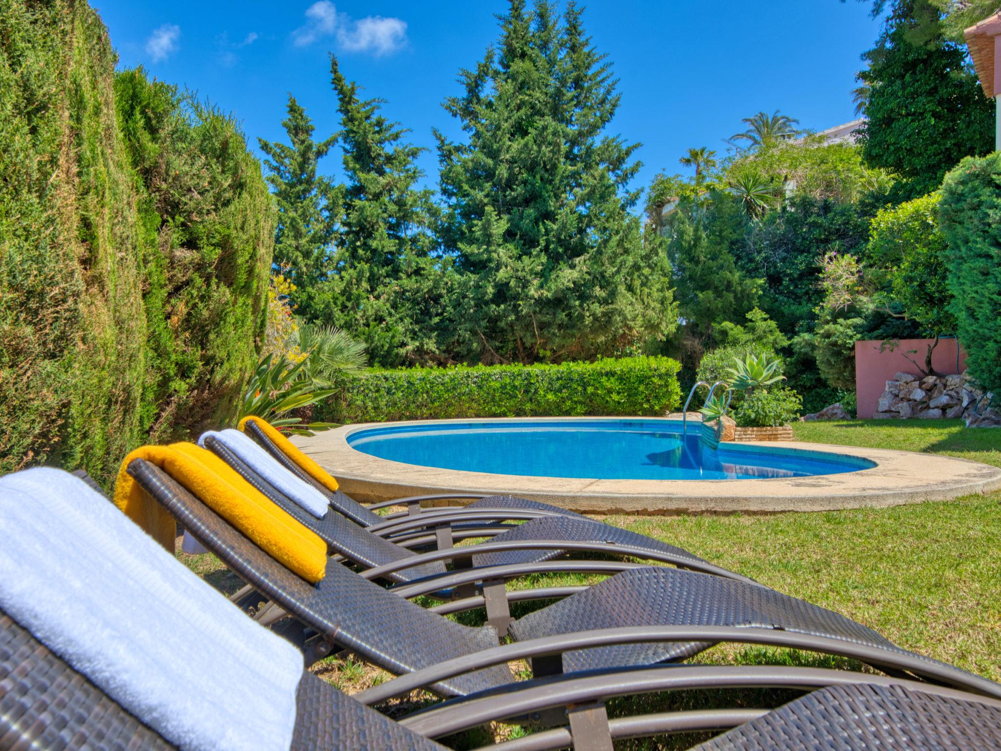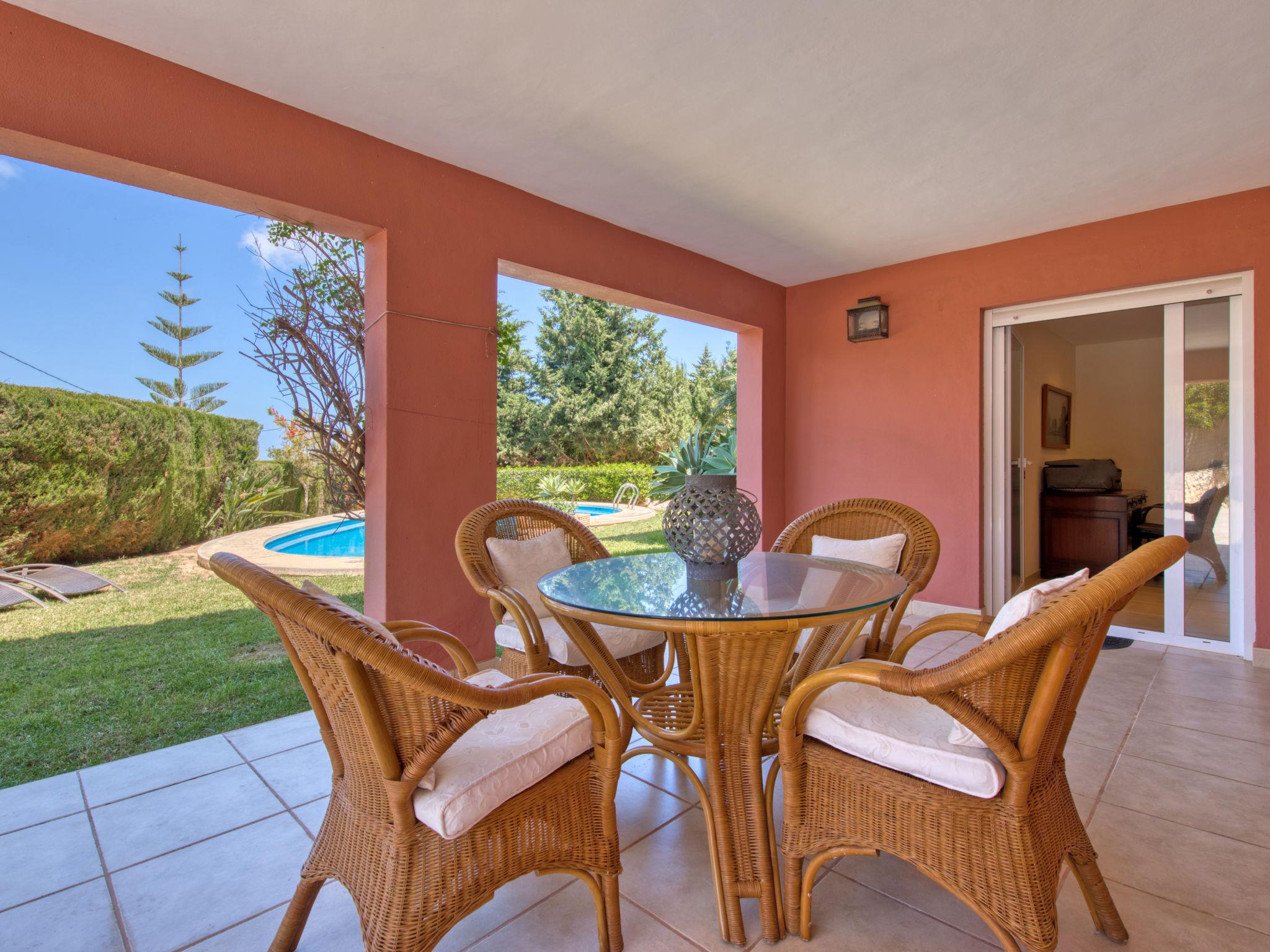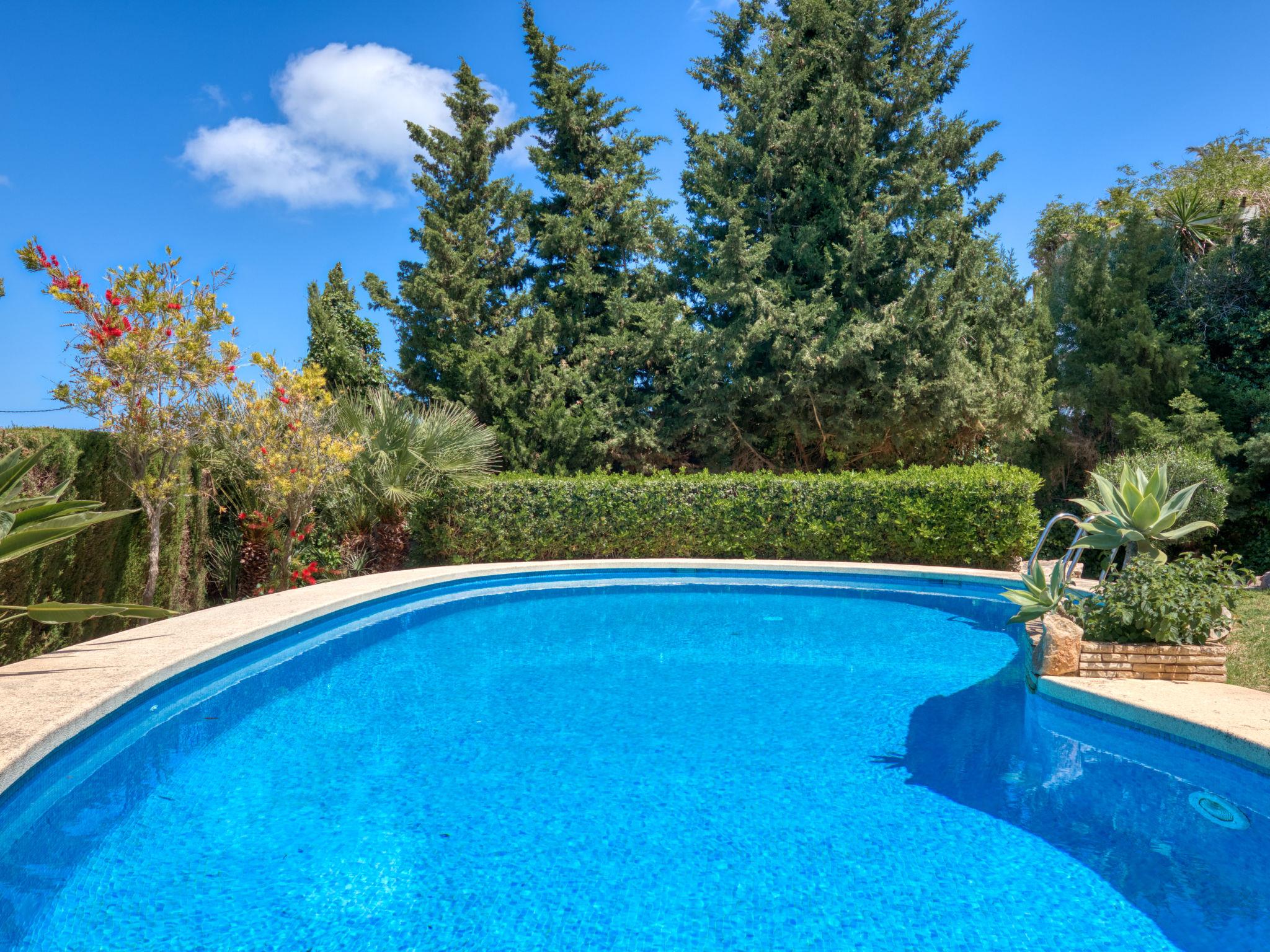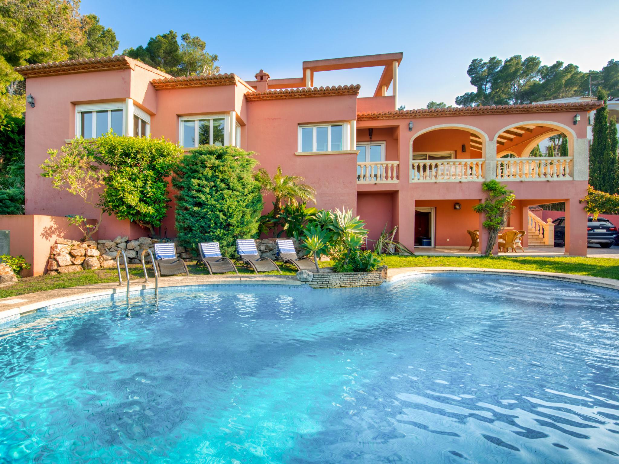Large, very beautiful villa "Chill Out on the Sea". In the district of Cap Marti, in the resort Jávea, in a quiet, sunny position, 2 km from the sea. Private: garden 1'000 m2 (fenced) with lawn and trees, swimming pool (11 x 5 m, depth 120 - 180 cm, seasonal availability: 01.Jan. - 31.Dec.). Garden furniture, parking (for 2 cars) on the premises. Supermarket 1.8 km, restaurant 1.5 km, bakery 1.5 km, café 1.4 km, bus stop 2 km, sandy beach "El Arenal" 2 km, shingle beach "La Granadella" 6 km. Sports harbour 3.5 km, marina 2 km, golf course (9 hole) 5 km, sailing school 2 km, tennis 2.1 km. Please note: car recommended. The owner does not accept any youth groups.
