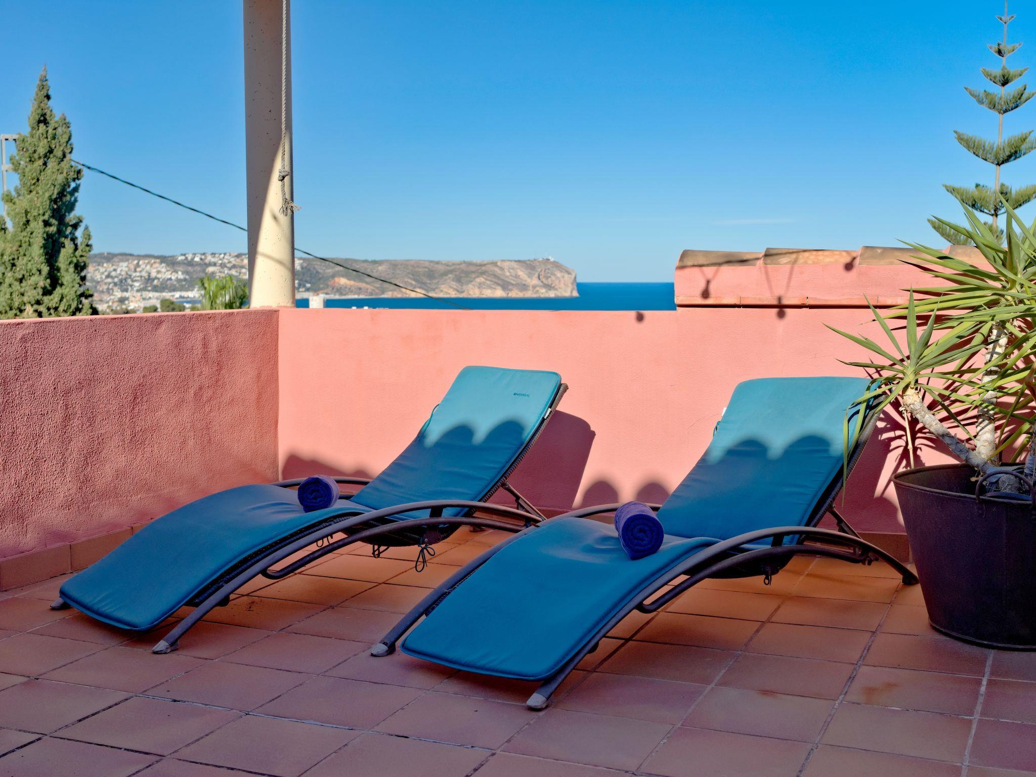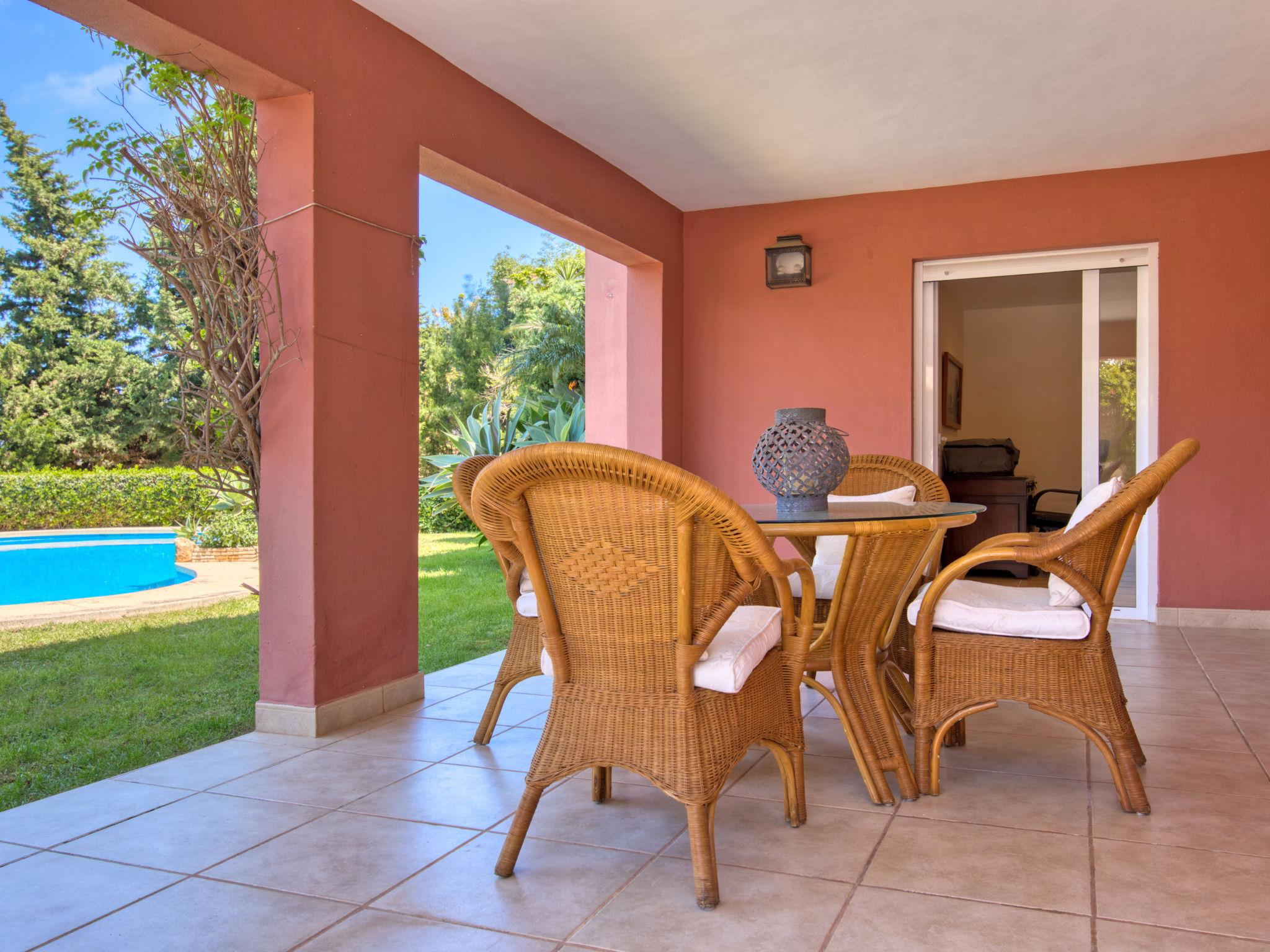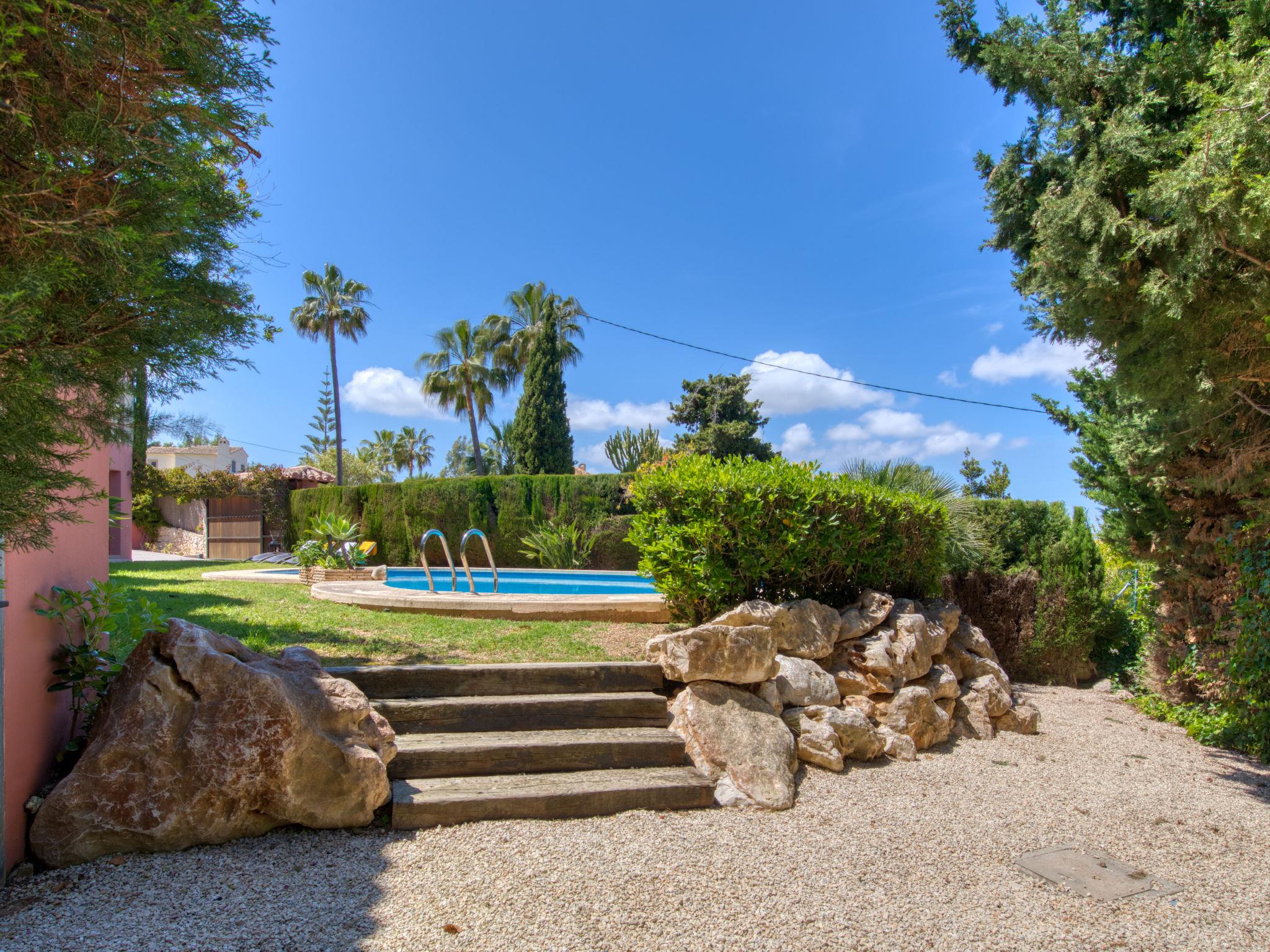 Large, very beautiful villa "Chill Out on the Sea". In the district of Cap Marti, in the resort Jávea, in a quiet, sunny position, 2 km from the sea. Private: garden 1'000 m2 (fenced) with lawn and trees, swimming pool (11 x 5 m, depth 120 - 180 cm, seasonal availability: 01.Jan. - 31.Dec.). Garden furniture, parking (for 2 cars) on the premises. Supermarket 1.8 km, restaurant 1.5 km, bakery 1.5 km, café 1.4 km, bus stop 2 km, sandy beach "El Arenal" 2 km, shingle beach "La Granadella" 6 km. Sports harbour 3.5 km, marina 2 km, golf course (9 hole) 5 km, sailing school 2 km, tennis 2.1 km. Please note: car recommended. The owner does not accept any youth groups.