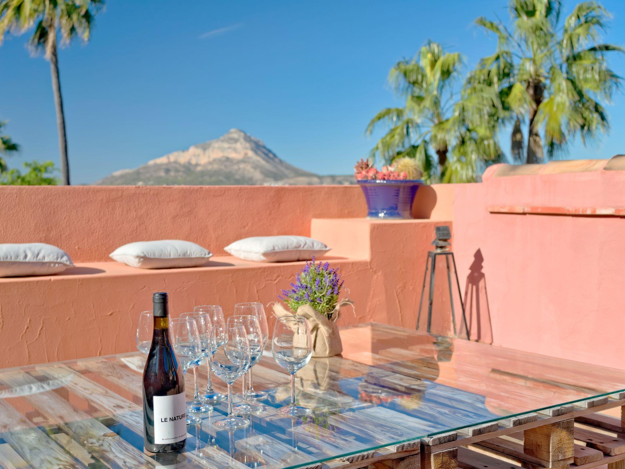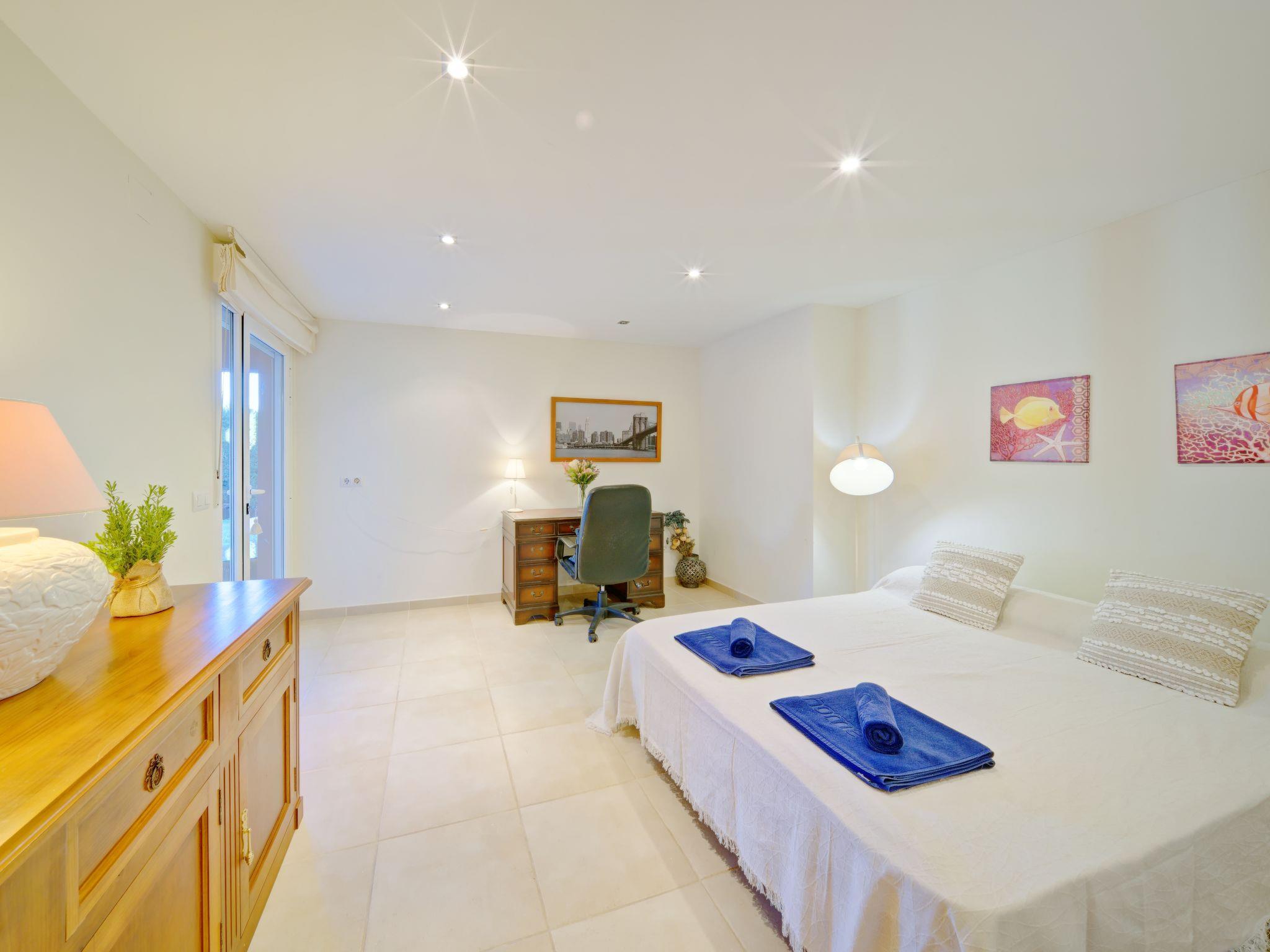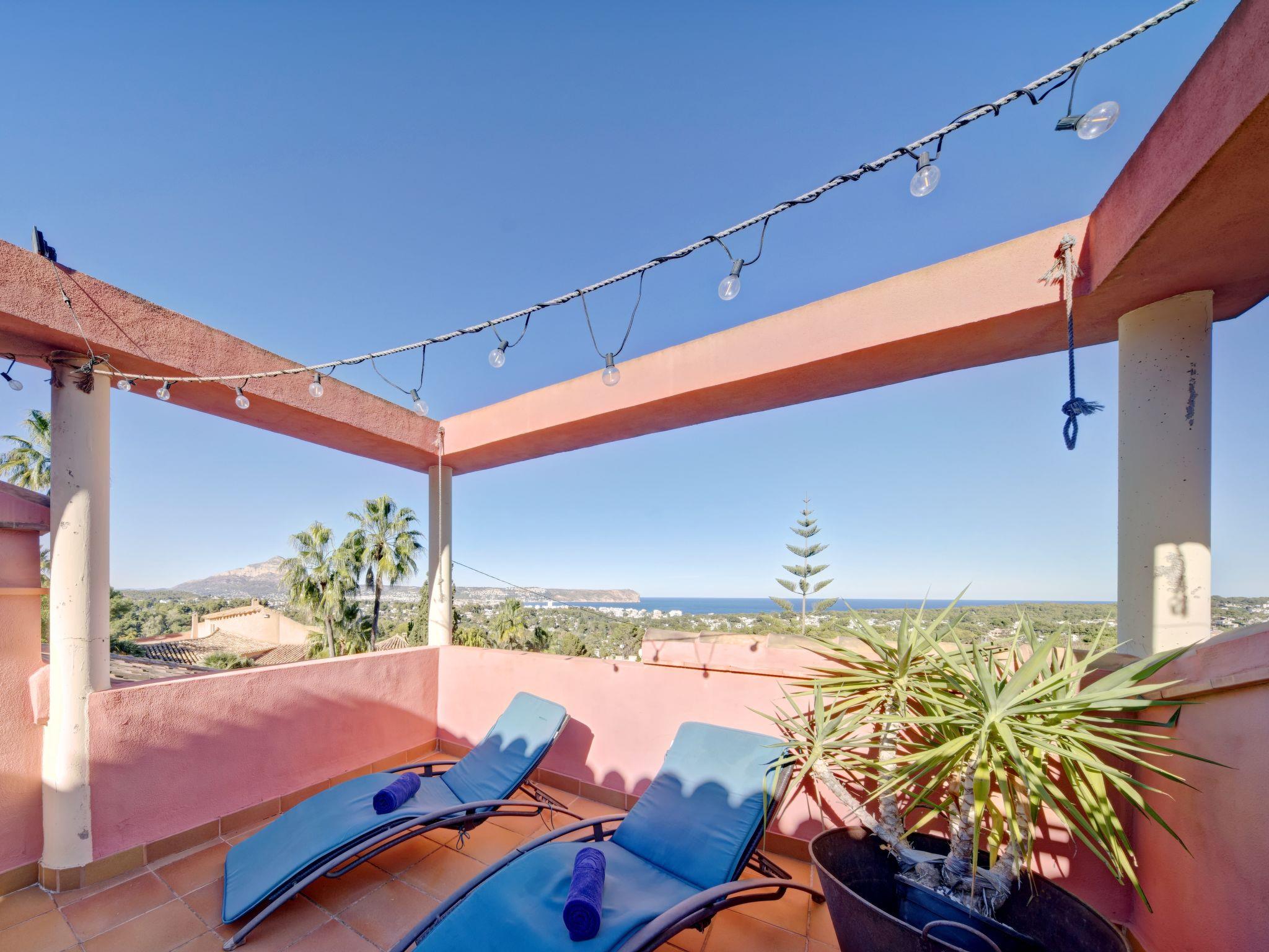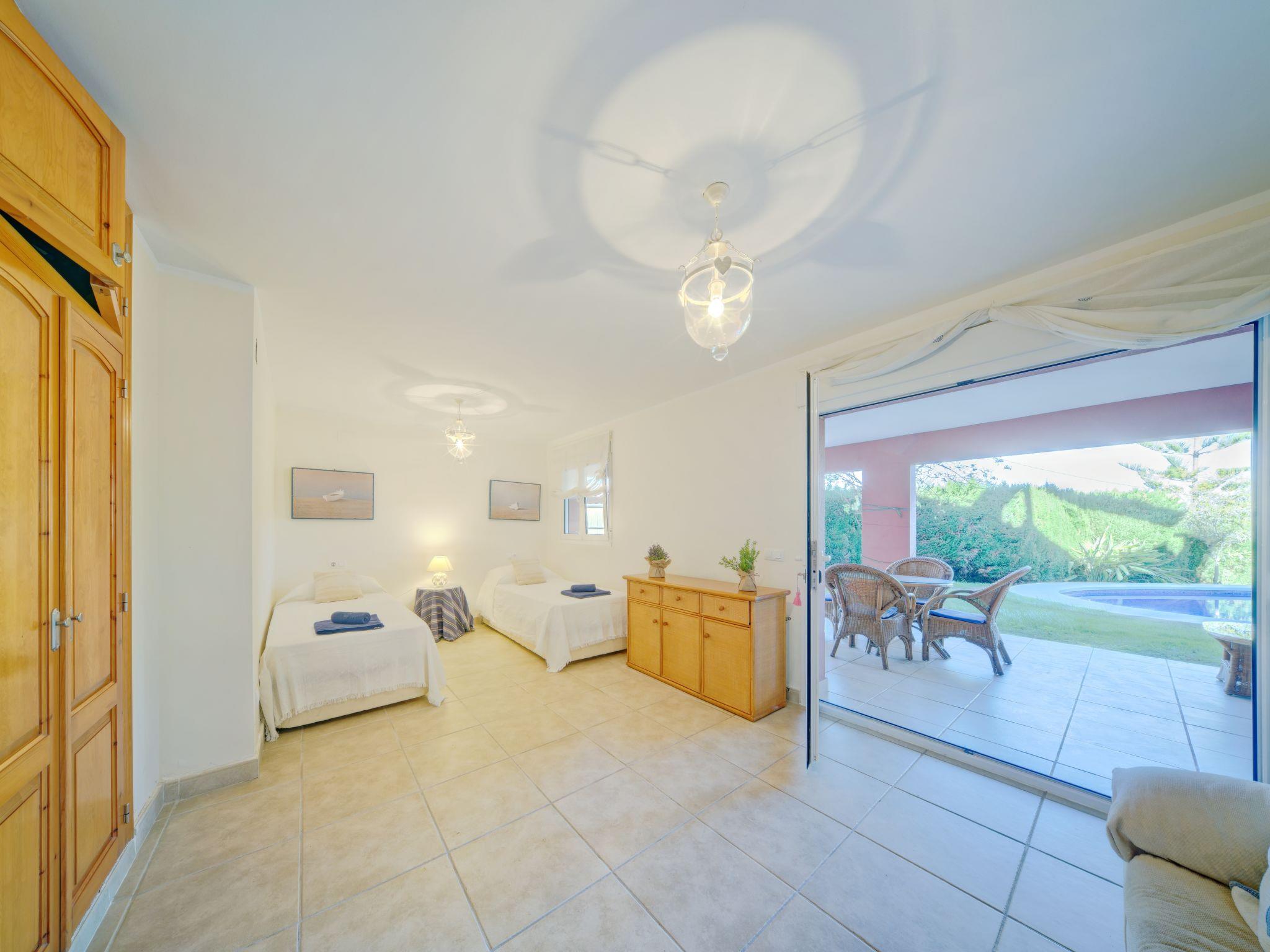 Large, very beautiful villa "Chill Out on the Sea". In the district of Cap Marti, in the resort Jávea, in a quiet, sunny position, 2 km from the sea. Private: garden 1'000 m2 (fenced) with lawn and trees, swimming pool (11 x 5 m, depth 120 - 180 cm, seasonal availability: 01.Jan. - 31.Dec.). Garden furniture, parking (for 2 cars) on the premises. Supermarket 1.8 km, restaurant 1.5 km, bakery 1.5 km, café 1.4 km, bus stop 2 km, sandy beach "El Arenal" 2 km, shingle beach "La Granadella" 6 km. Sports harbour 3.5 km, marina 2 km, golf course (9 hole) 5 km, sailing school 2 km, tennis 2.1 km. Please note: car recommended. The owner does not accept any youth groups.