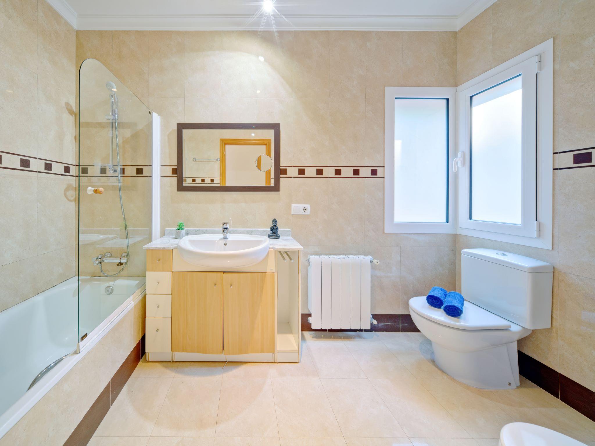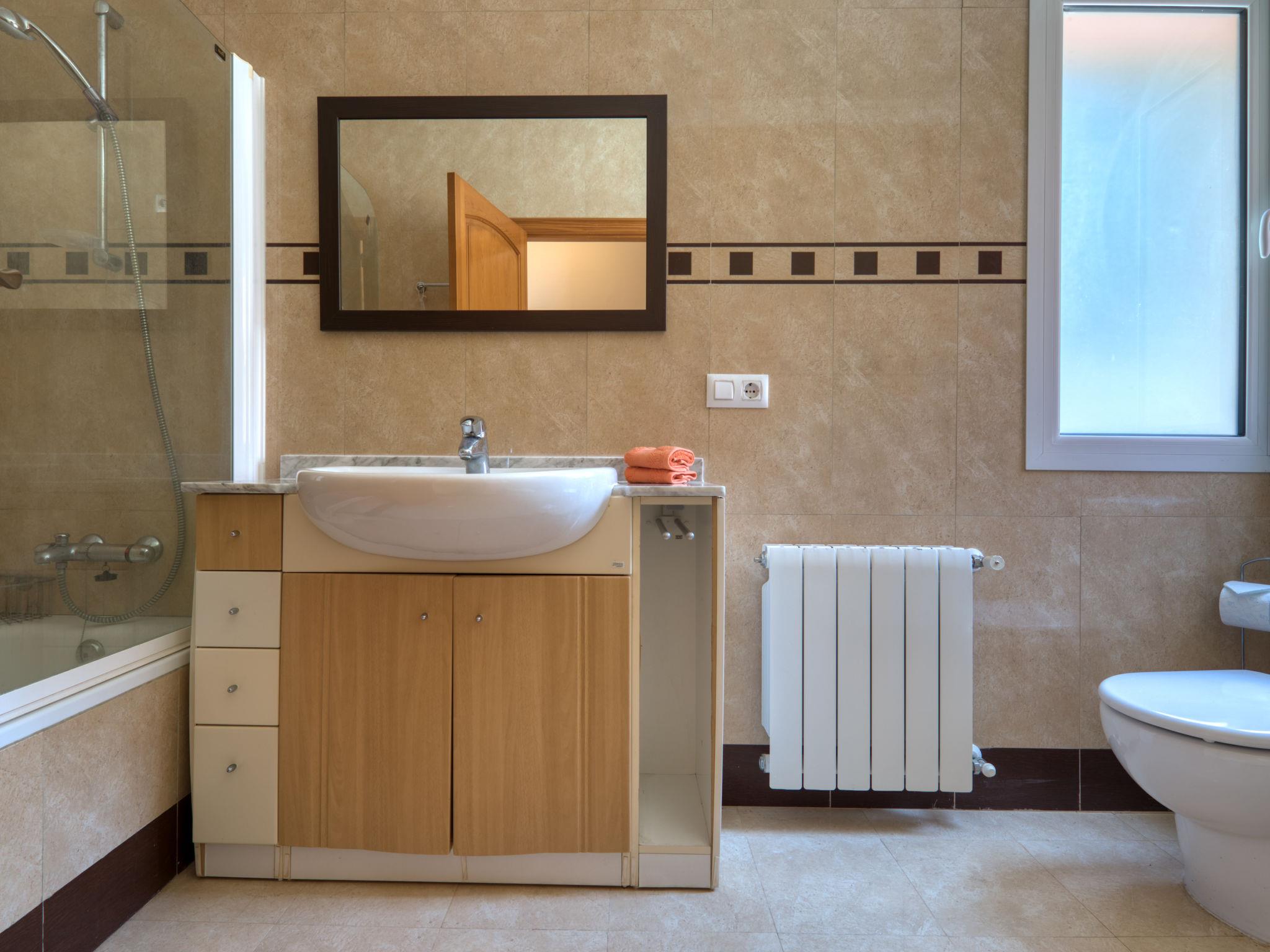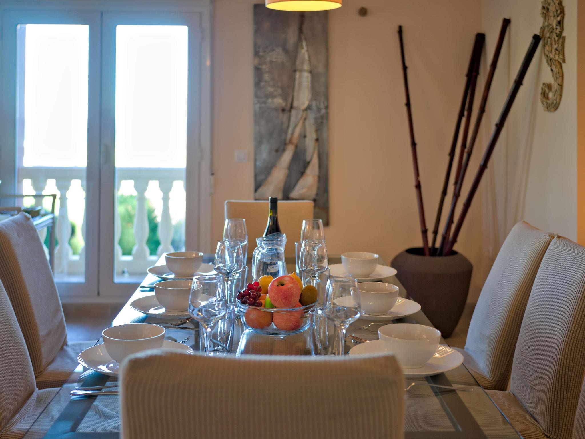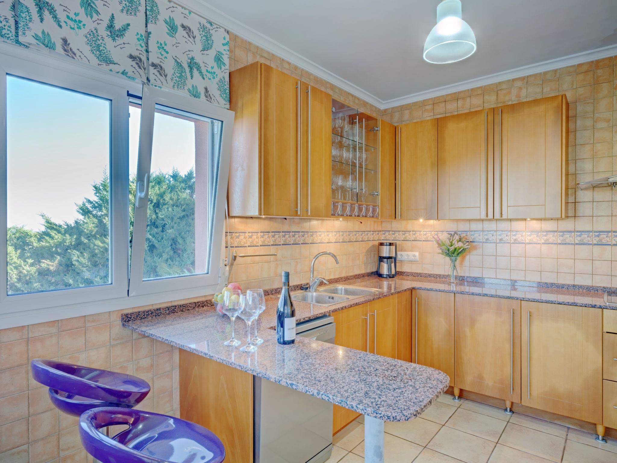 5-room villa 280 m2. Spacious and bright, comfortable and beautiful furnishings: living/dining room with open-hearth fireplace, digital TV and fan. Exit to the terrace. 1 room with 1 french bed (150 cm, length 190 cm), bath/bidet/WC and air conditioning. 1 room with 2 beds (90 cm, length 180 cm), air conditioning. Kitchen (oven, dishwasher, 4 ceramic glass hob hotplates, microwave, freezer, electric coffee machine). Exit to the terrace. Shower/WC. On the lower ground floor: 1 room with 1 french bed (140 cm, length 180 cm), air conditioning. Exit to the terrace, to the swimming pool. 1 room with 2 beds (90 cm, length 180 cm), air conditioning. Exit to the terrace, to the swimming pool. Shower/WC. Terrace furniture, barbecue, deck chairs (8). Very beautiful view of the sea, the countryside and the bay. Facilities: washing machine, iron, children's high chair, baby cot, hair dryer. Internet (WiFi, free). Parking (fenced 2 cars) at the house. Suitable for families. AT-468481-A // Reg. Nr.: ESFCTU00000307100024292600000000000000000AT-468481-A9