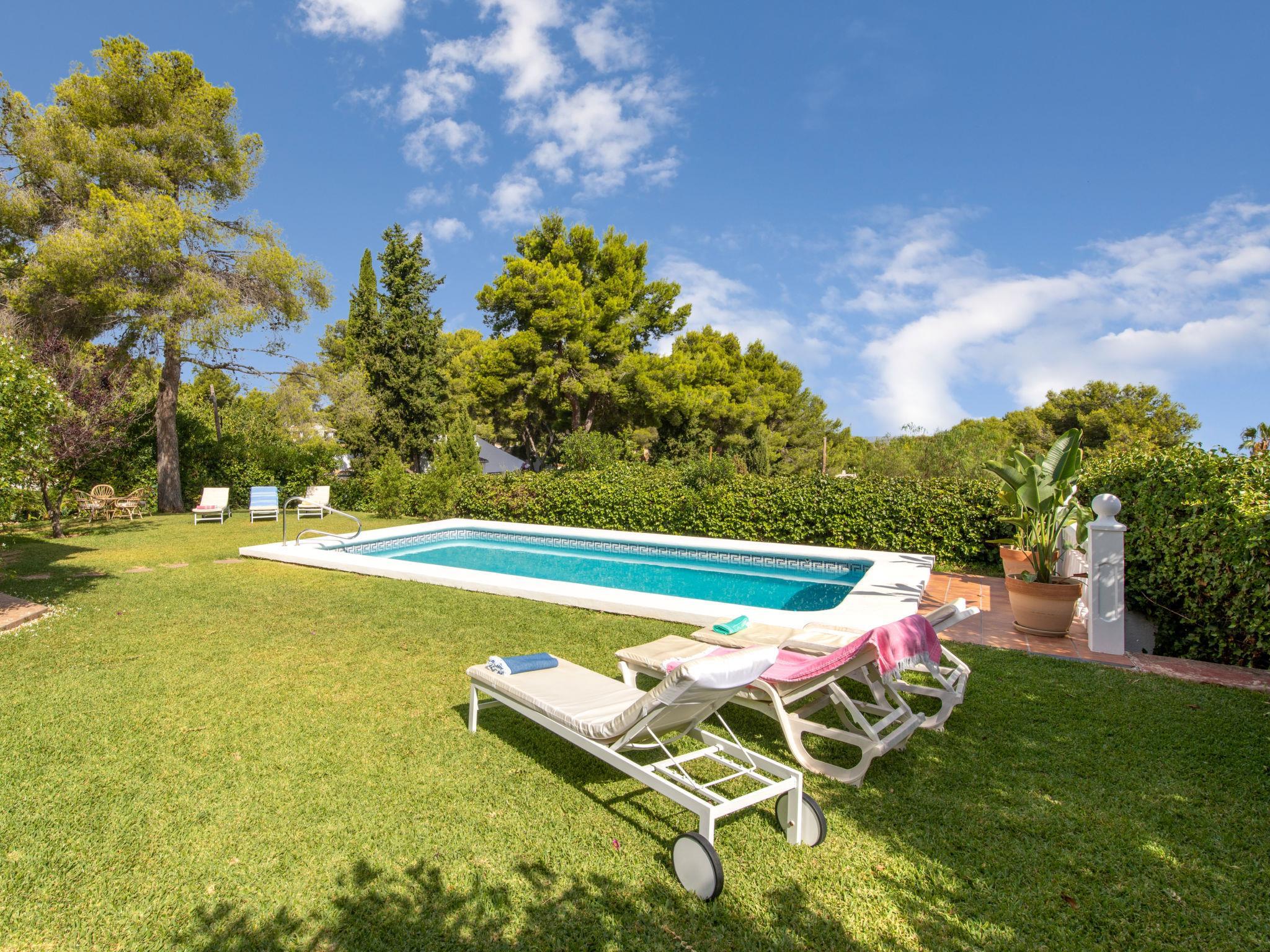 Very large, very beautiful, very comfortable villa "Louise", 2 storeys. In a quiet, sunny position, 3.5 km from the sea, 3.5 km from the beach. Private: large, beautiful, well-kept garden with wildlife garden and trees, swimming pool (10 x 5 m, depth 110 - 210 cm, seasonal availability: 01.Jan. - 31.Dec.) with internal staircase. Outdoor shower, pergola (30 m2), terrace, garden furniture. In the house: central heating system. Roofed, parking on the premises. Shop 1.8 km, supermarket 1.8 km, restaurant 1.8 km, bus stop 3.5 km, sandy beach "El Arenal" 3.5 km, shingle beach "La Granadella" 6 km. Golf course (9 hole) 8 km, surf school 3.5 km, sailing school 3.5 km, tennis 3.5 km. Please note: car recommended. Suitable for families. The owner does not accept any youth groups.