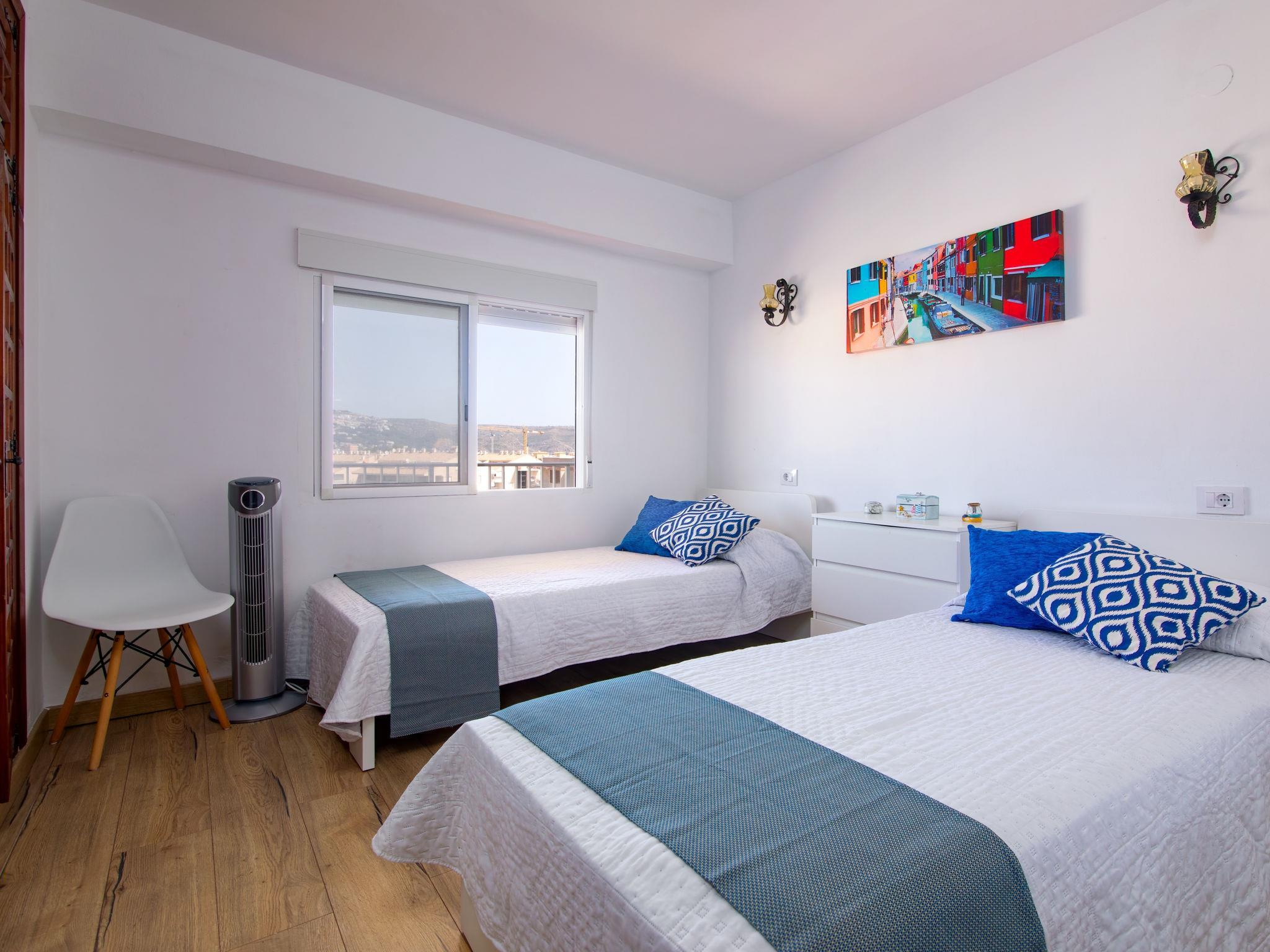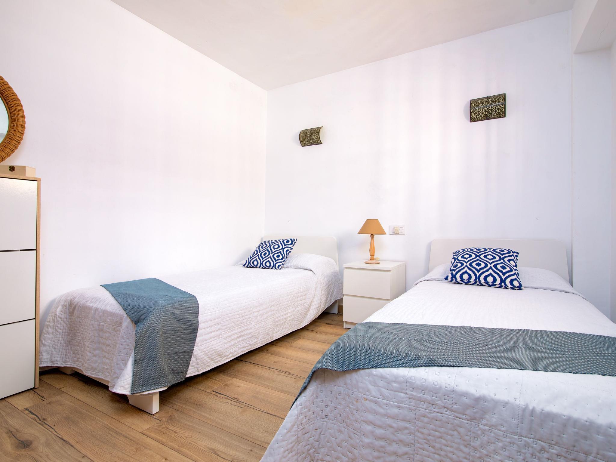 "Strand II", 4-room apartment 100 m2. Spacious and bright, beautiful furnishings: living/dining room with digital TV and fan. Exit to the terrace. 1 room with 1 french bed (160 cm, length 190 cm), fan. 1 room with 2 beds (90 cm, length 190 cm), fan. 1 room with 2 beds (90 cm, length 190 cm), fan. Kitchen (oven, dishwasher, 3 ceramic glass hob hotplates, toaster, microwave, freezer, electric coffee machine). Shower/WC, sep. WC. No heating option. Terrace 25 m2. Terrace furniture. Partial view of the sea and the mountains. Facilities: washing machine, iron, hair dryer. Internet (WiFi, free). Parking at the house. Please note: TV only ES. VT-510962-A // Reg. Nr.: ESFCTU00000307100060484700000000000000000VT-510962-A6