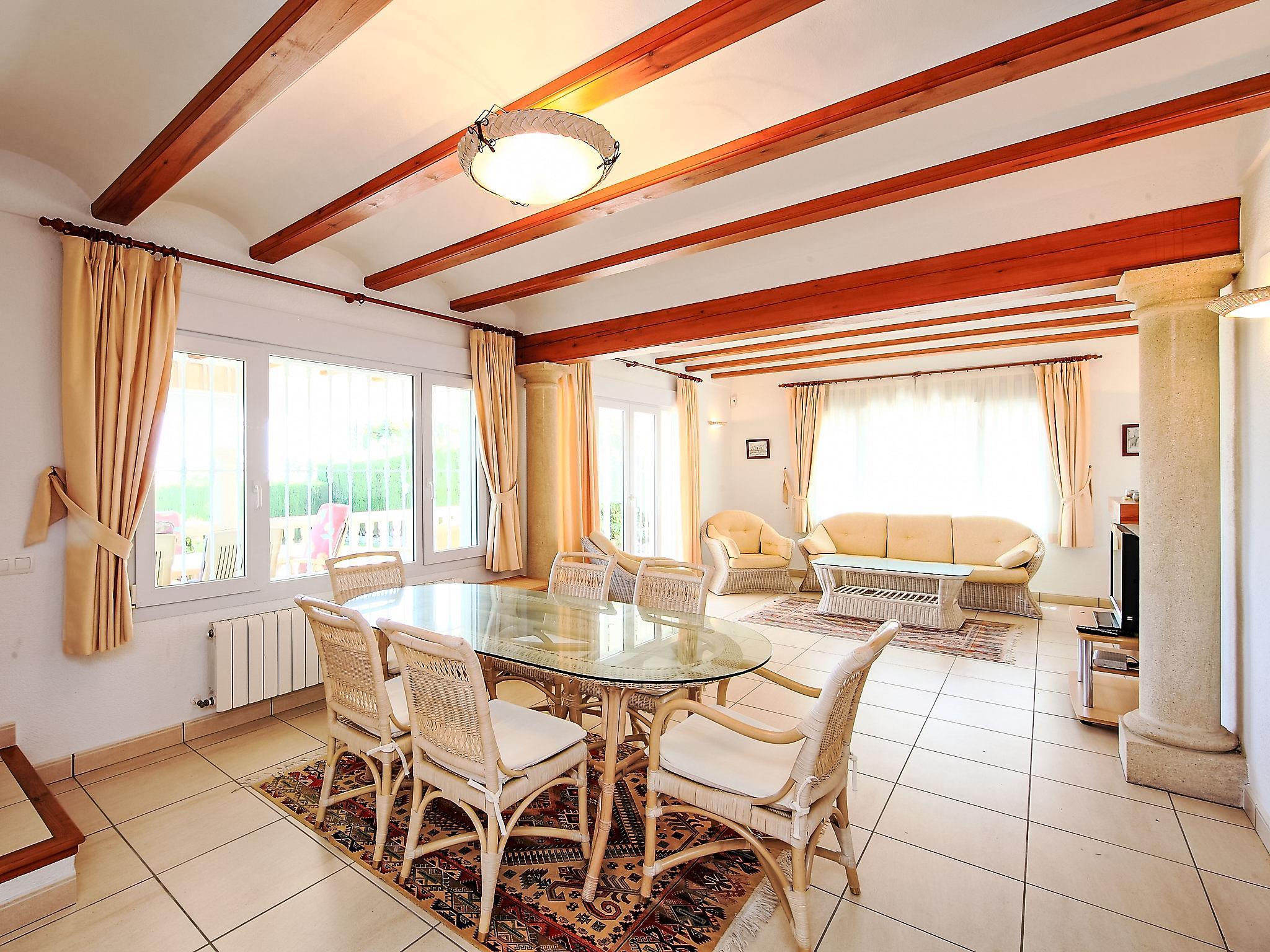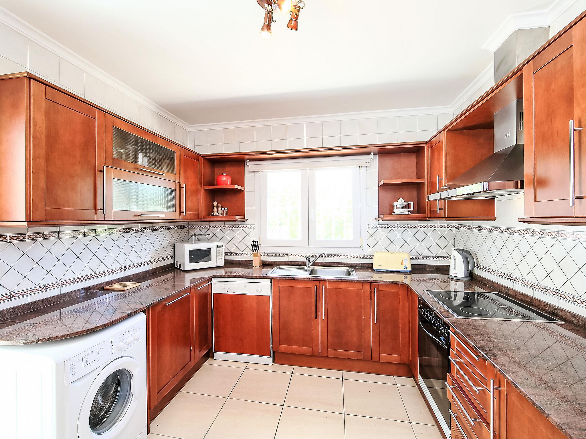 Beautiful house "Faisa", 2 storeys. In the district of La Marina, in a quiet, sunny, elevated position in the residential district, 7.4 km from the sea. Private: garden (fenced) with lawn and wildlife garden, swimming pool (4 x 9 m, depth 100 - 200 cm, seasonal availability: 01.Jan. - 31.Dec.) with internal staircase. In the house: central heating system. Stepped path (9 steps) to the house. Supermarket 3.3 km, restaurant 3.3 km, bus stop 8 km, sandy beach "Arenal" 7.4 km, swimming bay 2 km. Tennis 3.3 km. Groups of teenagers on request only.