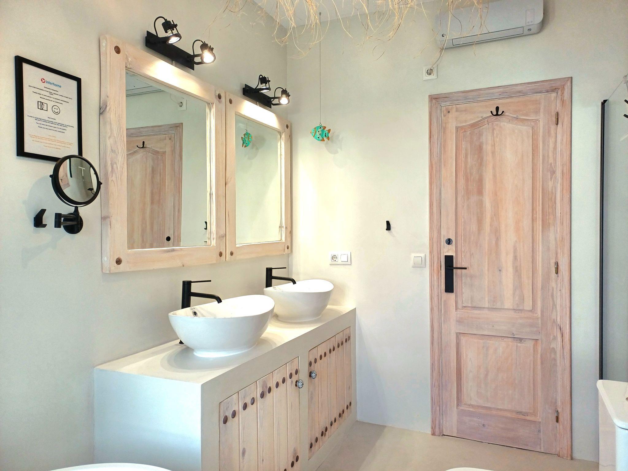 "Villa Lantana", 5-room villa 250 m2 on 2 levels. Spacious and bright, very beautiful and stylish furnishings: living/dining room with open-hearth fireplace, satellite TV, gas heating, air conditioning, fan and forced-air heating. Exit to the patio, to the swimming pool. 1 room with 1 french bed (2 x 90 cm, length 200 cm), gas heating, air conditioning, fan and forced-air heating. Exit to the terrace, to the swimming pool. 1 room with 1 french bed (2 x 90 cm, length 200 cm), gas heating, air conditioning and forced-air heating. Large, open kitchen (4 hot plates, oven, dishwasher, Gas stove, toaster, kettle, microwave, freezer, electric coffee machine). Bath/WC, shower/WC. Gas heating. Upper floor: 1 room with 1 french bed (2 x 100 cm, length 200 cm), bath/shower, double hand-basin, gas heating, air conditioning, fan and forced-air heating. Exit to the terrace. 1 room with 1 french bed (2 x 100 cm, length 200 cm), bath/WC, gas heating, air conditioning, fan and forced-air heating. Gas heating. Large patio. Terrace furniture, barbecue, deck chairs (8), covered balcony, sitting area. Very beautiful view of the mountains and the forest. Facilities: washing machine, iron, mosquito net, hair dryer. Internet (WiFi, free). Parking. VT-497206A // Reg. Nr.: ESFCTU0000030710004642670000000000000000000VT497206A1