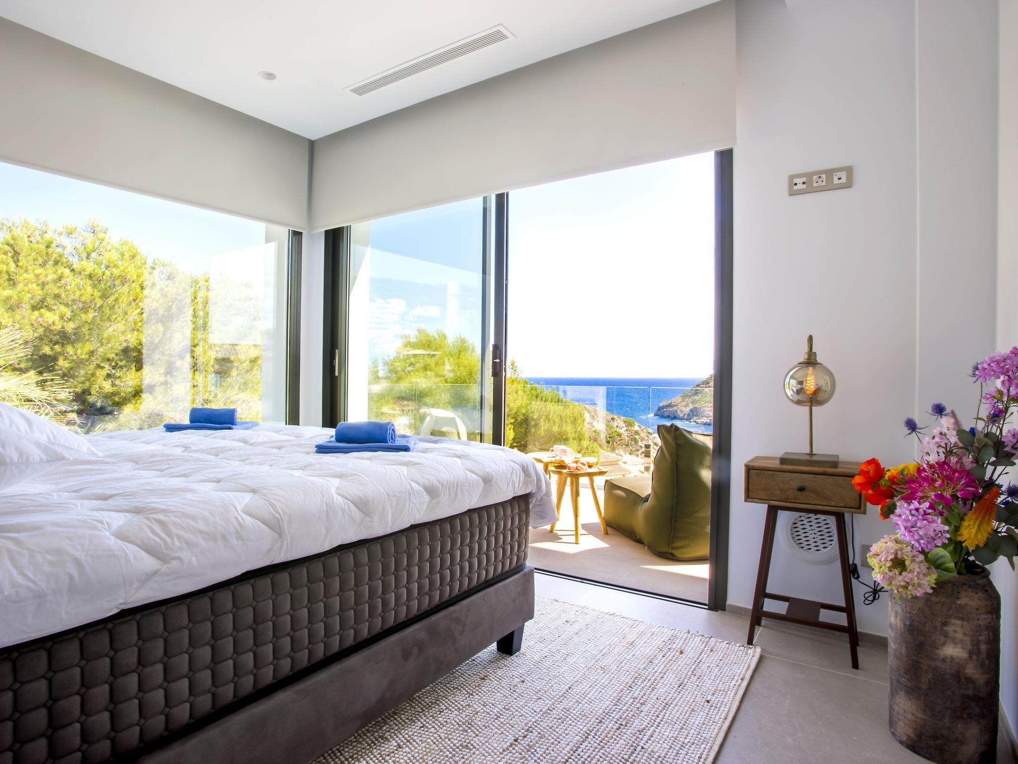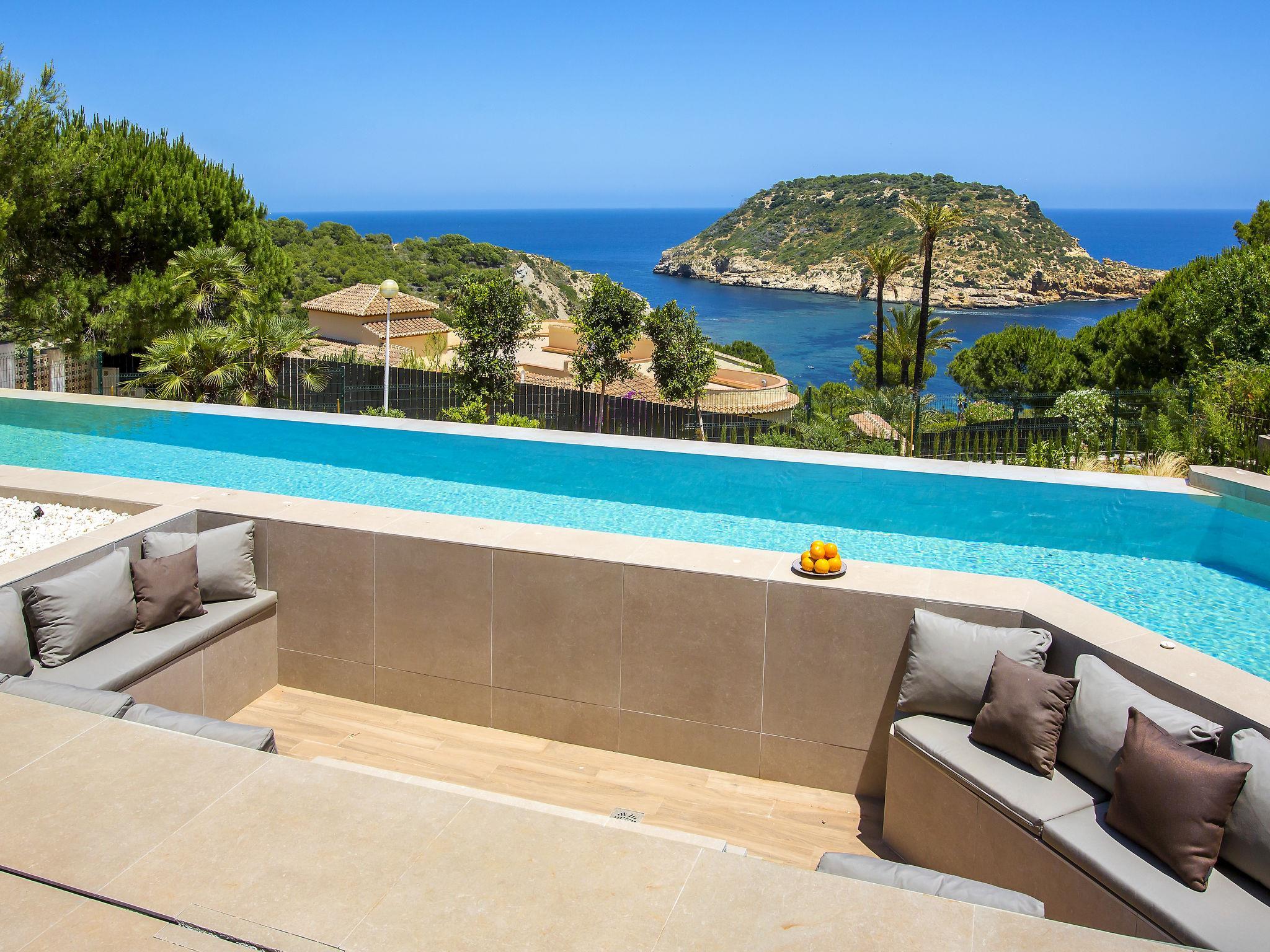 "El Refugio", 5-room villa 450 m2 on 2 levels. Spacious and bright, very modern and stylish furnishings: living/dining room with satellite TV, digital TV, air conditioning and forced-air heating. Exit to the terrace, pergola, to the swimming pool. Large, open kitchen (oven, dishwasher, 4 induction hot plates, toaster, kettle, microwave, freezer, electric coffee machine) with air conditioning and forced-air heating. Exit to the patio, to the swimming pool. Sep. WC. On the lower ground floor: 1 room with 1 french bed (2 x 90 cm, length 200 cm), shower/WC, double hand-basin, air conditioning and forced-air heating. Exit to the terrace. 1 room with 1 french bed (2 x 90 cm, length 200 cm), shower/WC, air conditioning and forced-air heating. Exit to the terrace. 1 room with 1 french bed (2 x 90 cm, length 200 cm), air conditioning and forced-air heating. Exit to the terrace. 1 room with 1 french bed (2 x 90 cm, length 200 cm), air conditioning and forced-air heating. Exit to the terrace. Shower/WC, double hand-basin. Large patio, lawn. Terrace furniture, barbecue, deck chairs, covered balcony, sitting area. Marvellous panoramic view of the sea. Facilities: washing machine, dryer, iron, mosquito net, children's high chair, baby cot, hair dryer. Internet (WiFi, free). VT-487546-A // Reg. Nr.: ESFCTU00000307100057026500000000000000000VT-487546-A7