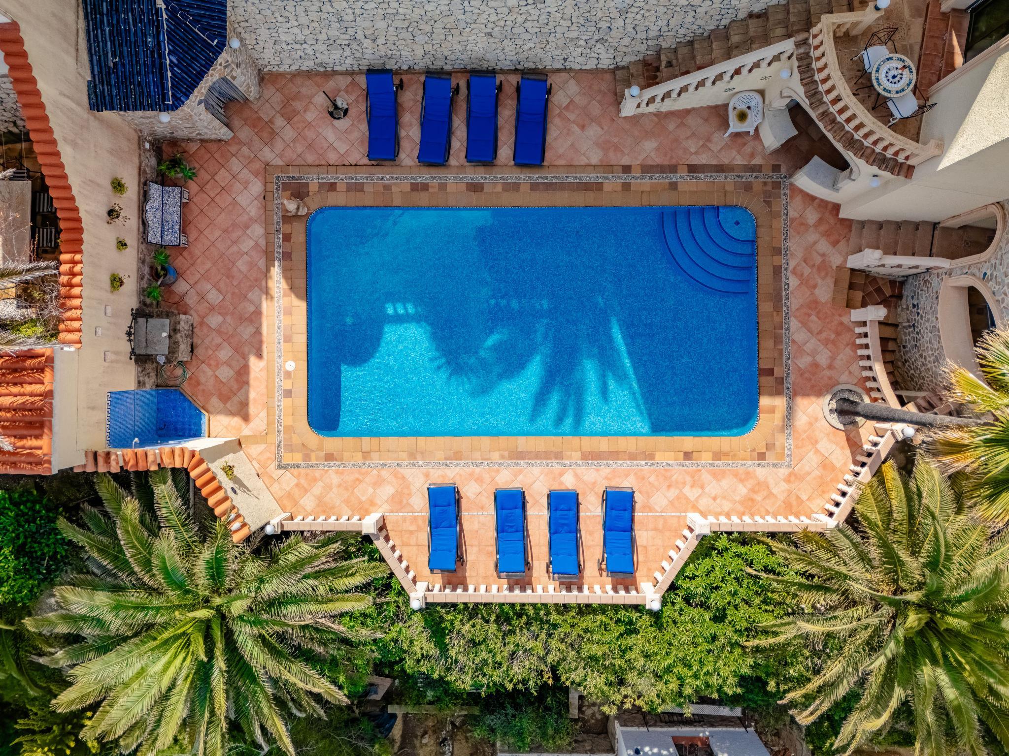 Very large, beautiful, comfortable villa "Castillo al Mar", 2 storeys. In the district of Balcón al Mar, in a quiet, sunny position, 500 m from the sea, 4.2 km from the beach. Private: beautiful, well-kept garden, swimming pool angular (10 x 5 m, depth 145 - 220 cm, seasonal availability: 01.Jan. - 31.Dec.) with internal staircase. Outdoor shower, garden furniture, barbecue, parking, public parking on the road. Grocery 1.9 km, supermarket 1.8 km, restaurant 1.3 km, café 1.9 km, bus stop "Parada Toscamar" 5.3 km, sandy beach "El Arenal" 7.1 km, shingle beach "Cala Portitxol" 4.2 km. Sports harbour 7.1 km, surf school 4.2 km, tennis 1.9 km. The owner does not accept any youth groups.