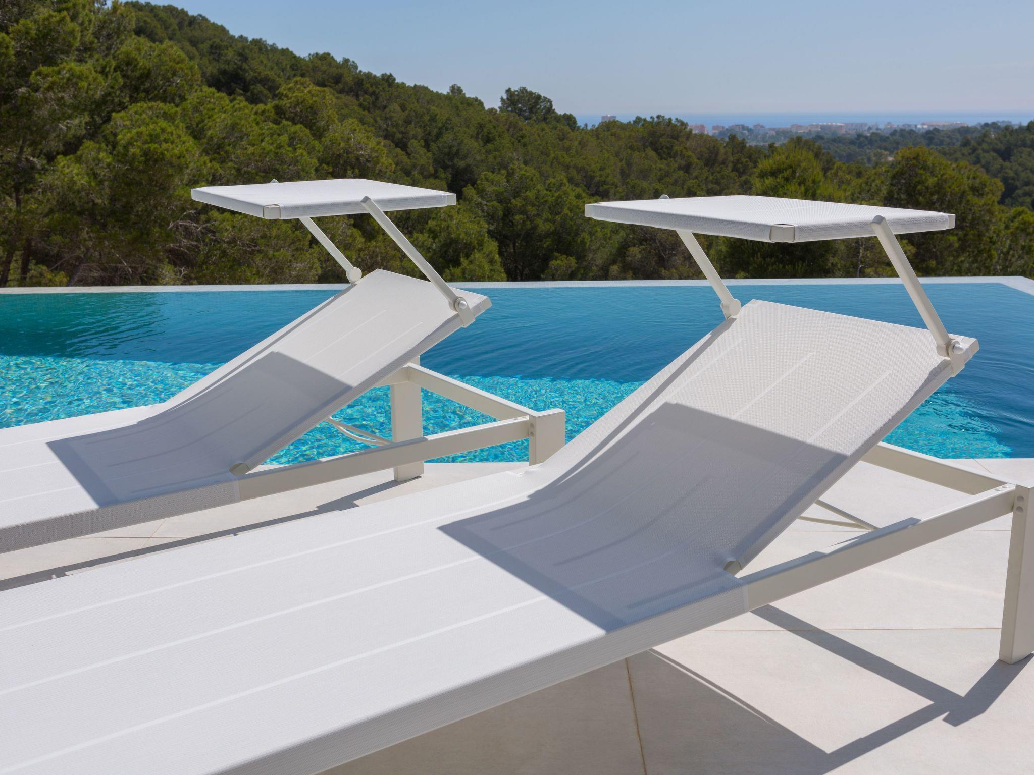 Infinity pool with lighting, built-in outdoor kitchen with fridge and barbecue, outdoor shower. Terrace furniture: seating and dining set, sun loungers, parasol.