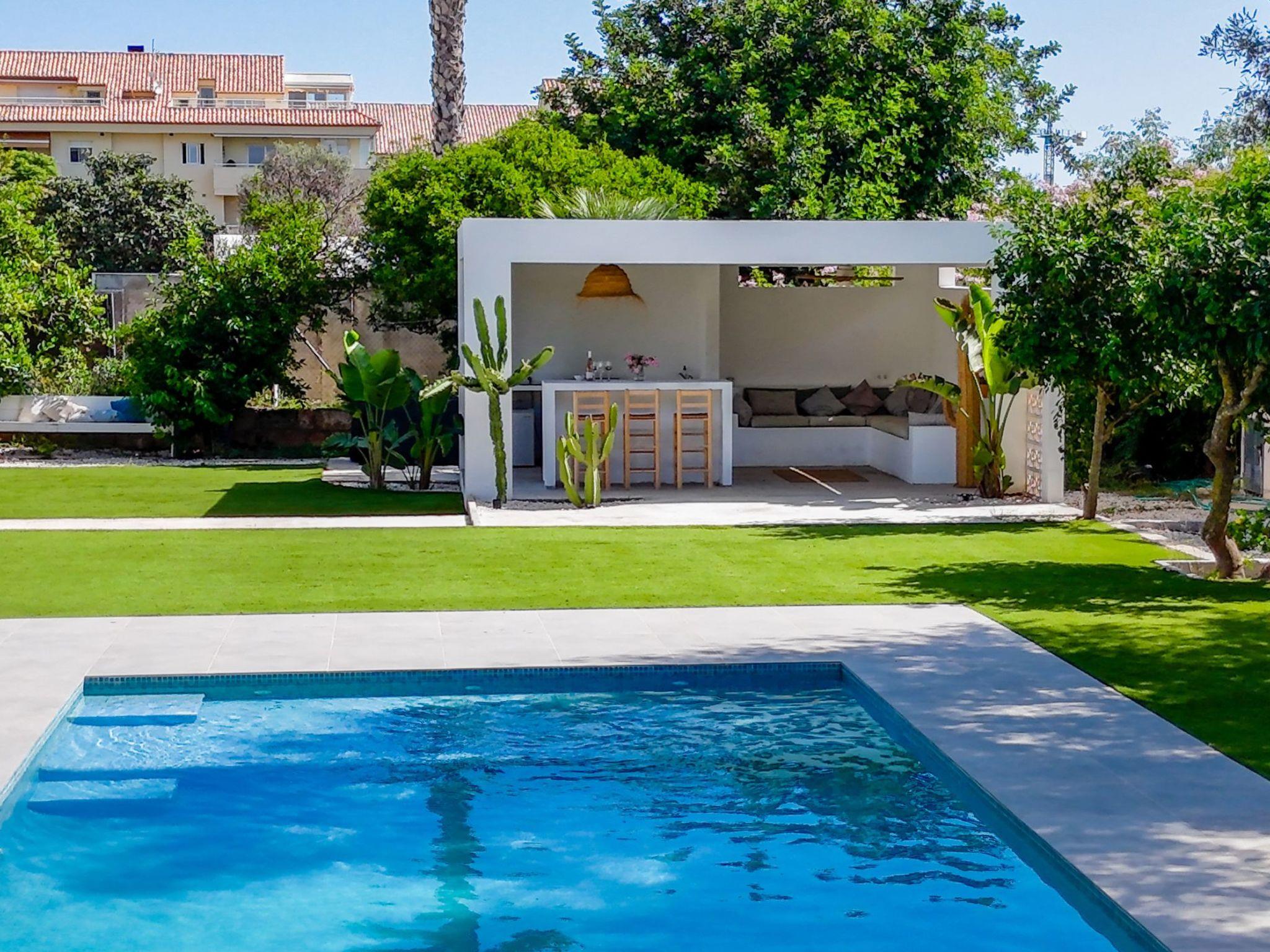 Our favourite feature is the summer house which overlooks the pool and garden, providing shade, lounge and bar seating and an outdoor kitchen BBQ area with gas plancha.