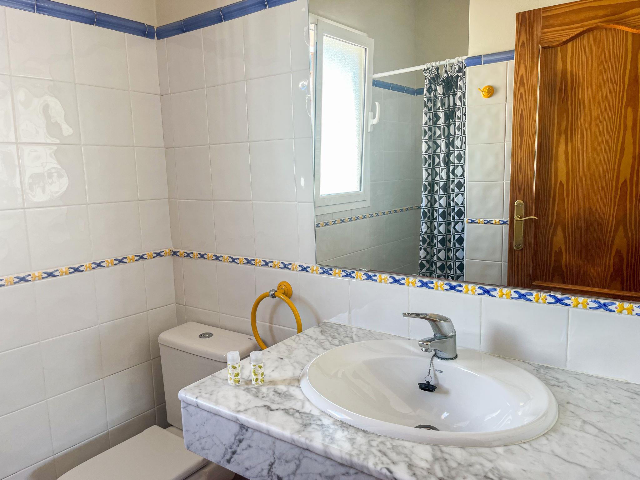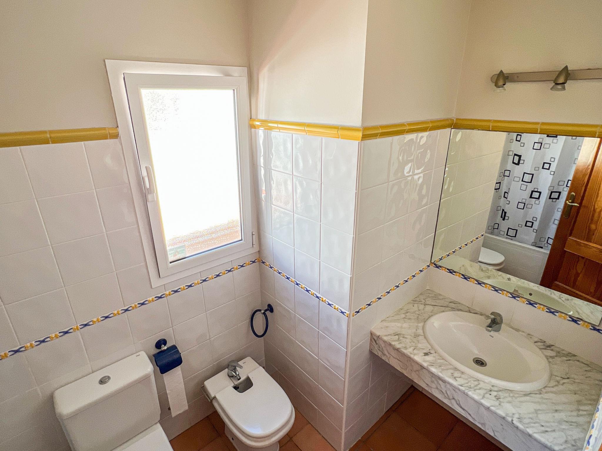 House. 24 houses in the residence. In the district of Monte Javea 5 km from the centre of Jávea-Arenal, on a slope, 3 km from the sea. Private: property (fenced) with wildlife garden and trees, swimming pool (8 x 4 m, depth 120 - 220 cm, seasonal availability: 01.Jan. - 31.Dec.). Public parking on the road. Shop 2.5 km, restaurant 1 km, bus stop "Calablanca" 3.6 km, sandy beach "Arenal" 5 km pebble beach "Granadella" 3 km. Tennis 1 km.