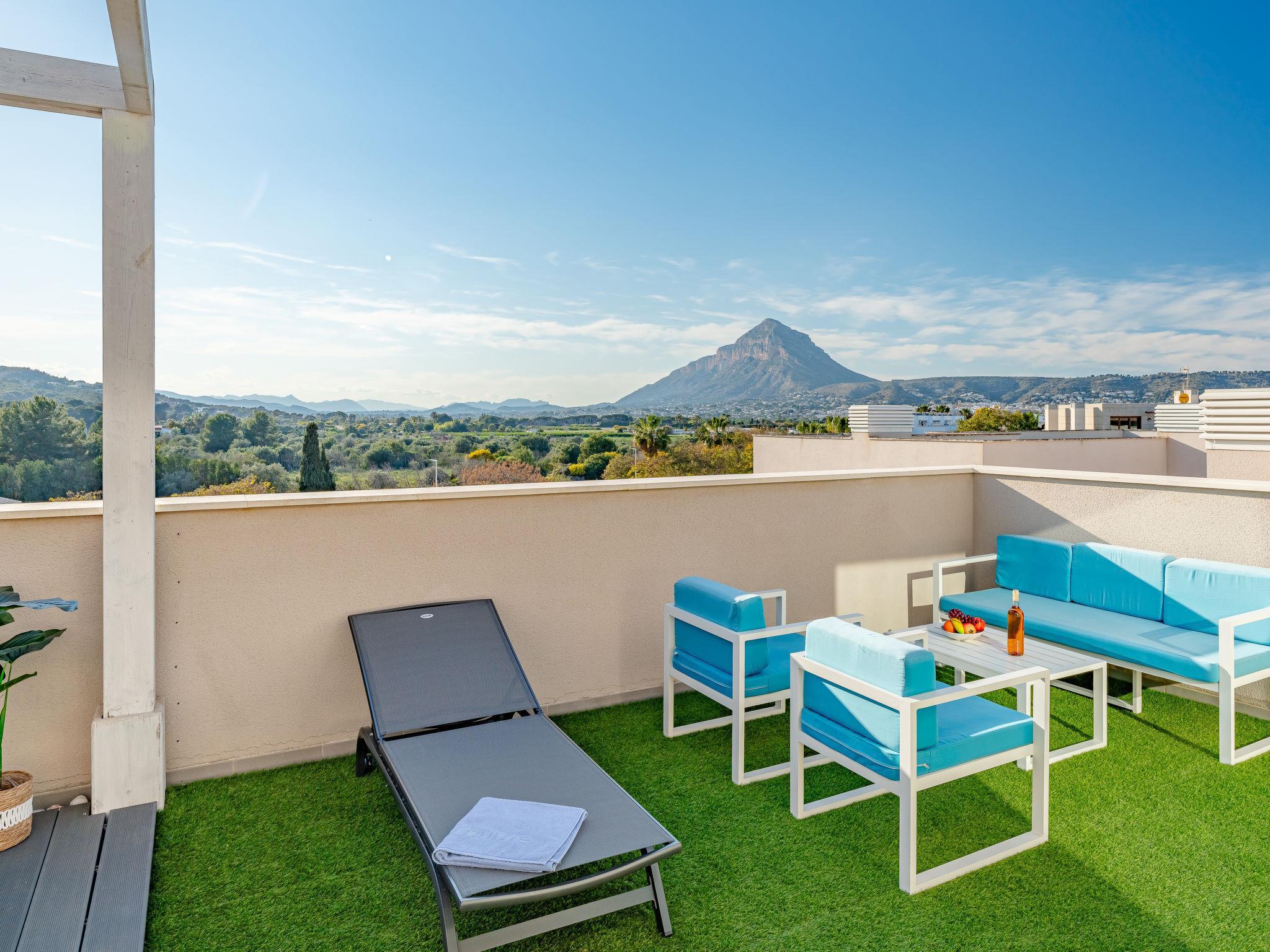 "Arenal Boutique Suite", 5-room maisonette 140 m2 on 2 levels. Spacious and bright, very beautiful and stylish furnishings: living/dining room with digital TV, air conditioning and forced-air heating. Exit to the terrace. 1 room with 1 french bed (180 cm, length 200 cm), shower/WC, double hand-basin, air conditioning and forced-air heating. 1 room with 1 double bed (2 x 90 cm, length 200 cm), air conditioning and forced-air heating. Exit to the terrace. 1 room with 1 double bed (2 x 90 cm, length 200 cm), air conditioning and forced-air heating. Open kitchen (oven, dishwasher, 3 ceramic glass hob hotplates, toaster, kettle, microwave, freezer, electric coffee machine, Capsules for coffee machine (Dolce Gusto)). Bath/WC. Upper floor: lounge with air conditioning and forced-air heating. Exit to the terrace. Shower/WC. Large balcony 50 m2, balcony 10 m2. Terrace furniture, barbecue, deck chairs, covered balcony, sitting area. Very beautiful view of the valley. Facilities: washing machine, iron, hair dryer. Internet (WiFi, free). Garage space n 22. Please note: Only Streaming-TV. R00000001