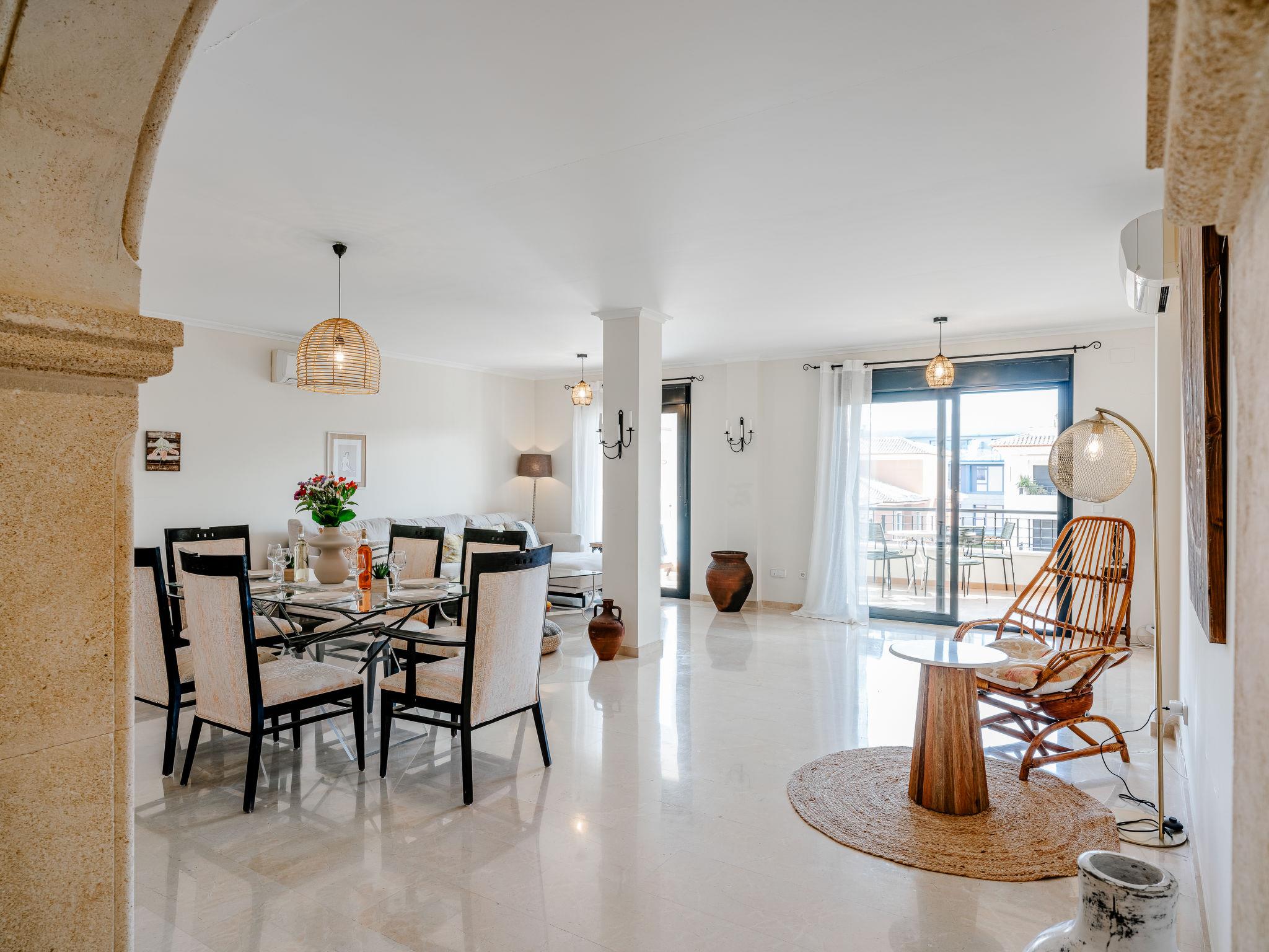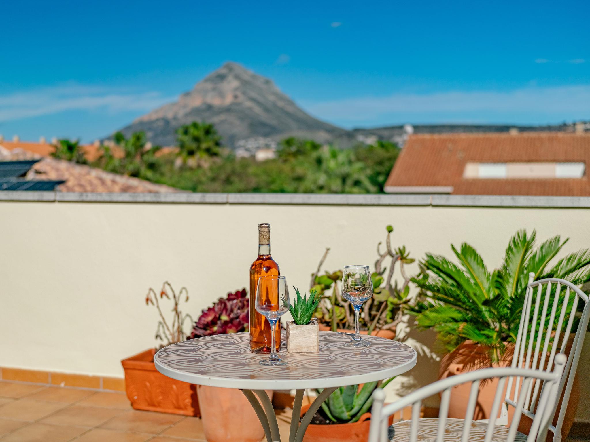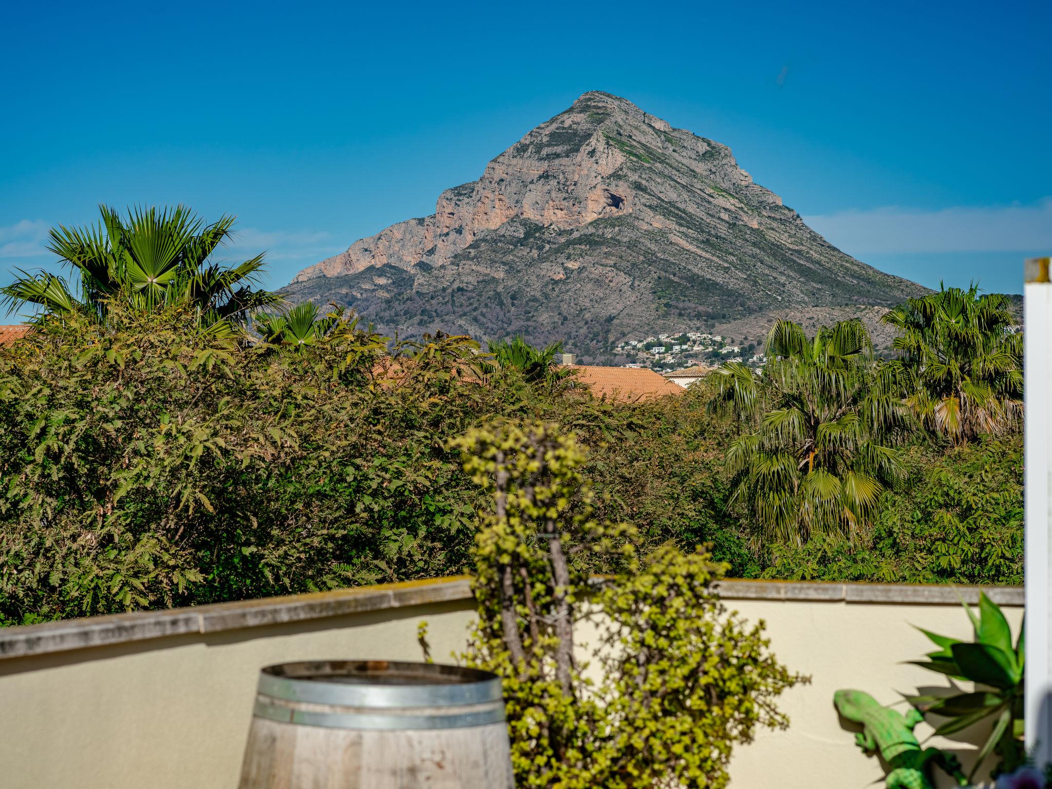 "Jardines del Pla", 4-room maisonette 180 m2 on 2 levels. Spacious and bright, very beautiful and stylish furnishings: living/dining room with digital TV, air conditioning and forced-air heating. Exit to the terrace. 1 room 12 m2 with 1 french bed (180 cm, length 200 cm), shower/bidet/WC, air conditioning and forced-air heating. 1 room with 2 beds (80 cm, length 200 cm), air conditioning and forced-air heating. Large kitchen (oven, dishwasher, 4 ceramic glass hob hotplates, toaster, microwave, freezer, electric coffee machine, Capsules for coffee machine (Nespresso Not.Incl.)). Shower/WC. Floor heating. Upper floor: 1 room with 1 french bed (2 x 90 cm, length 200 cm), air conditioning and forced-air heating. Exit to the terrace. Bath/bidet/WC. Floor heating. Large terrace 45 m2, roofed, east facing position, large terrace 60 m2, south facing position. Terrace furniture, deck chairs, covered balcony. Very beautiful view of the mountains, the valley, the swimming pool and the garden. Facilities: washing machine, iron, hair dryer. Internet (WiFi, free). Garage. Please note: non-smoking house. TV only ES. AT-502454-A // Reg. Nr.: ESFCTU00000307100061367200000000000000000AT-502454-A6