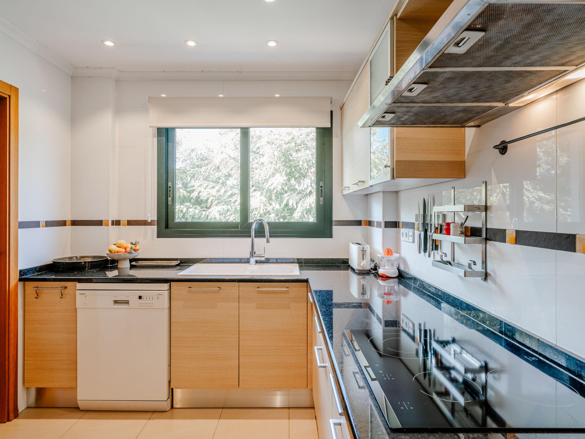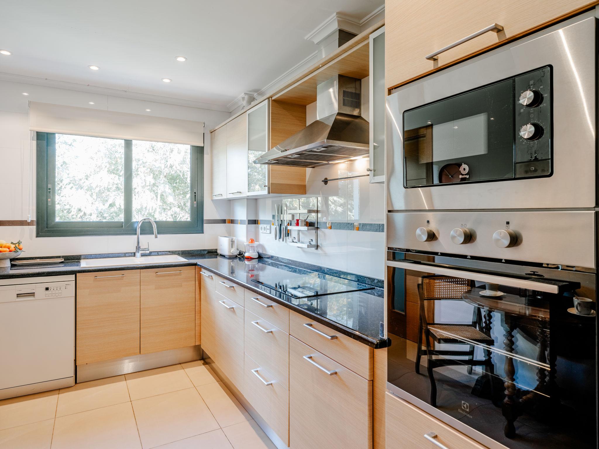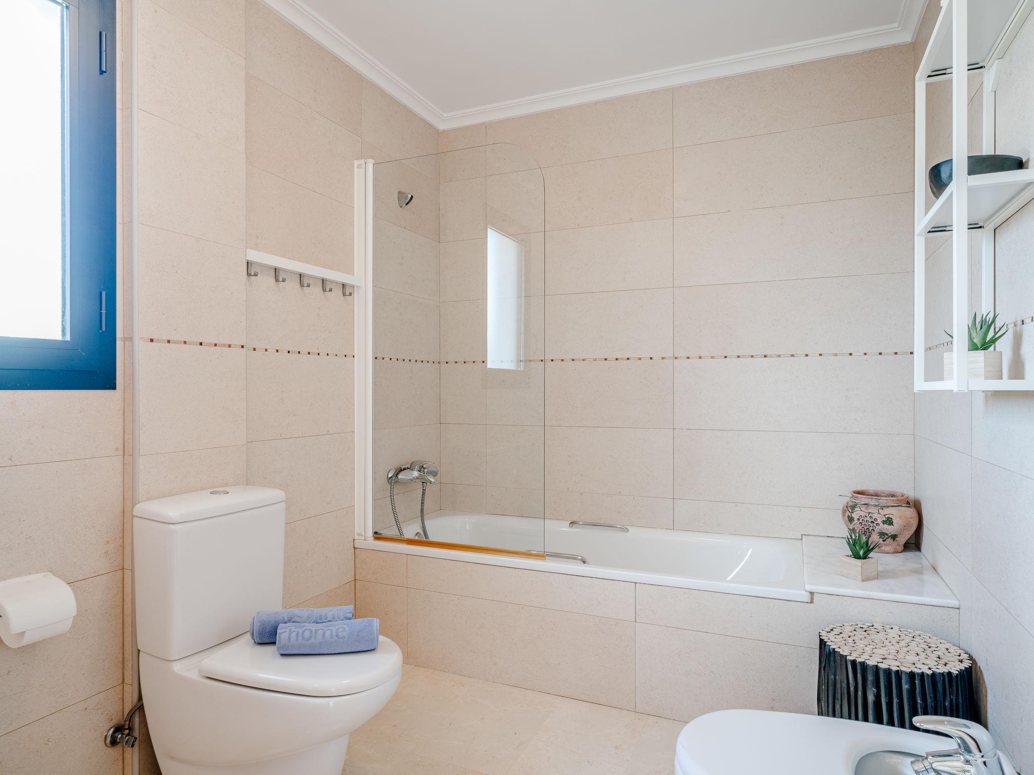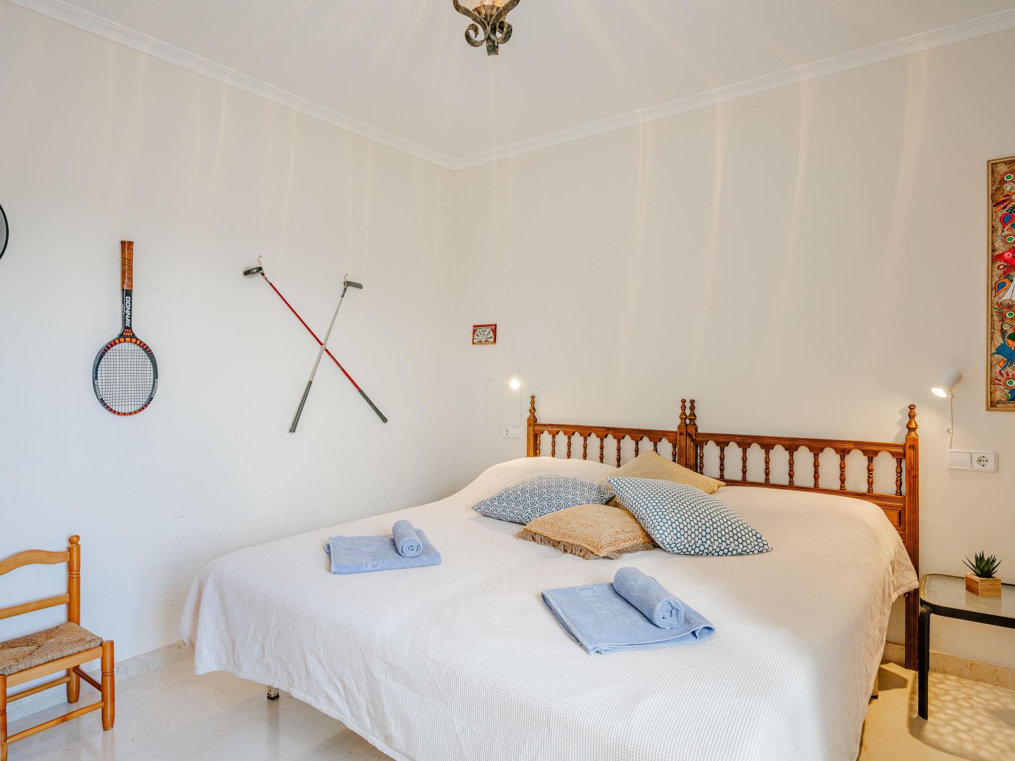 "Jardines del Pla", 4-room maisonette 180 m2 on 2 levels. Spacious and bright, very beautiful and stylish furnishings: living/dining room with digital TV, air conditioning and forced-air heating. Exit to the terrace. 1 room 12 m2 with 1 french bed (180 cm, length 200 cm), shower/bidet/WC, air conditioning and forced-air heating. 1 room with 2 beds (80 cm, length 200 cm), air conditioning and forced-air heating. Large kitchen (oven, dishwasher, 4 ceramic glass hob hotplates, toaster, microwave, freezer, electric coffee machine, Capsules for coffee machine (Nespresso Not.Incl.)). Shower/WC. Floor heating. Upper floor: 1 room with 1 french bed (2 x 90 cm, length 200 cm), air conditioning and forced-air heating. Exit to the terrace. Bath/bidet/WC. Floor heating. Large terrace 45 m2, roofed, east facing position, large terrace 60 m2, south facing position. Terrace furniture, deck chairs, covered balcony. Very beautiful view of the mountains, the valley, the swimming pool and the garden. Facilities: washing machine, iron, hair dryer. Internet (WiFi, free). Garage. Please note: non-smoking house. TV only ES. AT-502454-A // Reg. Nr.: ESFCTU00000307100061367200000000000000000AT-502454-A6