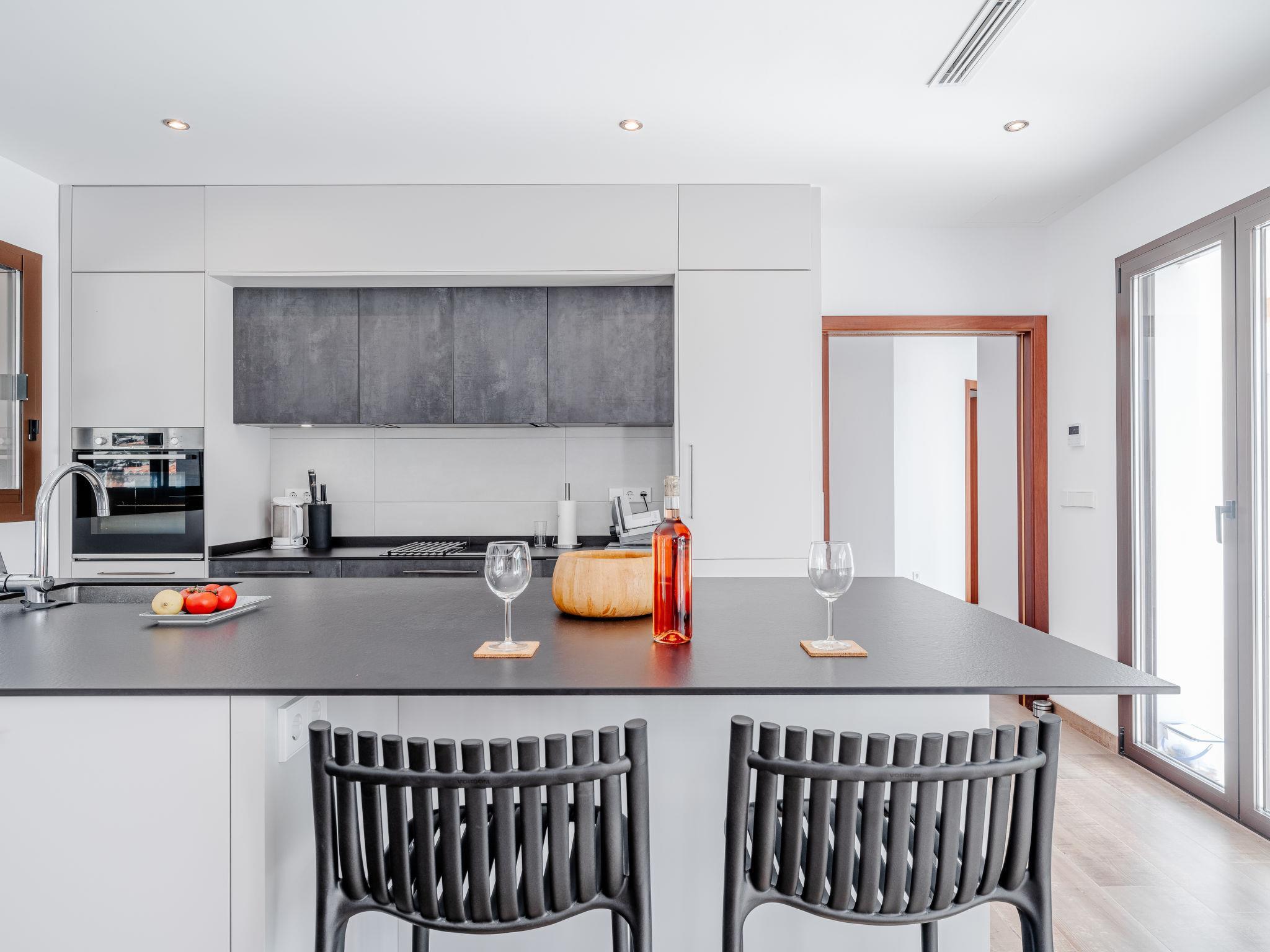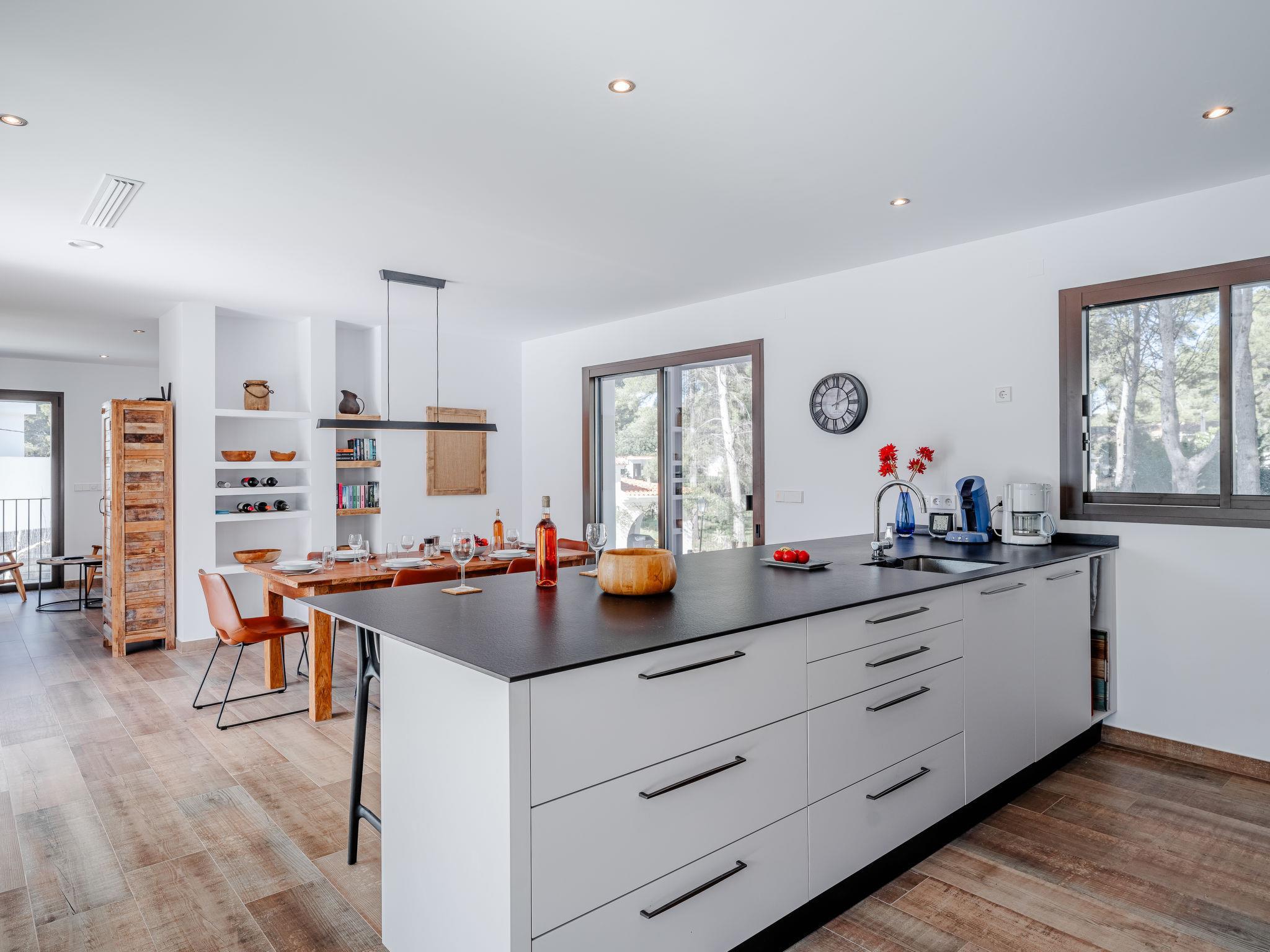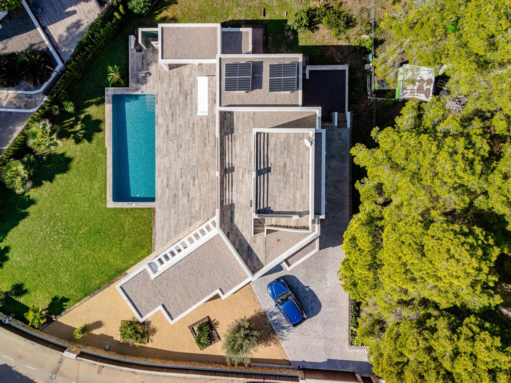 Very modern, beautiful villa "Can Calablanca", 2 storeys. In the district of Cala Blanca, in a quiet, sunny position, 250 m from the sea, 250 m from the beach. Private: large, beautiful, well-kept terraced garden (not fenced) with lawn, swimming pool angular (10 x 4 m, depth 110 - 180 cm, seasonal availability: 01.Jan. - 31.Dec.) with internal staircase. Outdoor shower, pergola, garden furniture, barbecue, parking on the premises. Supermarket 550 m, restaurant 400 m, bar 550 m, bus stop 1.9 km, sandy beach "Arenal" 1.8 km, rocky beach "Cala Blanca" 250 m. Sports harbour 2 km, surf school 400 m, tennis 2.6 km. The owner does not accept any youth groups.