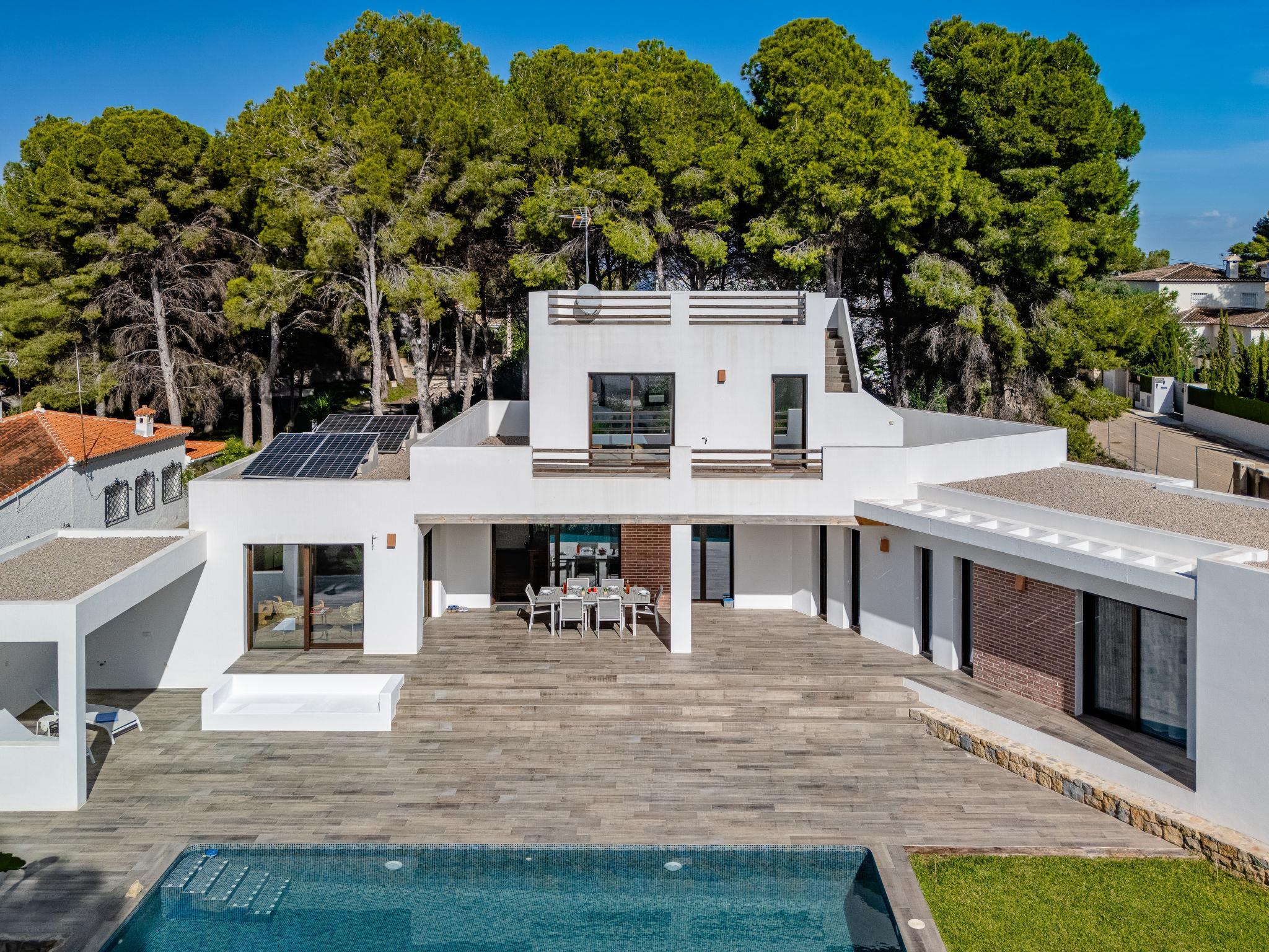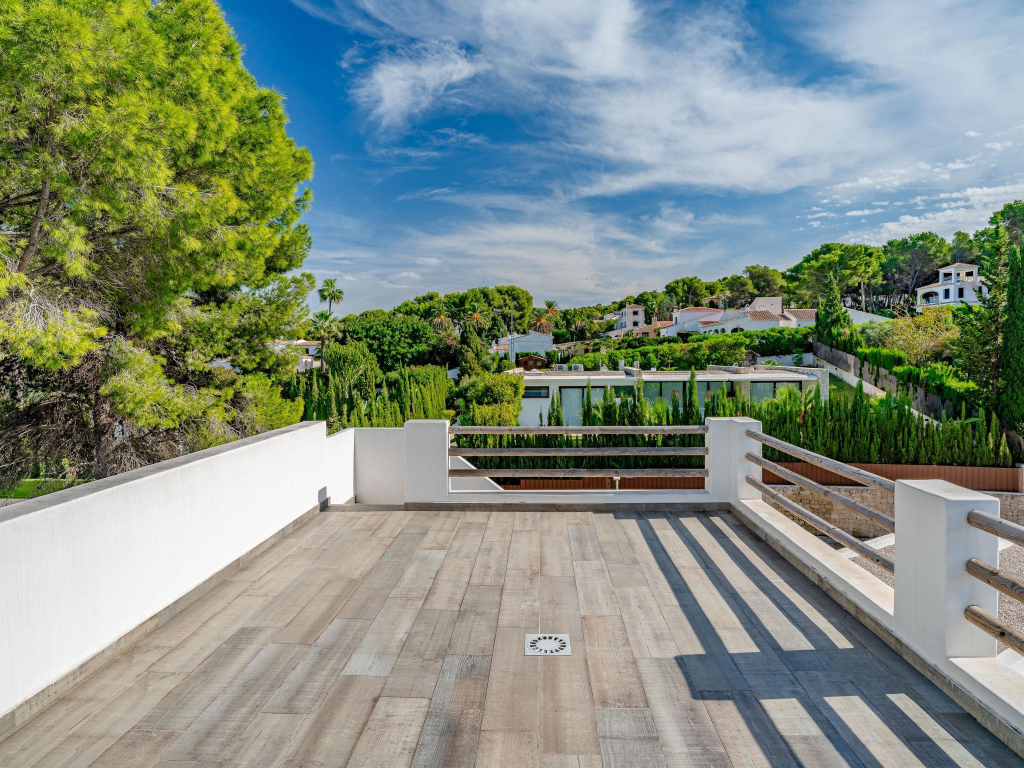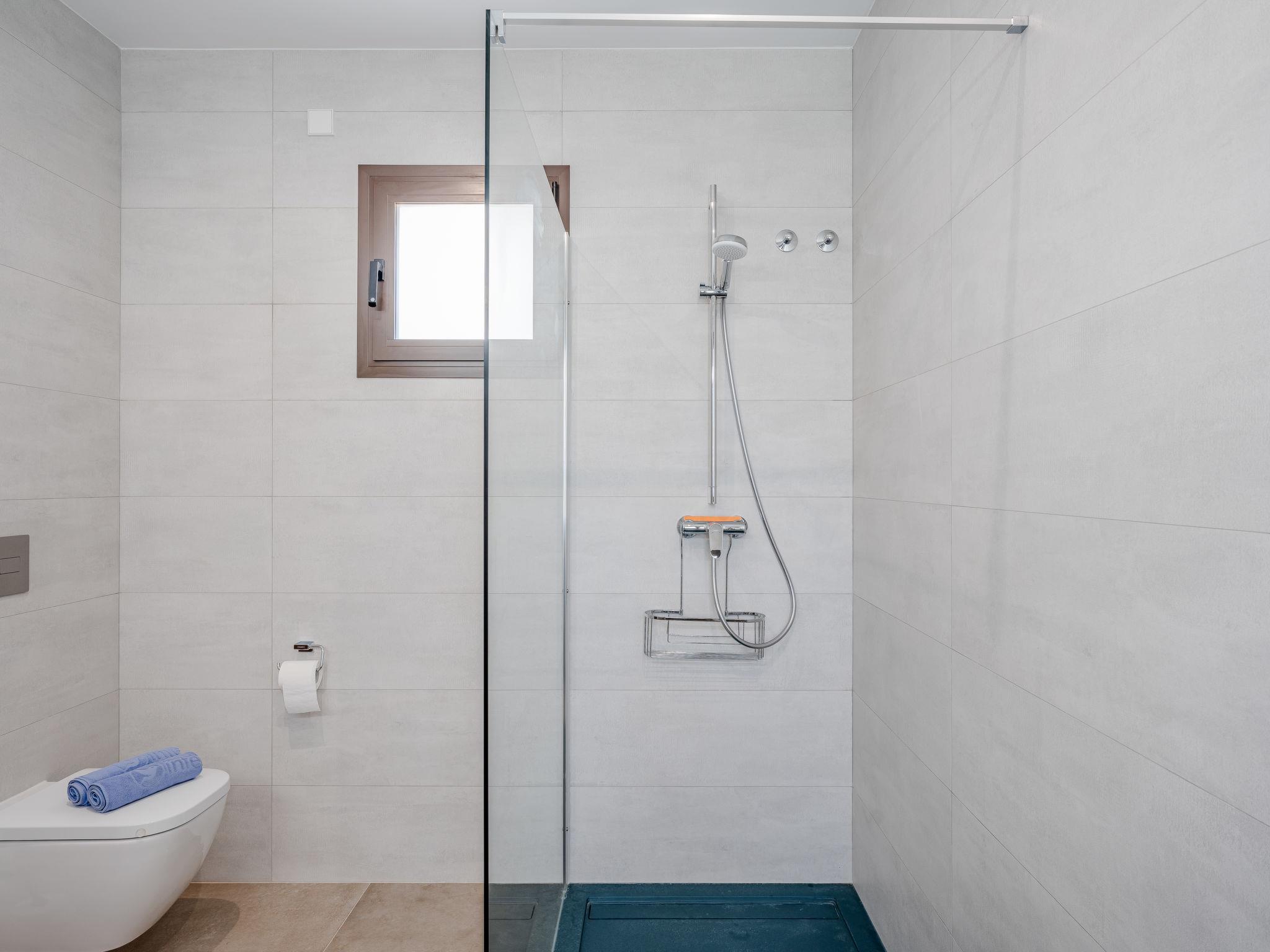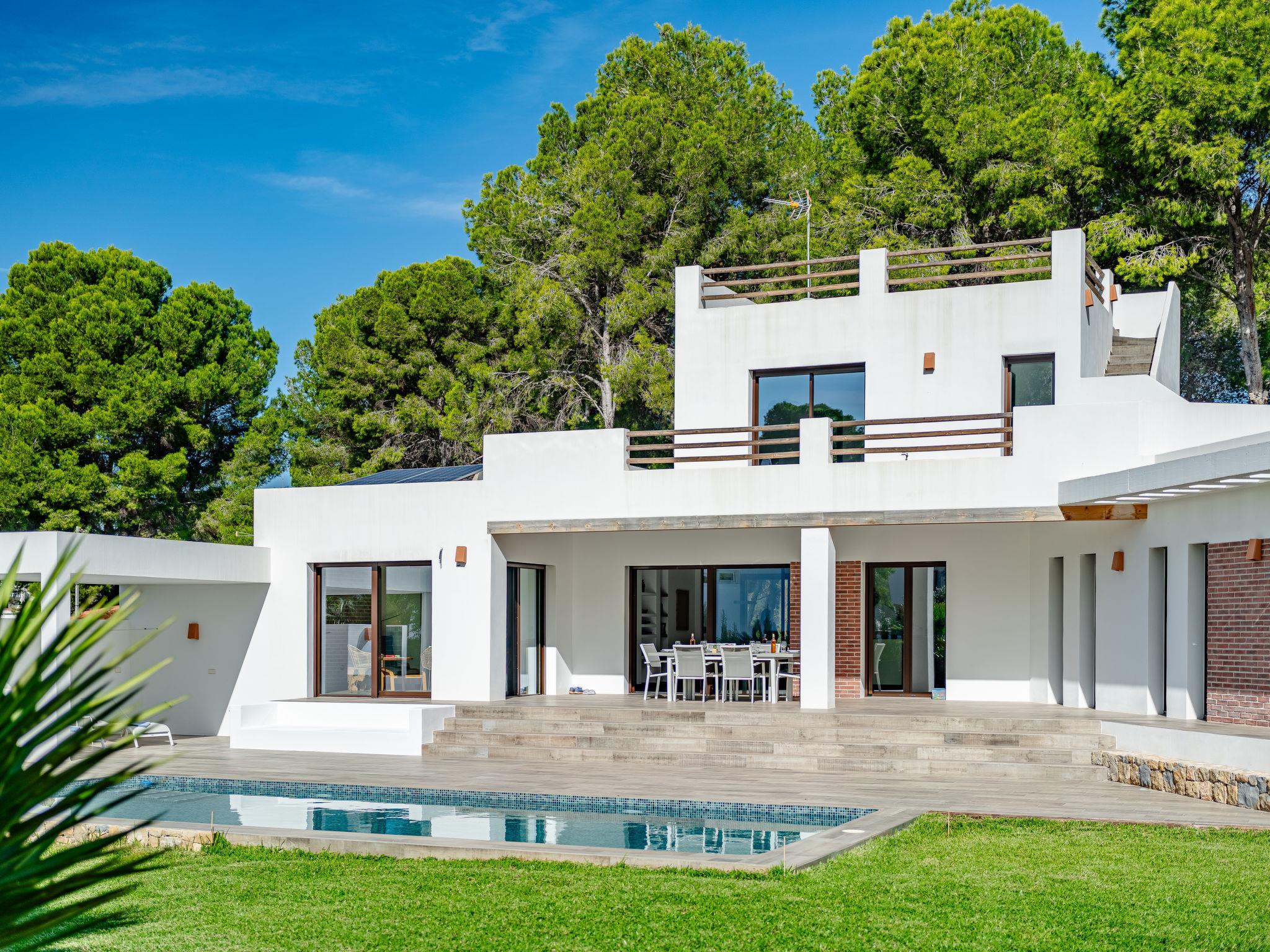 Very modern, beautiful villa "Can Calablanca", 2 storeys. In the district of Cala Blanca, in a quiet, sunny position, 250 m from the sea, 250 m from the beach. Private: large, beautiful, well-kept terraced garden (not fenced) with lawn, swimming pool angular (10 x 4 m, depth 110 - 180 cm, seasonal availability: 01.Jan. - 31.Dec.) with internal staircase. Outdoor shower, pergola, garden furniture, barbecue, parking on the premises. Supermarket 550 m, restaurant 400 m, bar 550 m, bus stop 1.9 km, sandy beach "Arenal" 1.8 km, rocky beach "Cala Blanca" 250 m. Sports harbour 2 km, surf school 400 m, tennis 2.6 km. The owner does not accept any youth groups.