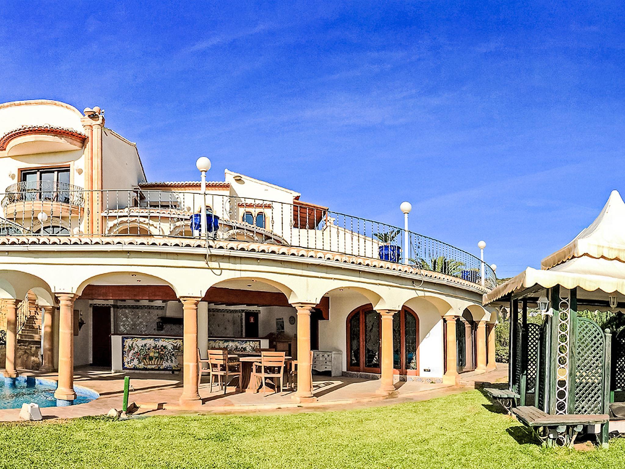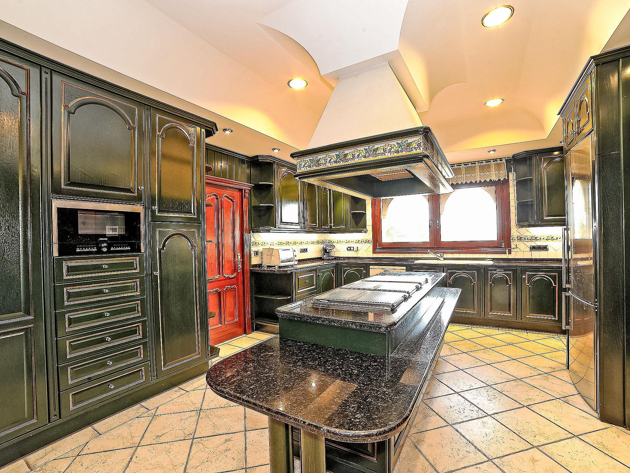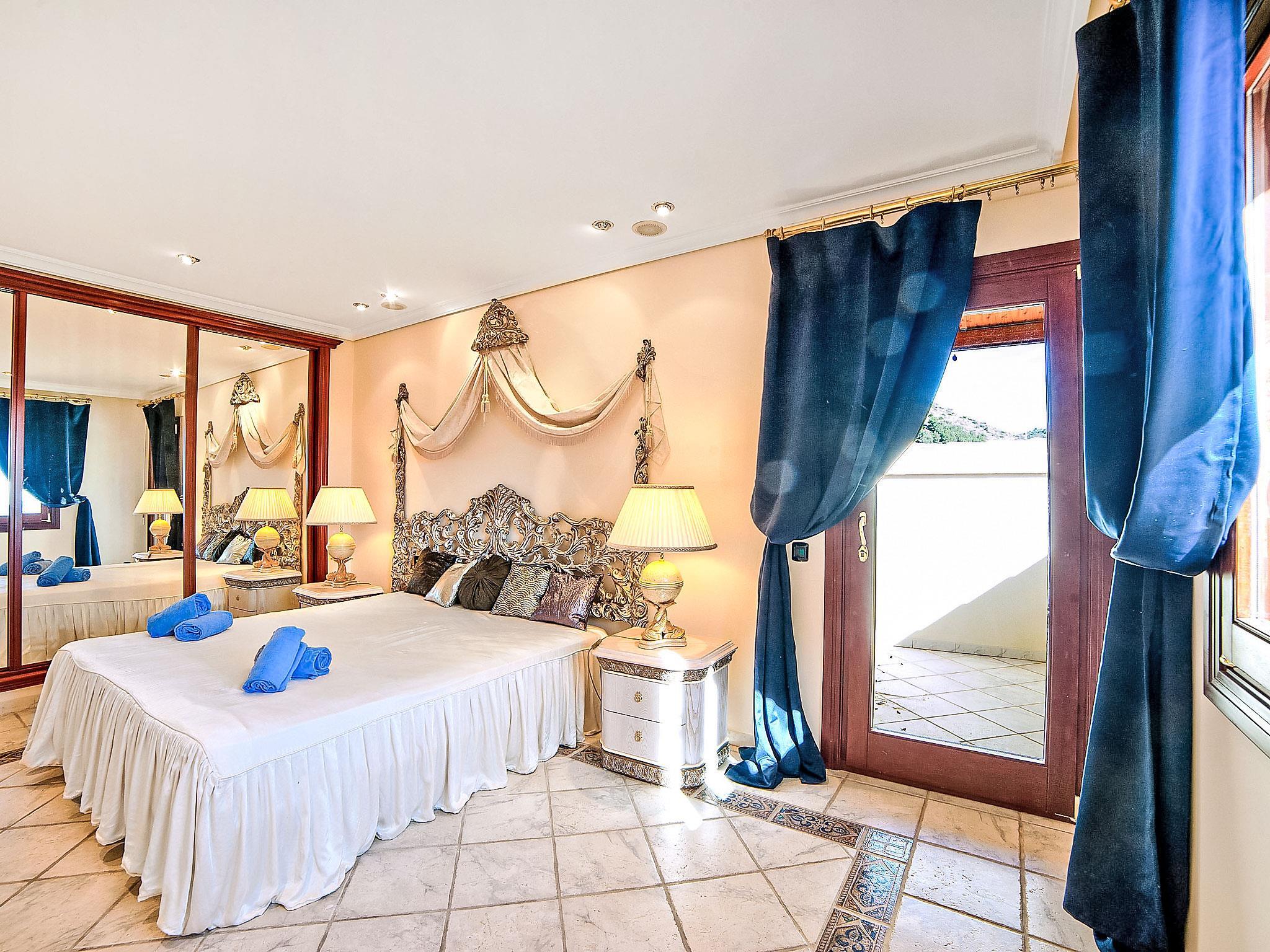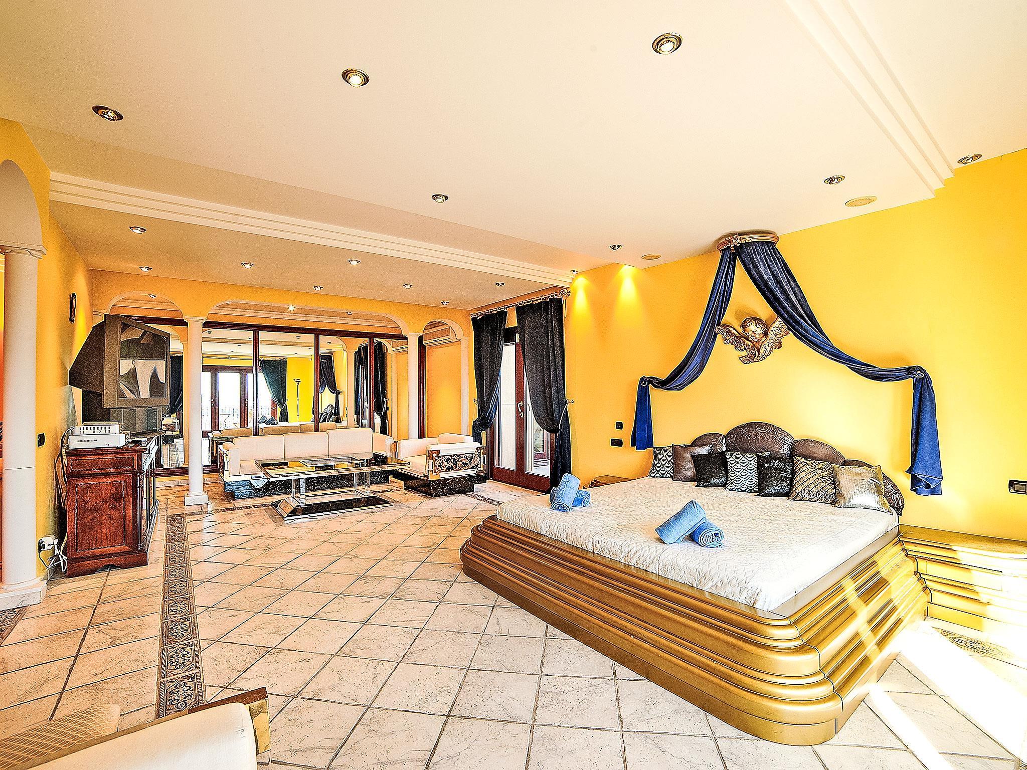 11-room villa 980 m2. Comfortable furnishings: large living room with satellite TV and digital TV. Exit to the swimming pool. Large dining room. Exit to the terrace. Large kitchen (oven, dishwasher, 4 ceramic glass hob hotplates, 3 gas rings, toaster, kettle, microwave, freezer, electric coffee machine, cooking island, pizza oven). 2 sep. WC's. Air-conditioning, floor heating. On the lower ground floor: 1 room with 1 french bed (160 cm, length 200 cm), shower/WC and air conditioning. Kitchenette (oven, 4 ceramic glass hob hotplates) with shower/WC. Upper floor: 1 large room 70 m2 with 1 bed (200 cm, length 200 cm), 1 french bed, bath/bidet/WC, double hand-basin and satellite TV (flat screen). Exit to the balcony. Living room. 1 room with 1 french bed (160 cm, length 190 cm), shower/bidet/WC. Exit to the balcony. Living room. 1 room with 1 french bed (180 cm, length 190 cm). Exit to the balcony. Living room. 1 room with 1 french bed (180 cm, length 200 cm), shower/bidet/WC. Exit to the balcony. Air-conditioning, floor heating. Large terrace 27 m2, roofed, large terrace 25 m2, roofed. Terrace furniture, deck chairs (8). Marvellous panoramic view of the sea and the resort. Facilities: washing machine, dryer, sauna, iron, children's high chair, baby cot, hair dryer. Internet (WiFi, free). Parking (roofed, fenced 3 cars). Please note: non-smoking house. Maximum 1 pet/ dog allowed. The bedrooms on the upper floor are all suites. The main suite with integrated living-room. Next to the main pool there is a fully equipped summer-kitchen (fridge, freezer, oven, dishwasher). The lower ground floor has an additional seperate entrance and was designed to personnel accommodation and therefore decorated to normal standard and without window. AT-445372-A // Reg. Nr.: ESFCTU00000307100044080300000000000000000AT-445372-A3