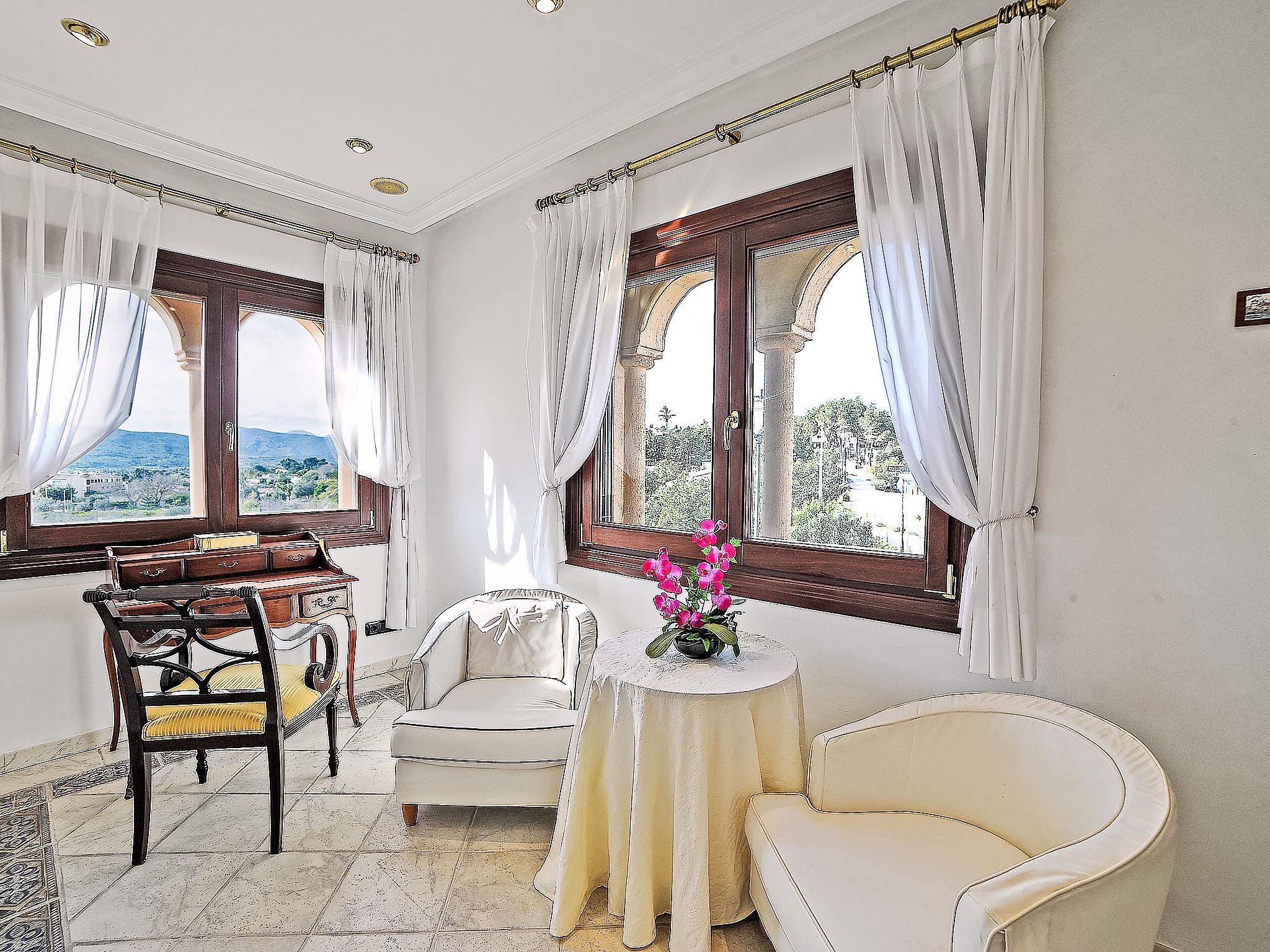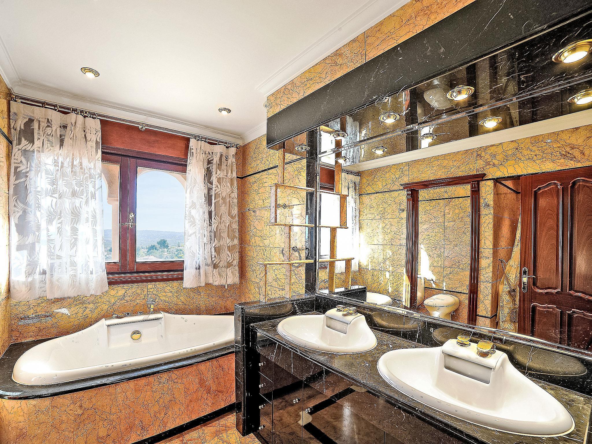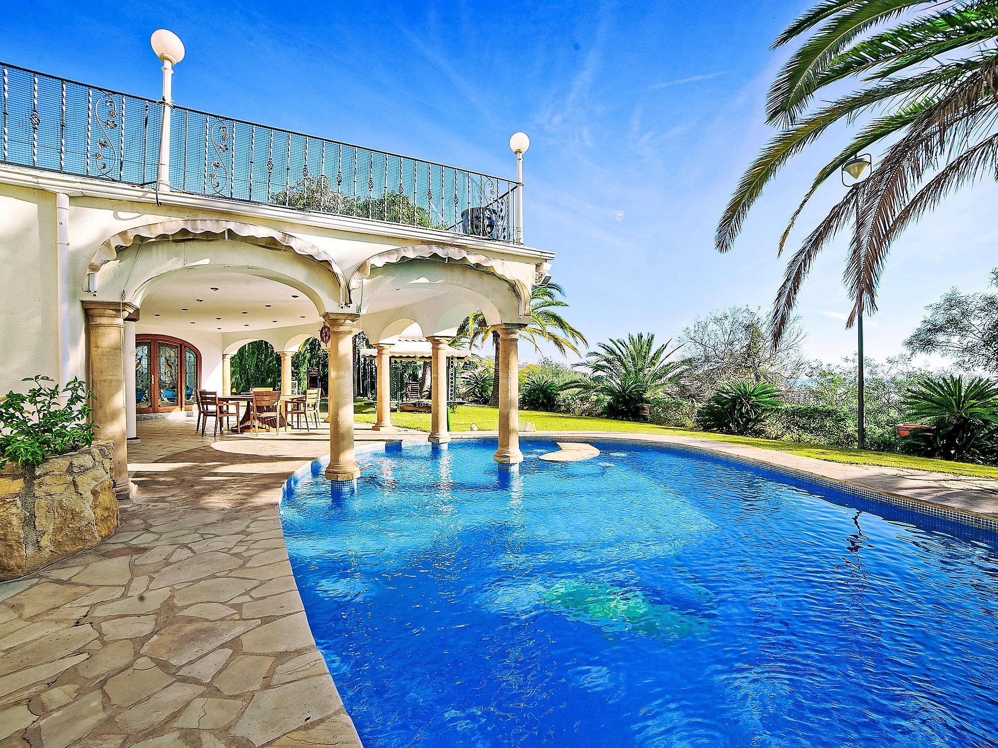 Very large villa "St Anthony", 3 storeys. In the district of Castellans, in a quiet, sunny, elevated position, 2.5 km from the sea. Private: beautiful, well-kept garden 4'080 m2 (fenced) with lawn and wildlife garden, swimming pool (5 x 15 m, depth 100 - 230 cm, seasonal availability: 01.Jan. - 31.Dec.) with internal staircase. Shower/WC in the pool area, outdoor shower, table tennis, terrace. In the house: sauna, solarium, billiard table, air conditioning, burglar alarm system. Supermarket 1 km, restaurant 600 m, bus stop 2 km, sandy beach "Arenal" 3 km. Groups of teenagers on request only. Second pool 5 x 9m with interior steps.