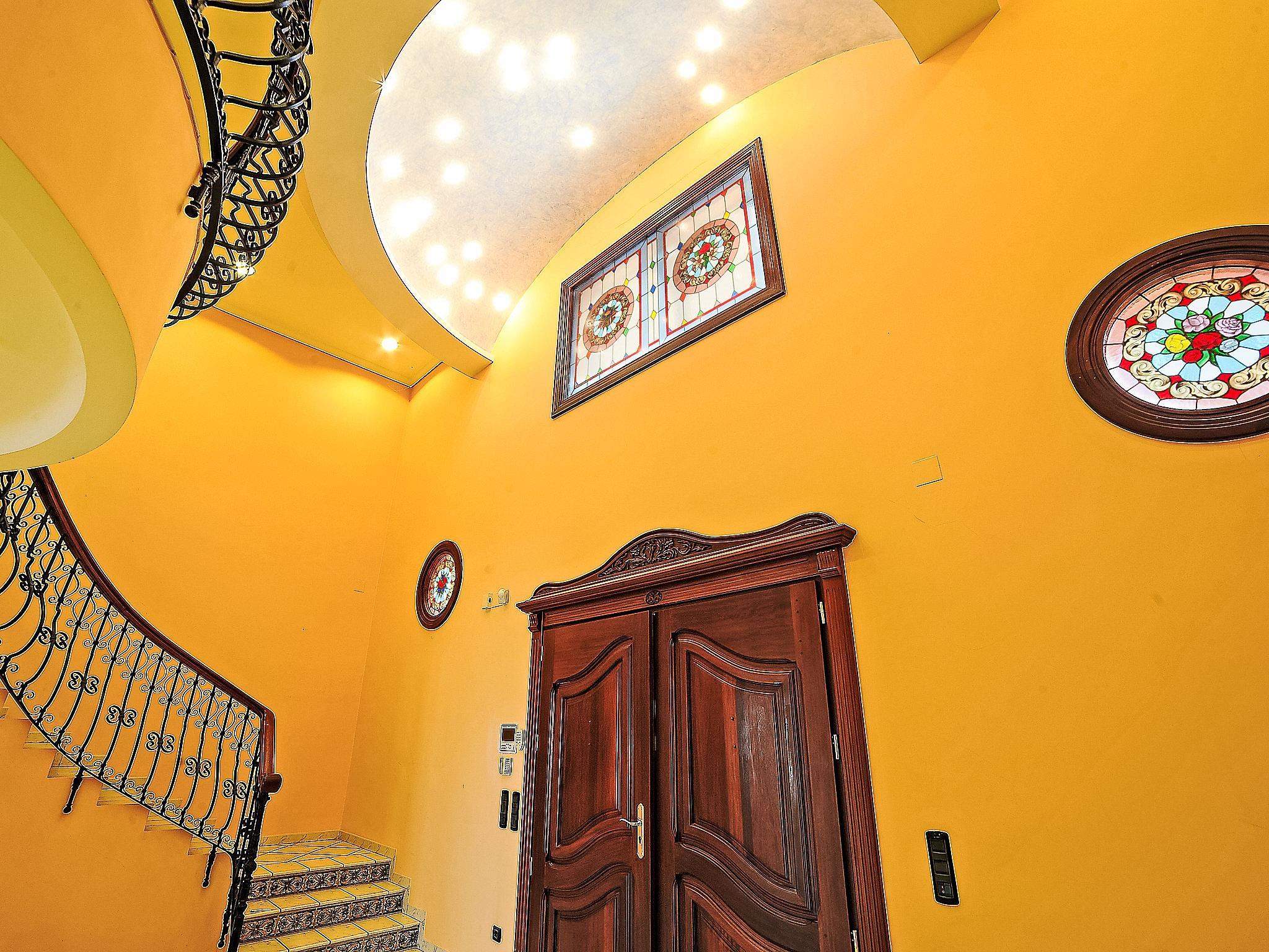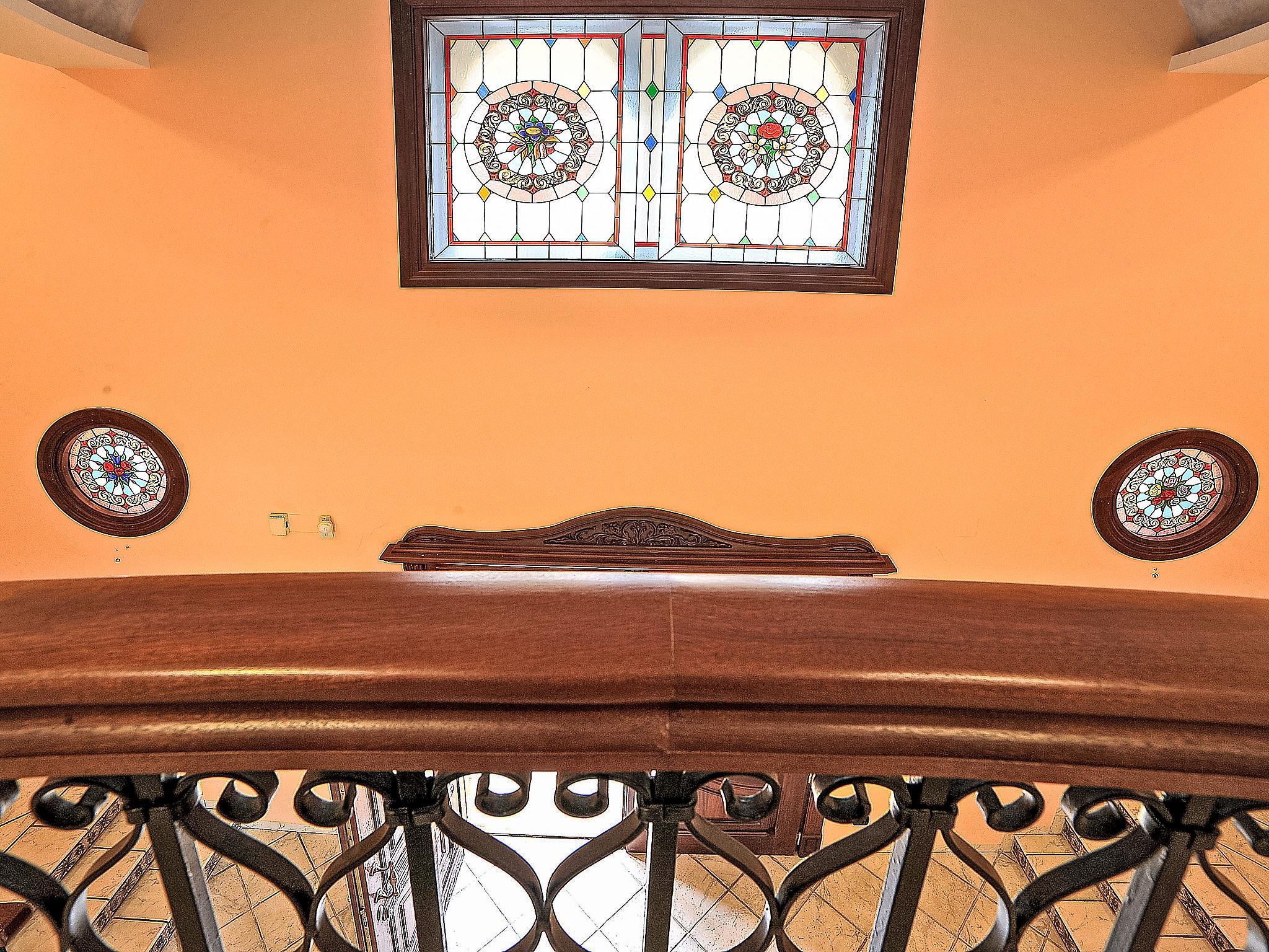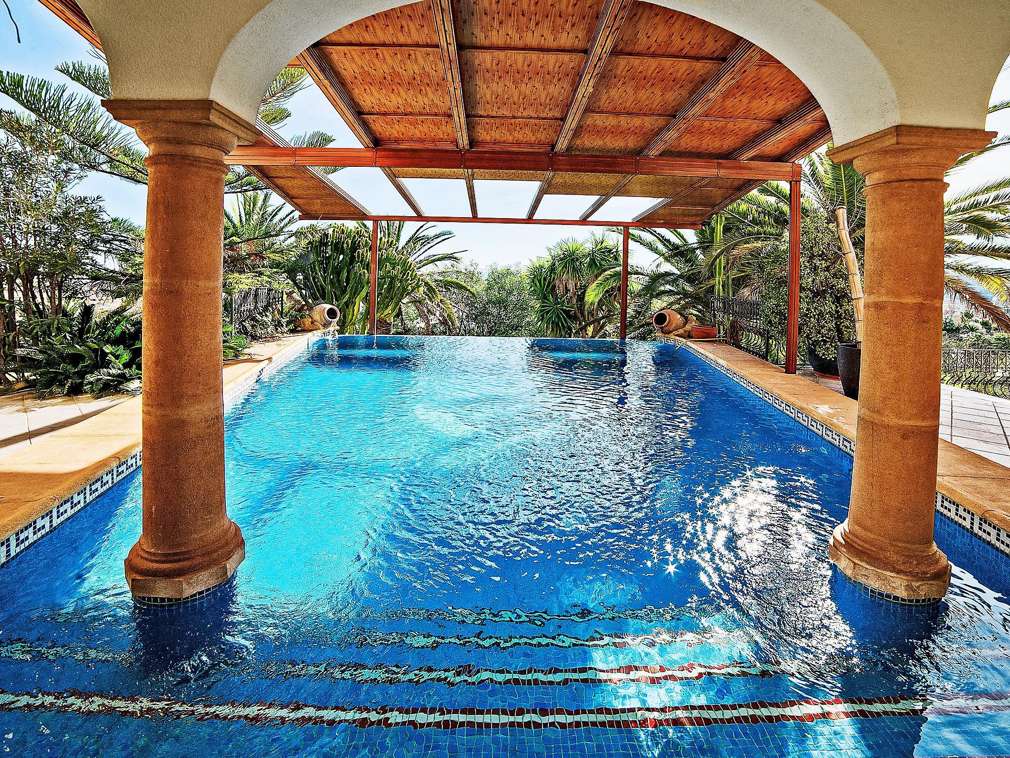 Very large villa "St Anthony", 3 storeys. In the district of Castellans, in a quiet, sunny, elevated position, 2.5 km from the sea. Private: beautiful, well-kept garden 4'080 m2 (fenced) with lawn and wildlife garden, swimming pool (5 x 15 m, depth 100 - 230 cm, seasonal availability: 01.Jan. - 31.Dec.) with internal staircase. Shower/WC in the pool area, outdoor shower, table tennis, terrace. In the house: sauna, solarium, billiard table, air conditioning, burglar alarm system. Supermarket 1 km, restaurant 600 m, bus stop 2 km, sandy beach "Arenal" 3 km. Groups of teenagers on request only. Second pool 5 x 9m with interior steps.